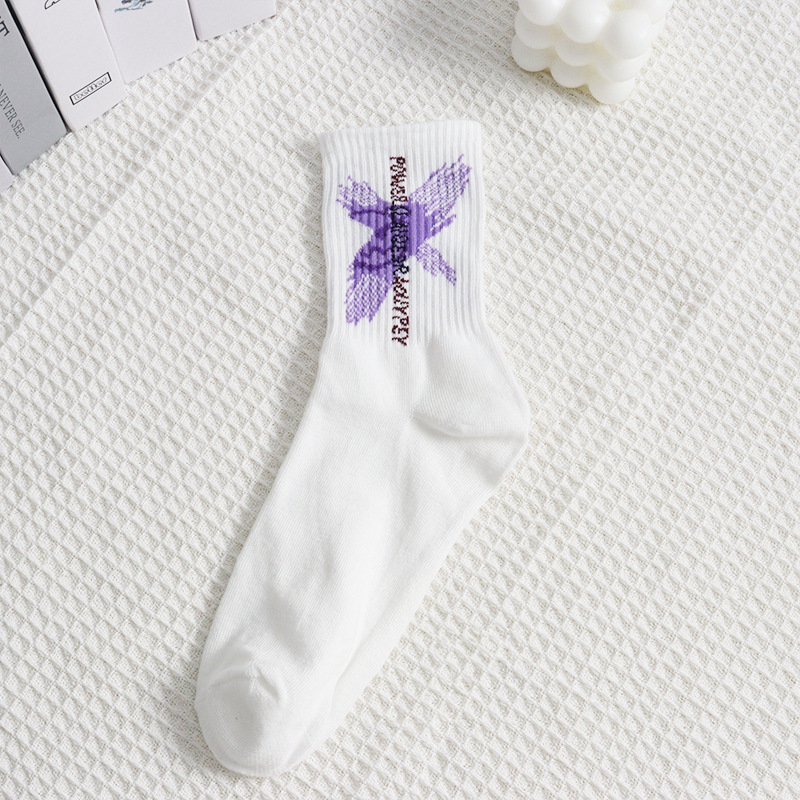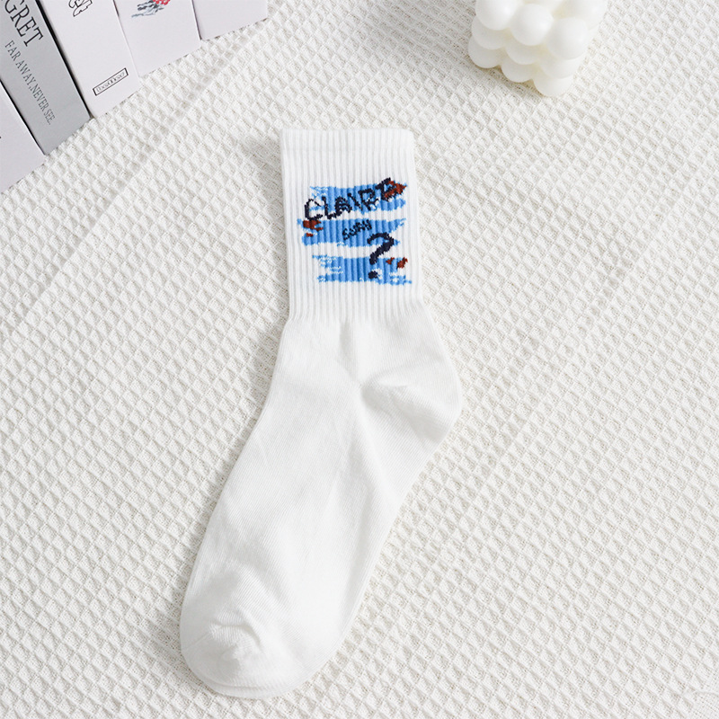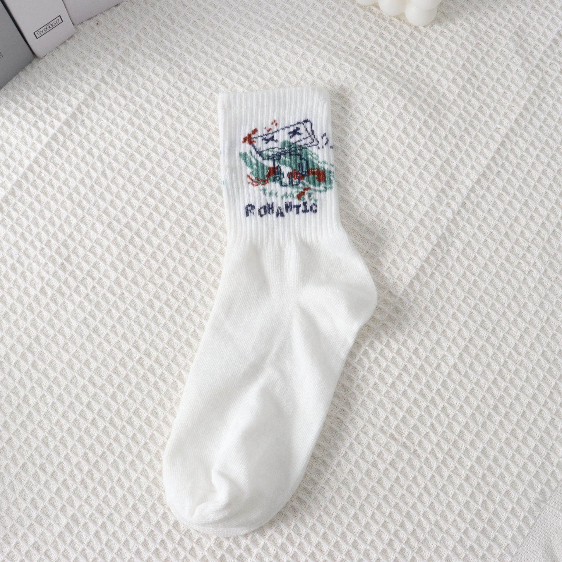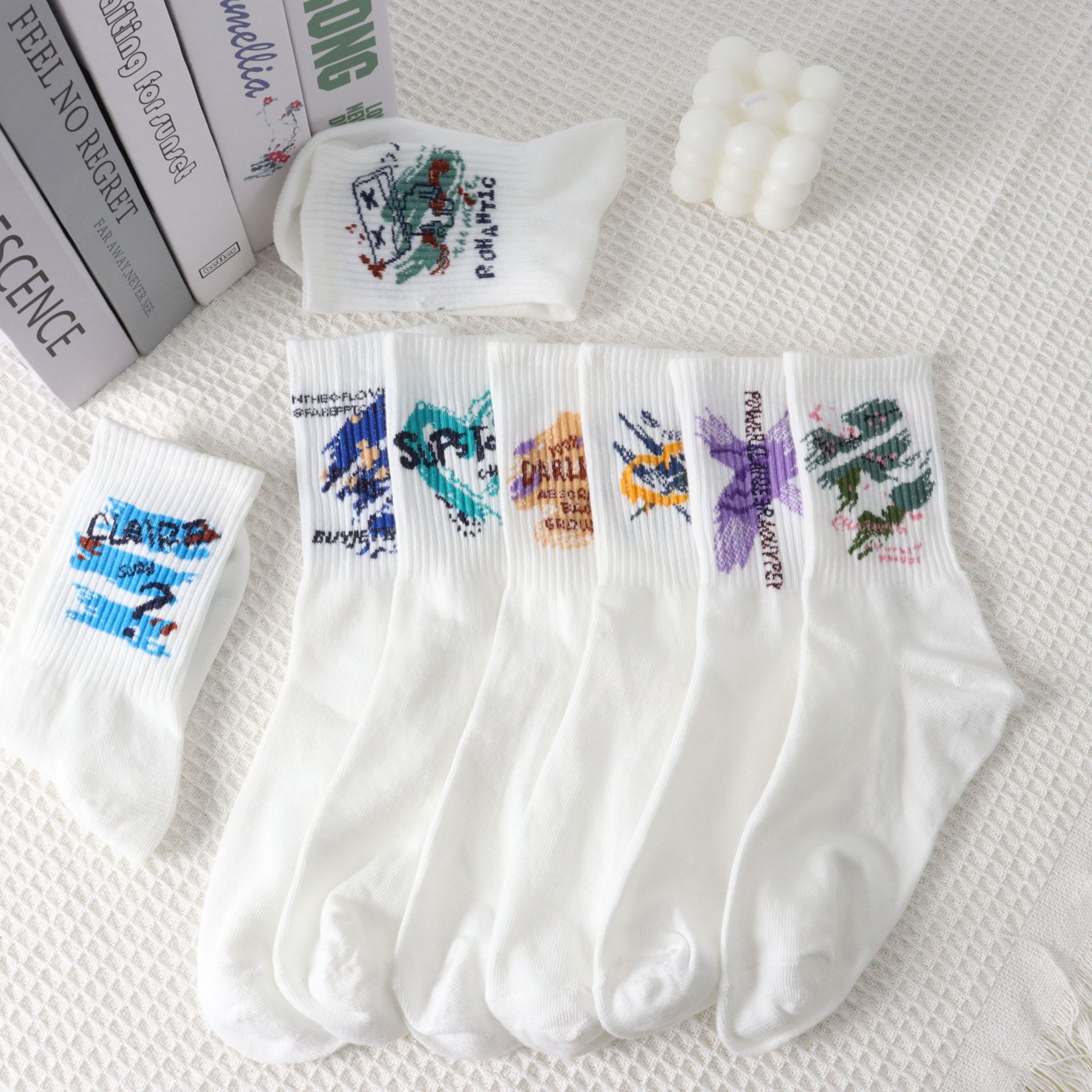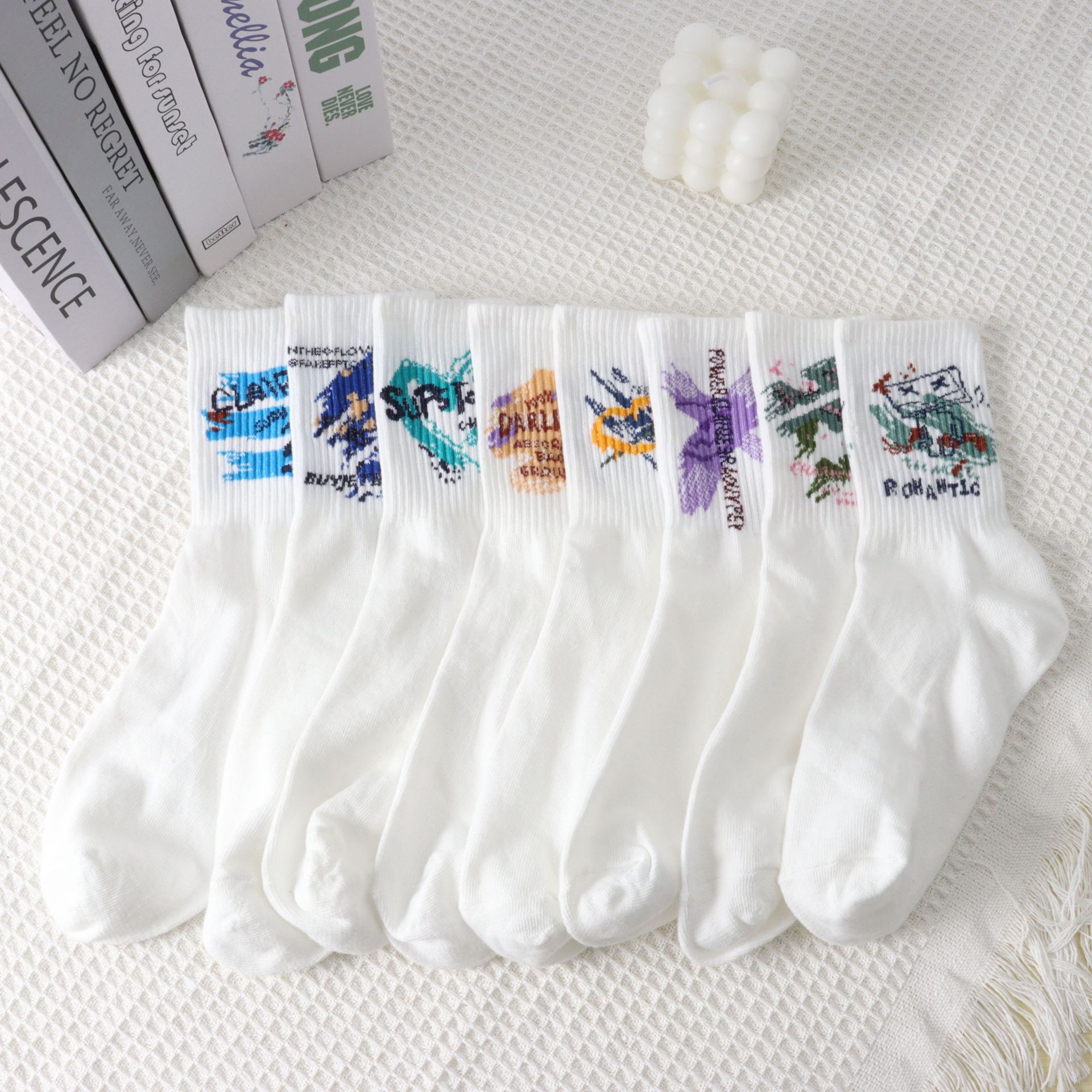 Xinmao 공장 도매 패션 그래피티 청소년 캐주얼 스포츠 양말, 화이트 심플 반항적 컬리지 스타일 양말스토어 가기