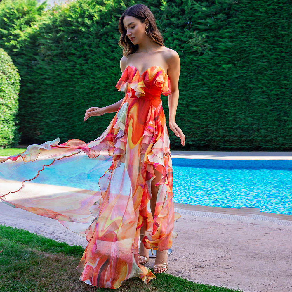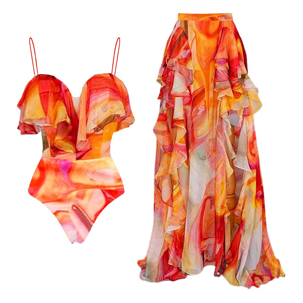 2024 유럽과 미국의 새로운 아마존 퀵 세일 현기증 된 원피스 수영복 여성 휴가 세트 비치 스커트 국경스토어 가기