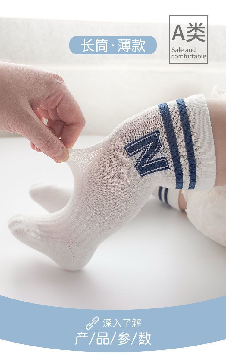 아기 양말 도매 해외 무역 여름용 얇은 메쉬 통기성 긴 면 양말 신생아 아기 양말스토어 가기