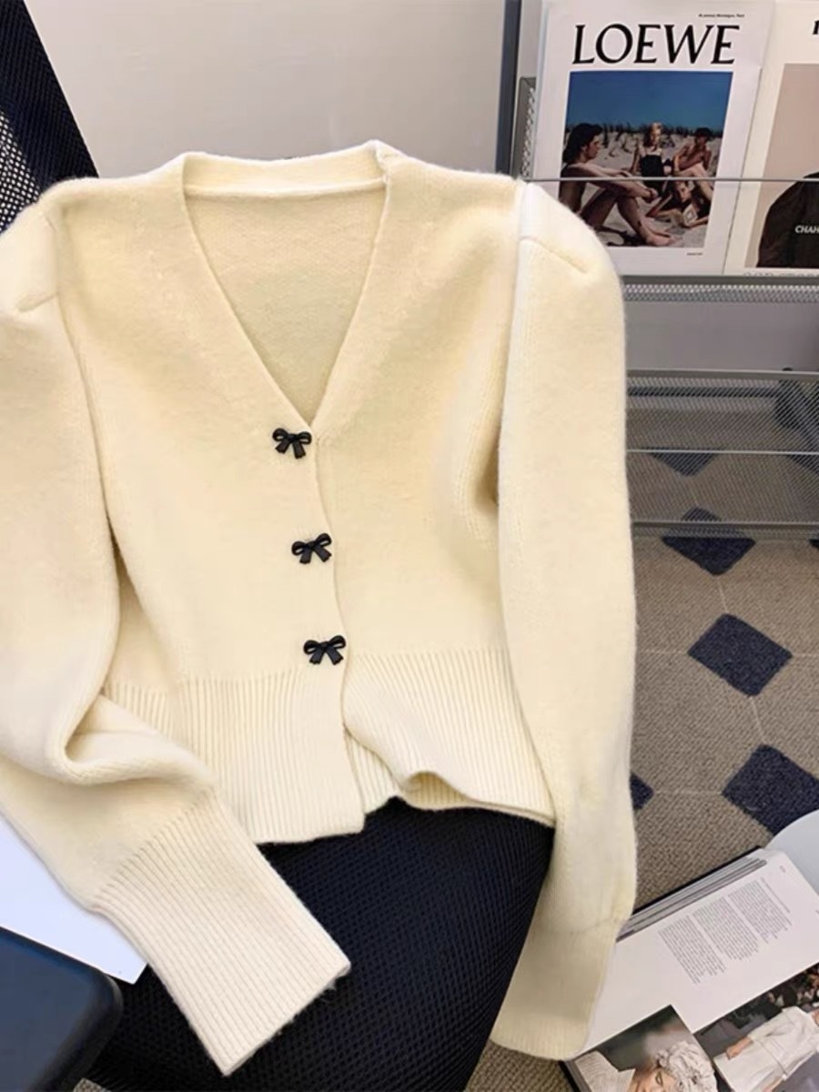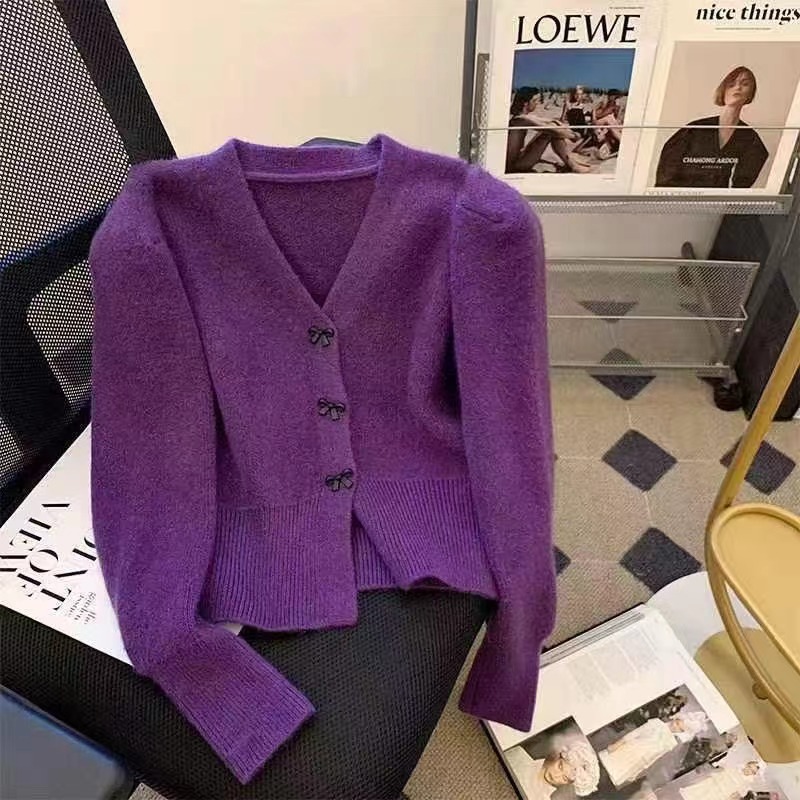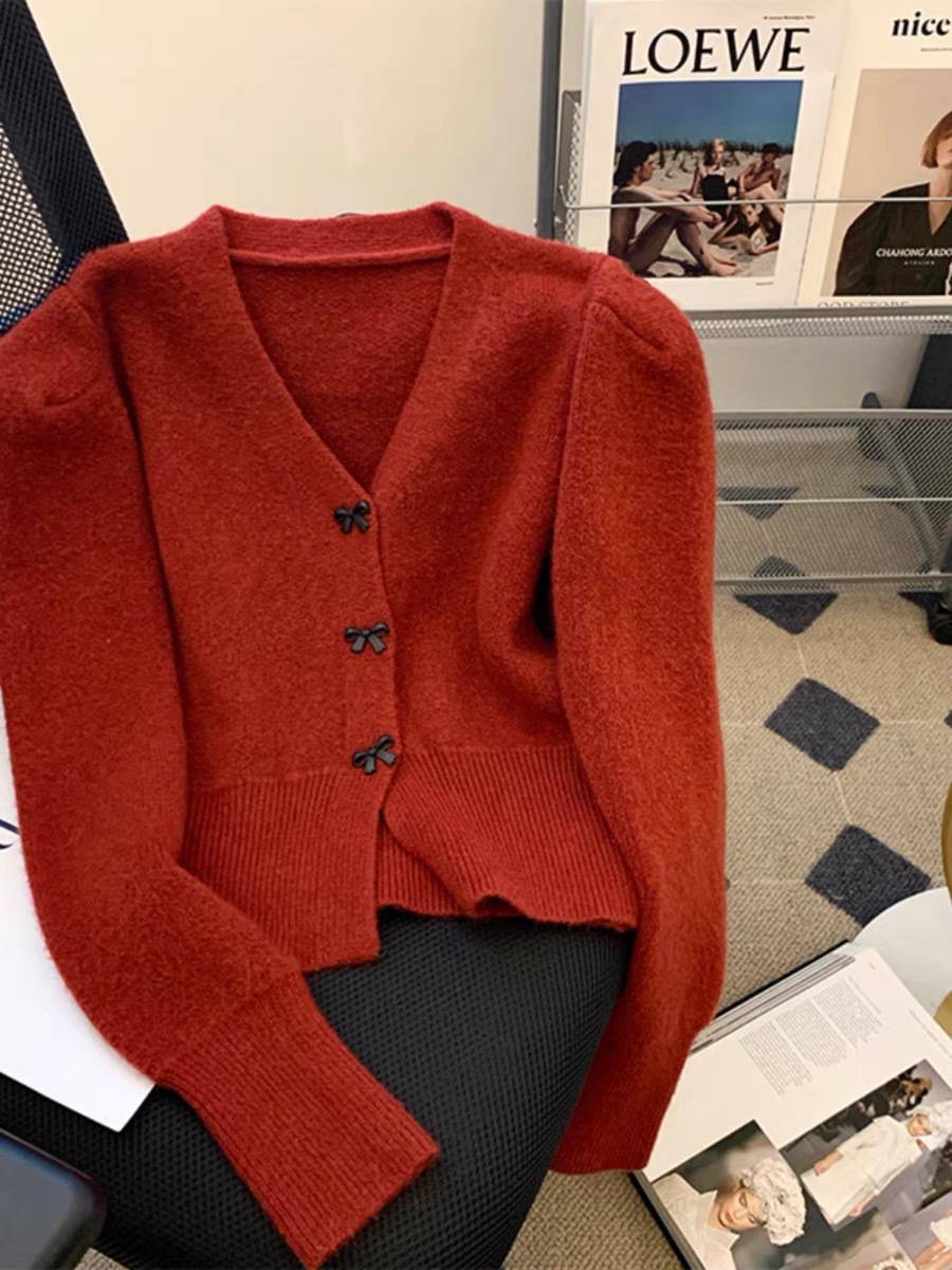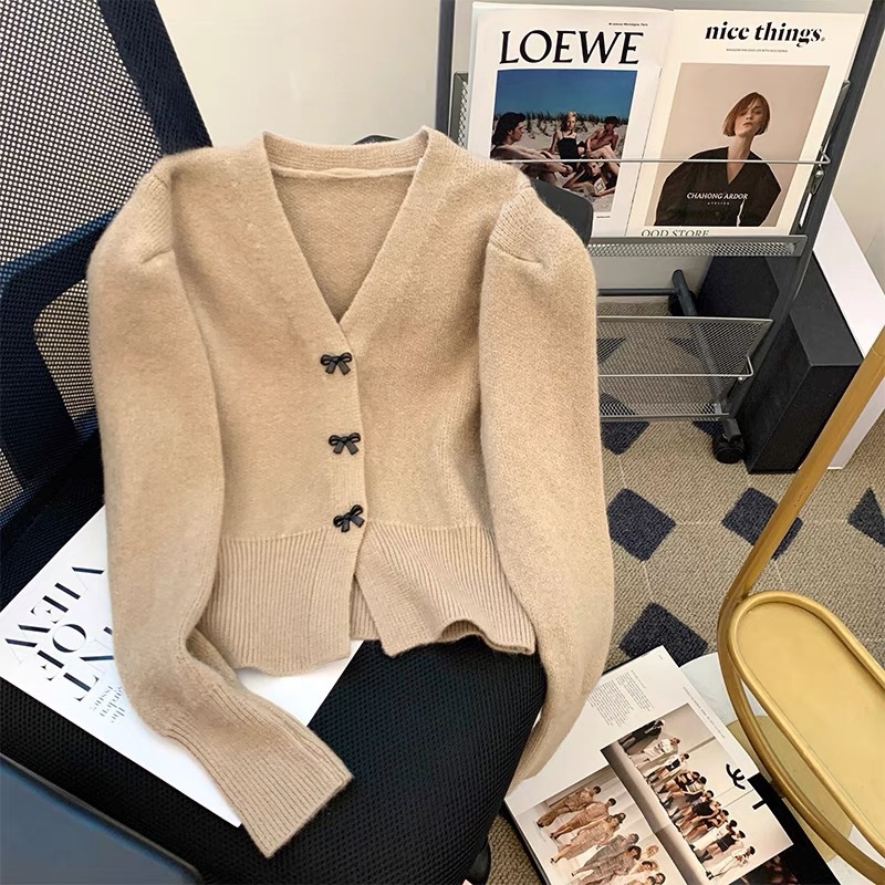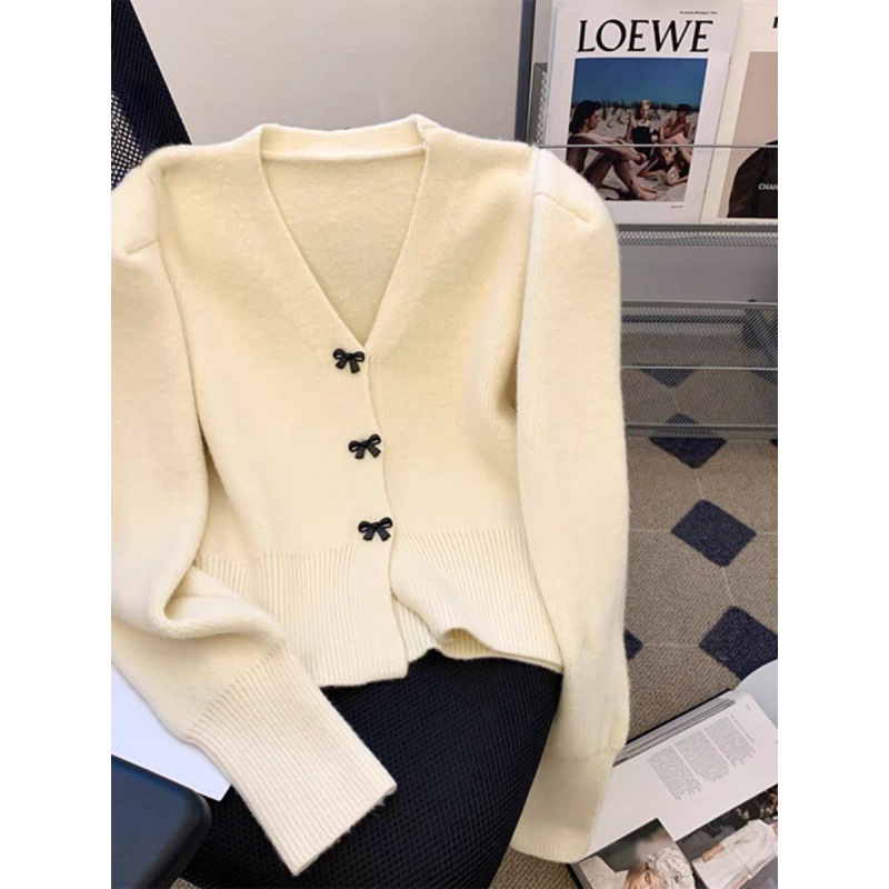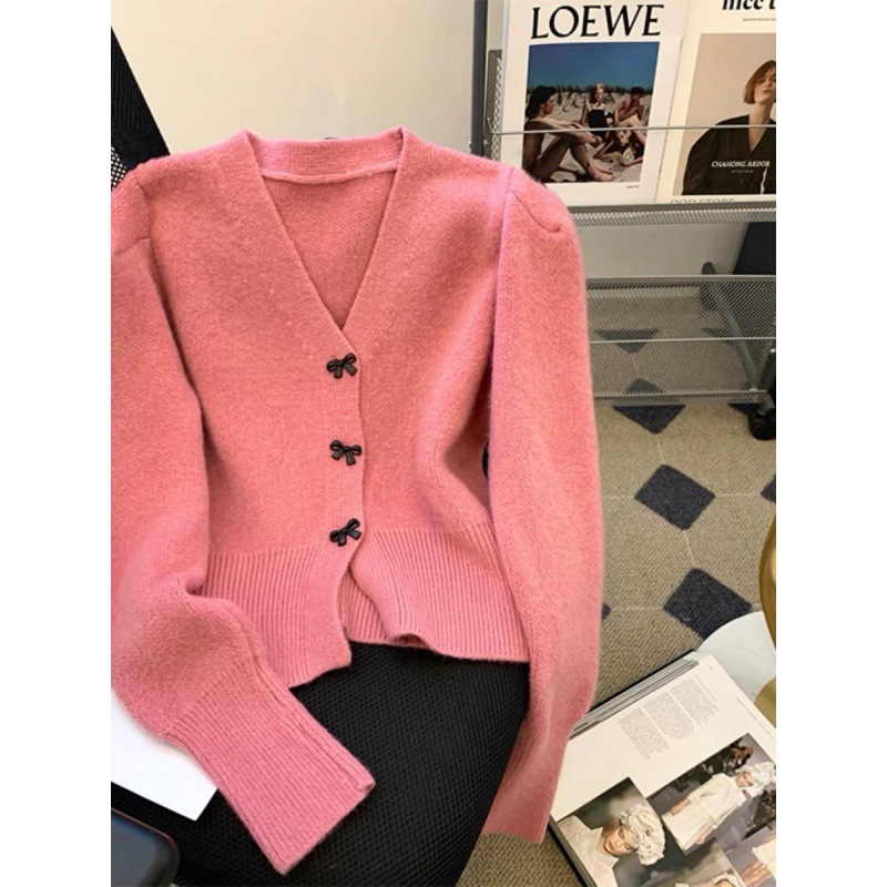 새로운 도착 올매치 슬림 스웨터 아우터 유행 한국 세련된 샤넬 스타일 우아한 활 버튼 니트 카디건