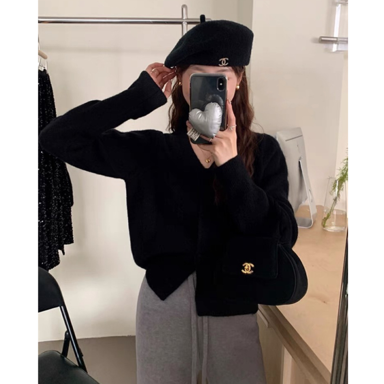 새로운 도착 올매치 슬림 스웨터 아우터 유행 한국 세련된 샤넬 스타일 우아한 활 버튼 니트 카디건스토어 가기
