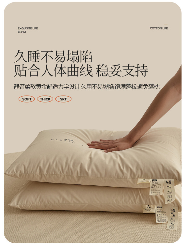 일본식 인쇄되지 않은 클래스 신강 면화 베개 부드러운면 모든면 좋은 제품 베개 코어 수면면 충전을 돕습니다.