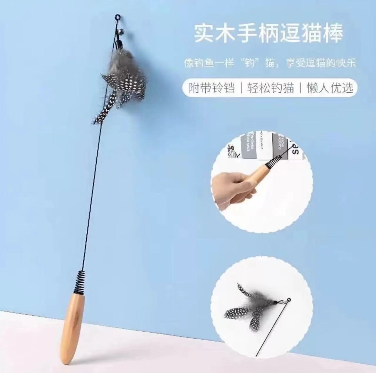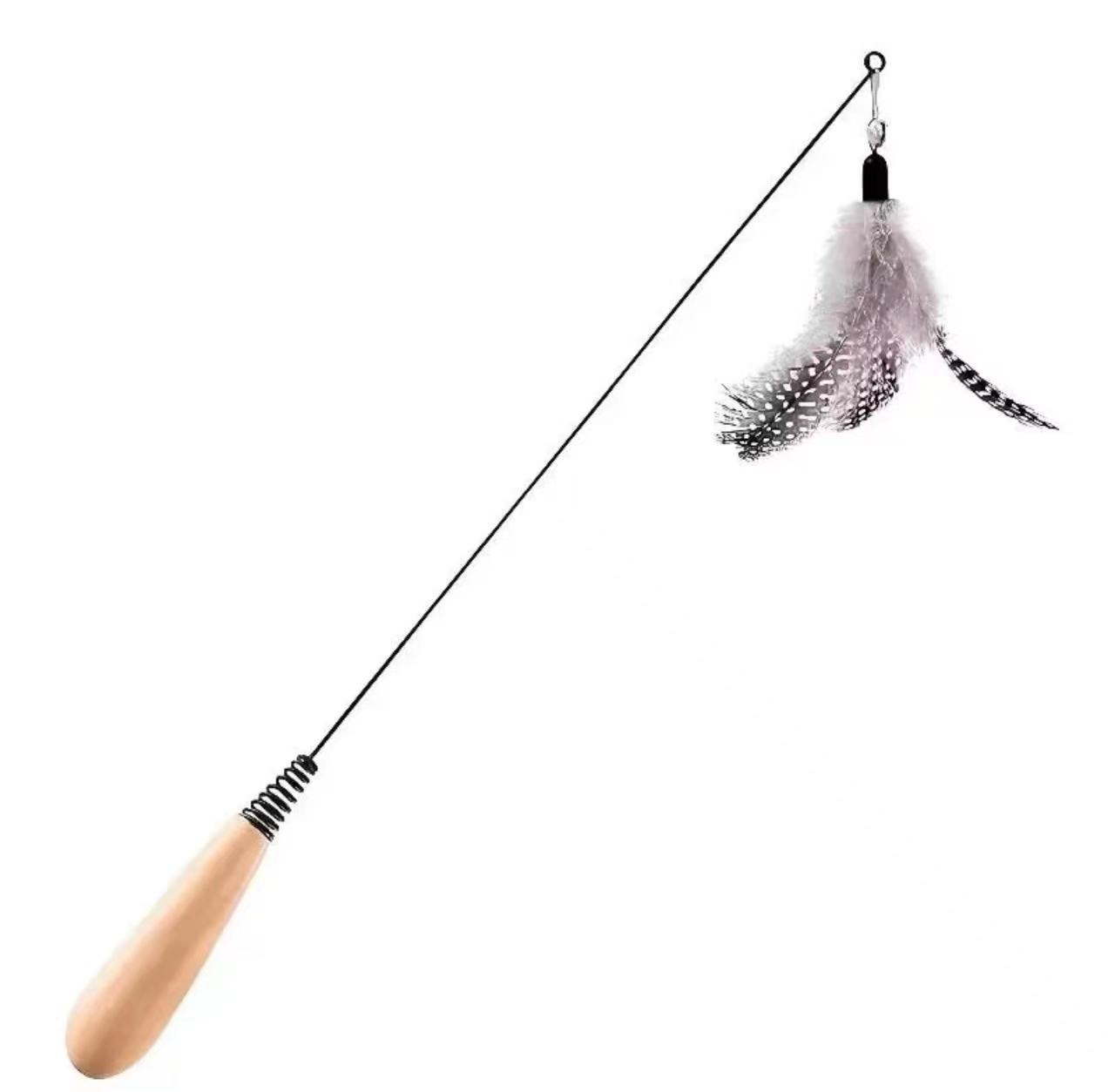 • 나무 손잡이가 달린 고양이 놀리는 막대기 + 점박이 깃털 세트