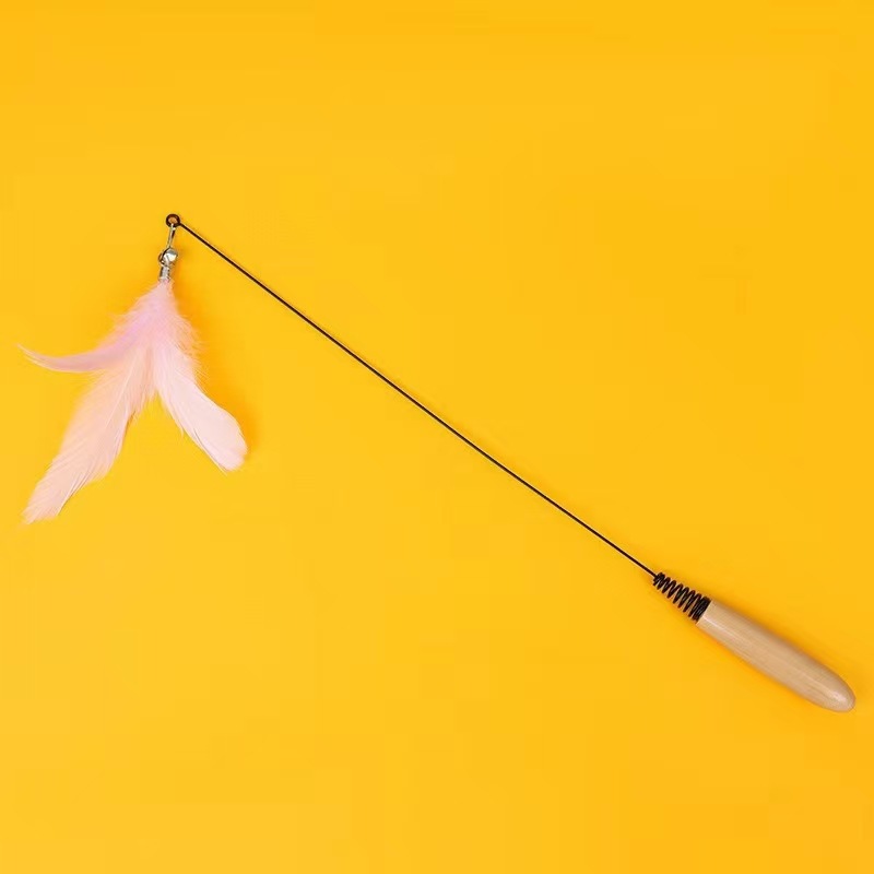 • 나무 손잡이 고양이 놀리는 막대 + 핑크색 깃털
