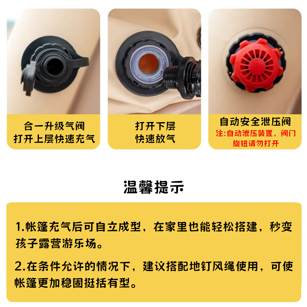 帐篷搭建方式:充气