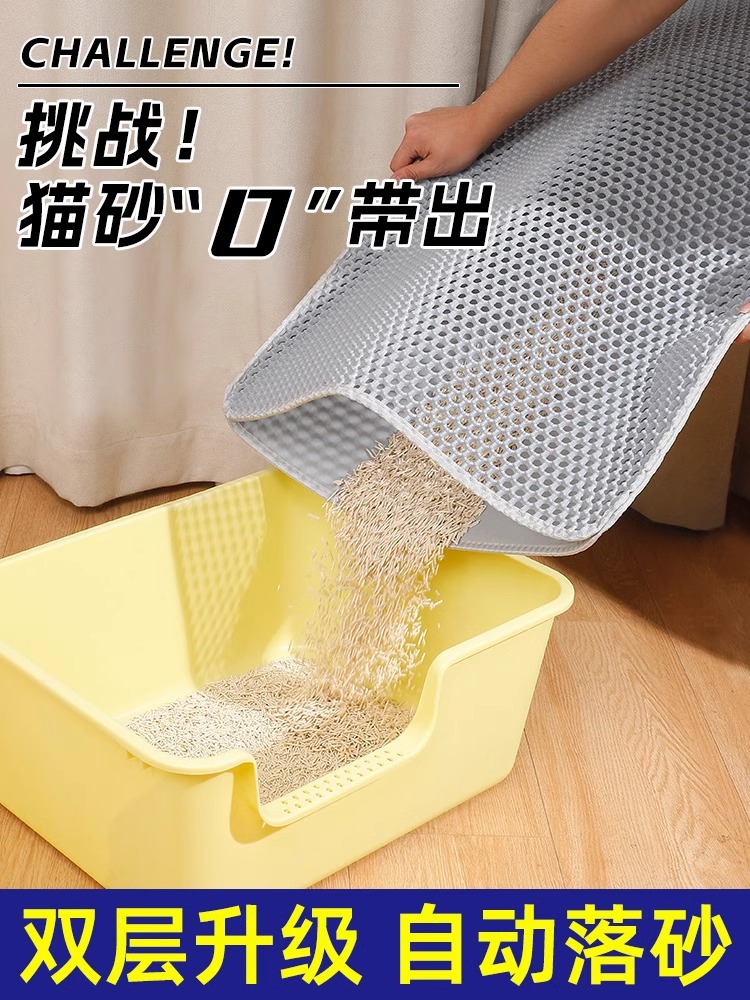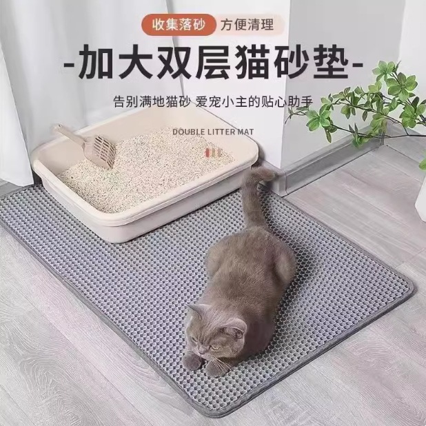 고양이 쓰레기 매트 안티 테이크 아웃 고양이 쓰레기 분지 안티 스플래시 매트 안티 스키드 그랩 내성 초대형 더블 레이어 샌드 컬렉션 필터 누출 제어 매트스토어 가기