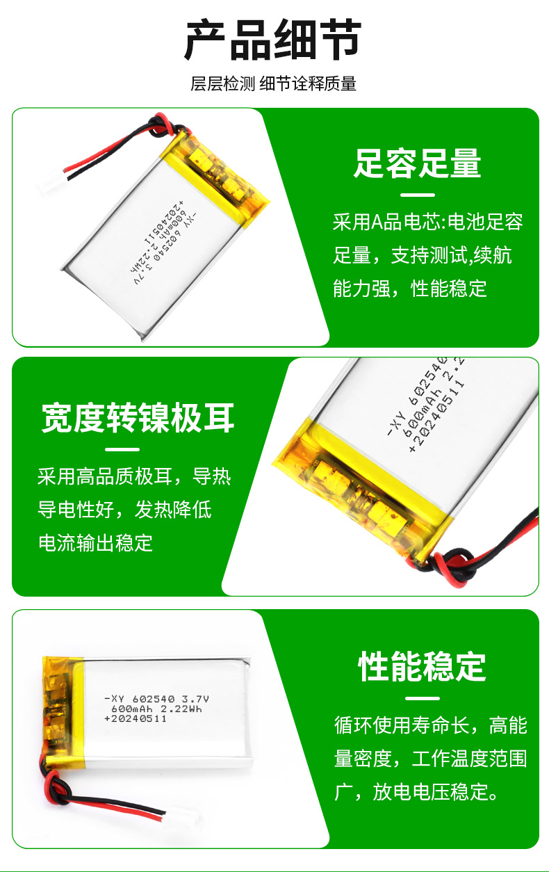 602540 폴리머 리튬 배터리 3.7V600mAhKC 인증 스마트 마우스 블루투스 스피커 전원 소프트 팩스토어 가기
