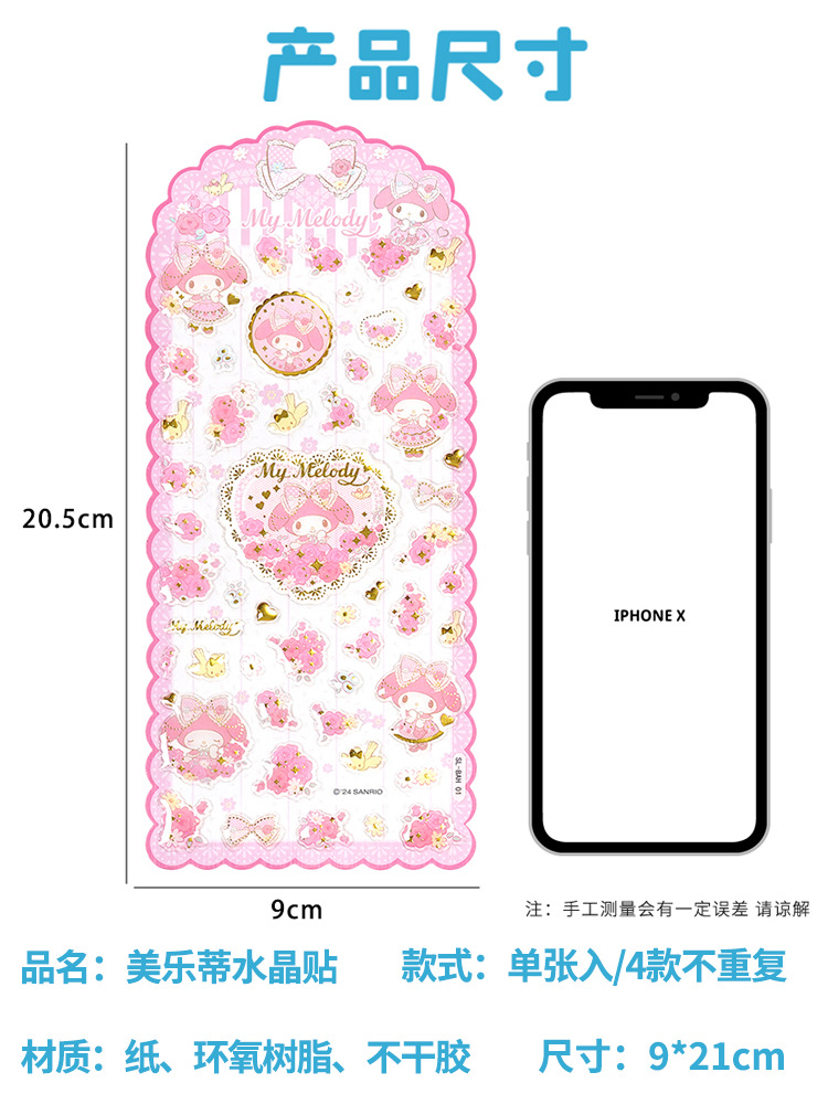 정품 산리오 메를로 크리스탈 스티커 귀여운 만화 드롭 접착제 어린이 물 컵 구오 카드 휴대 전화 케이스 장식 스티커스토어 가기