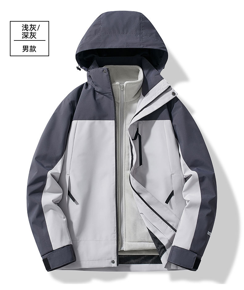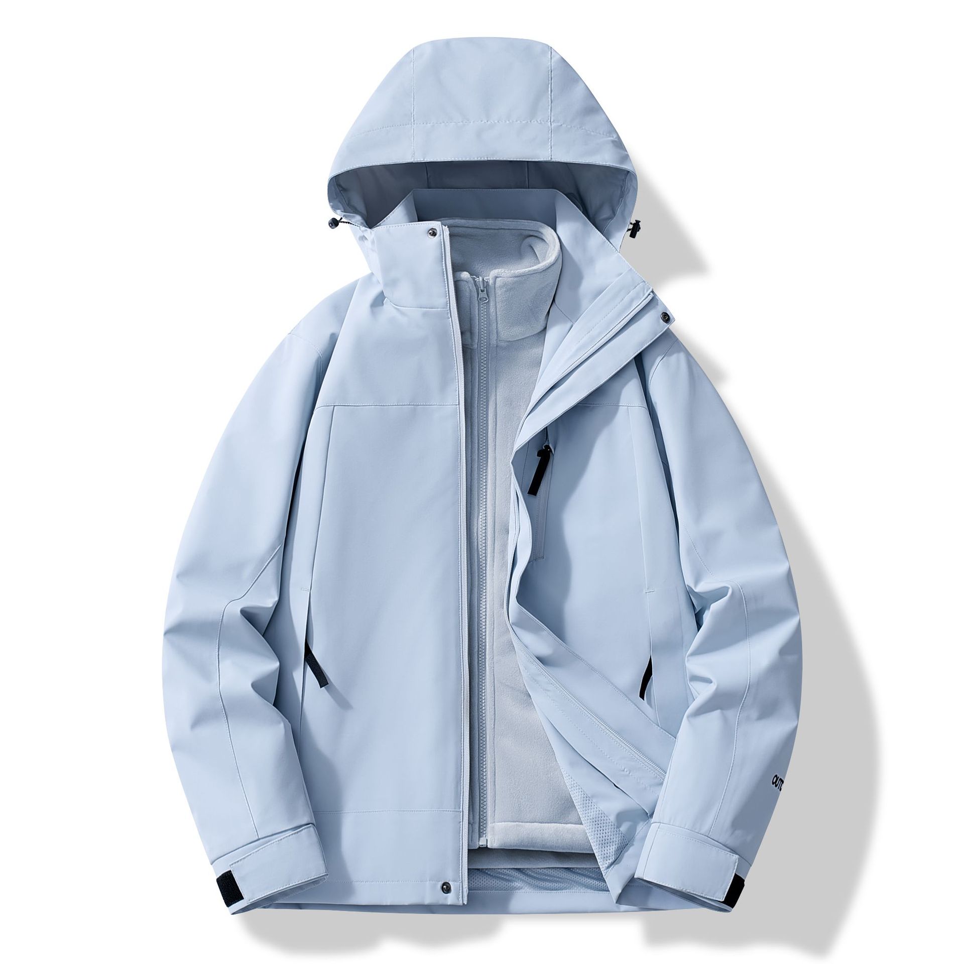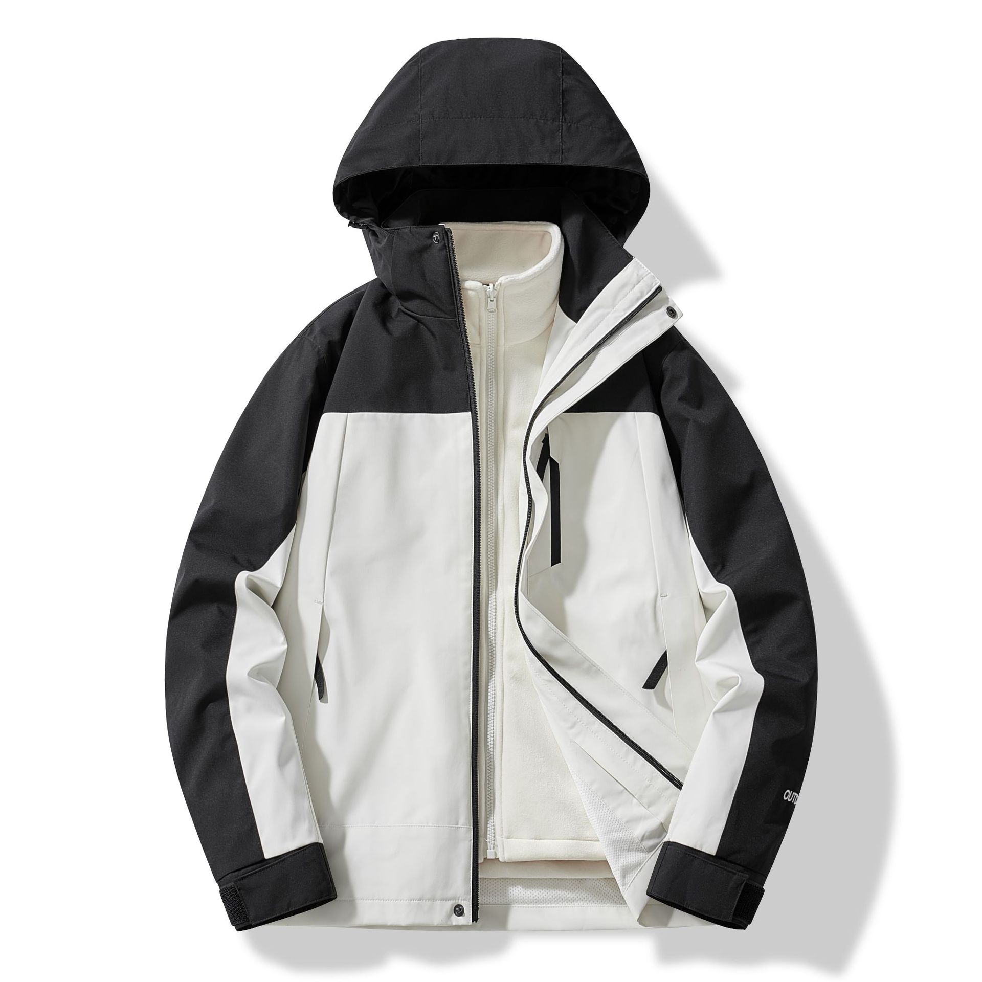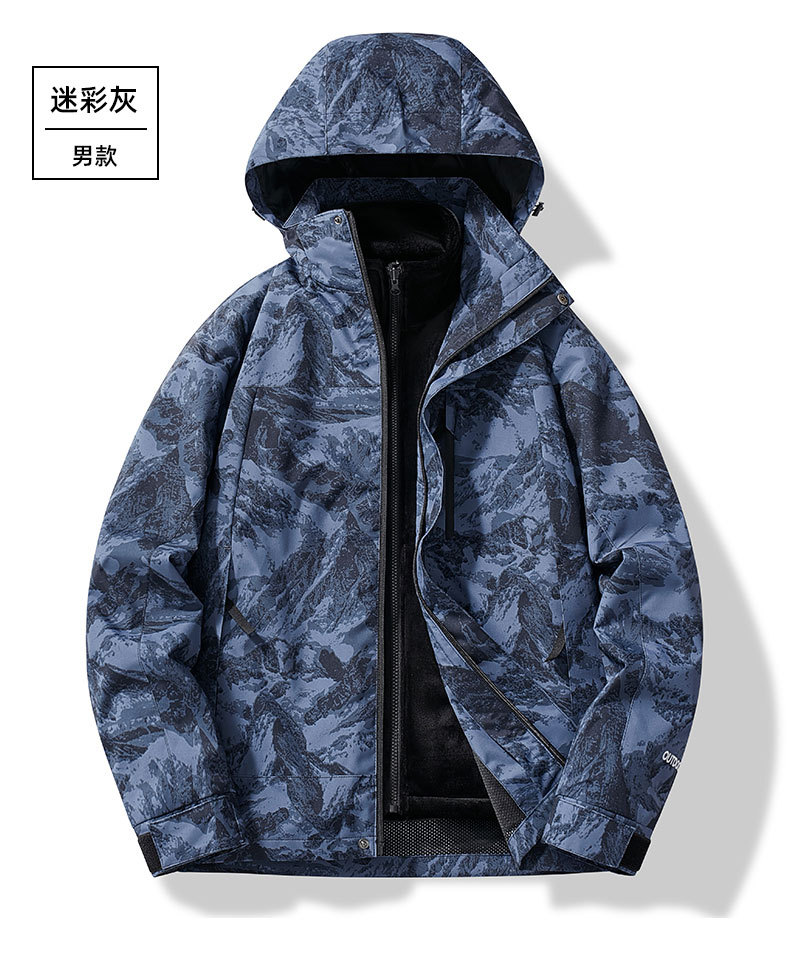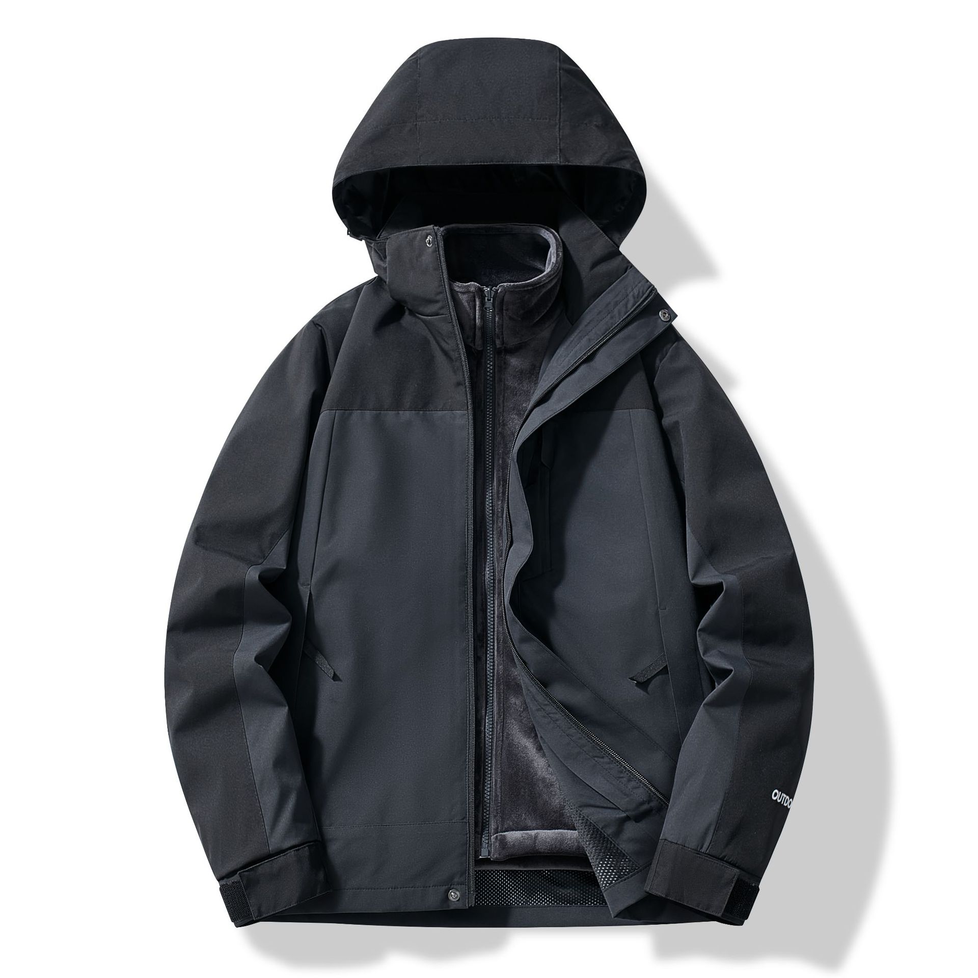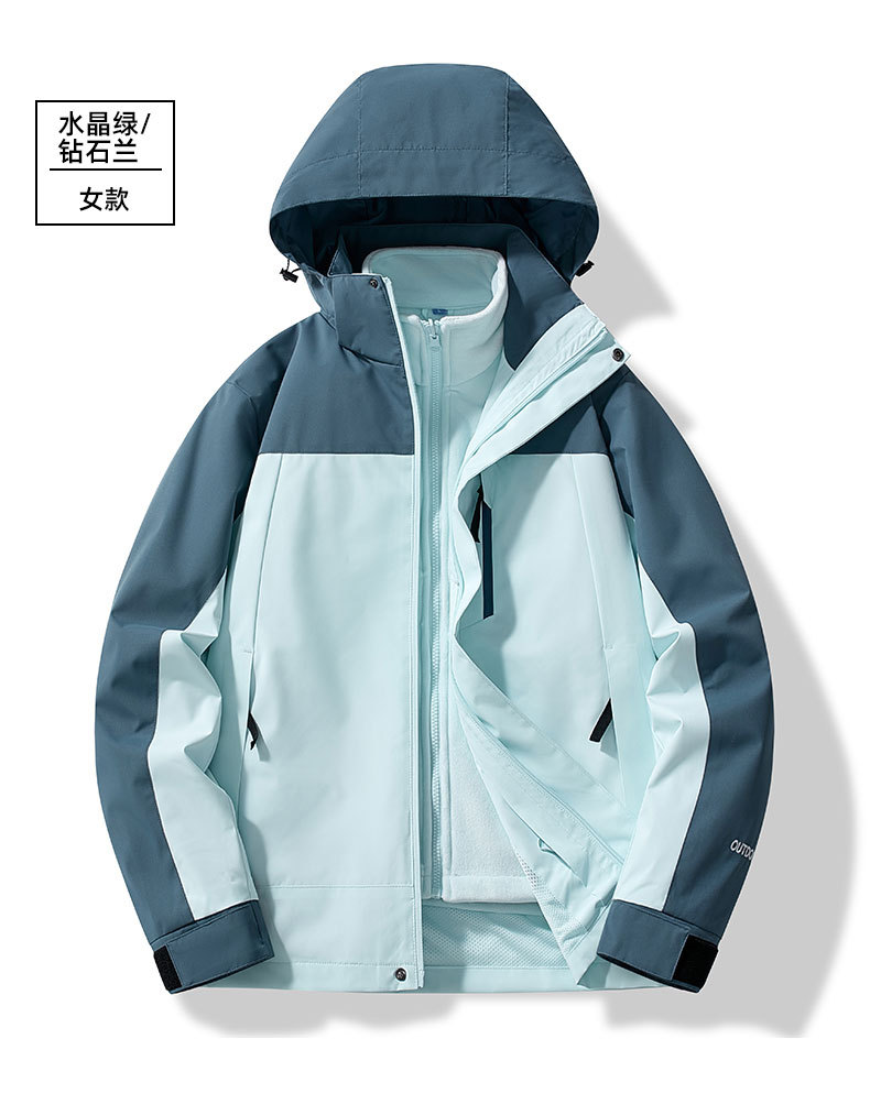충전 재킷 재킷 남자와 여자의 가을 겨울 2024 새로운 3 대 1 분리 가능한 재킷 야외 방풍 등산 세트