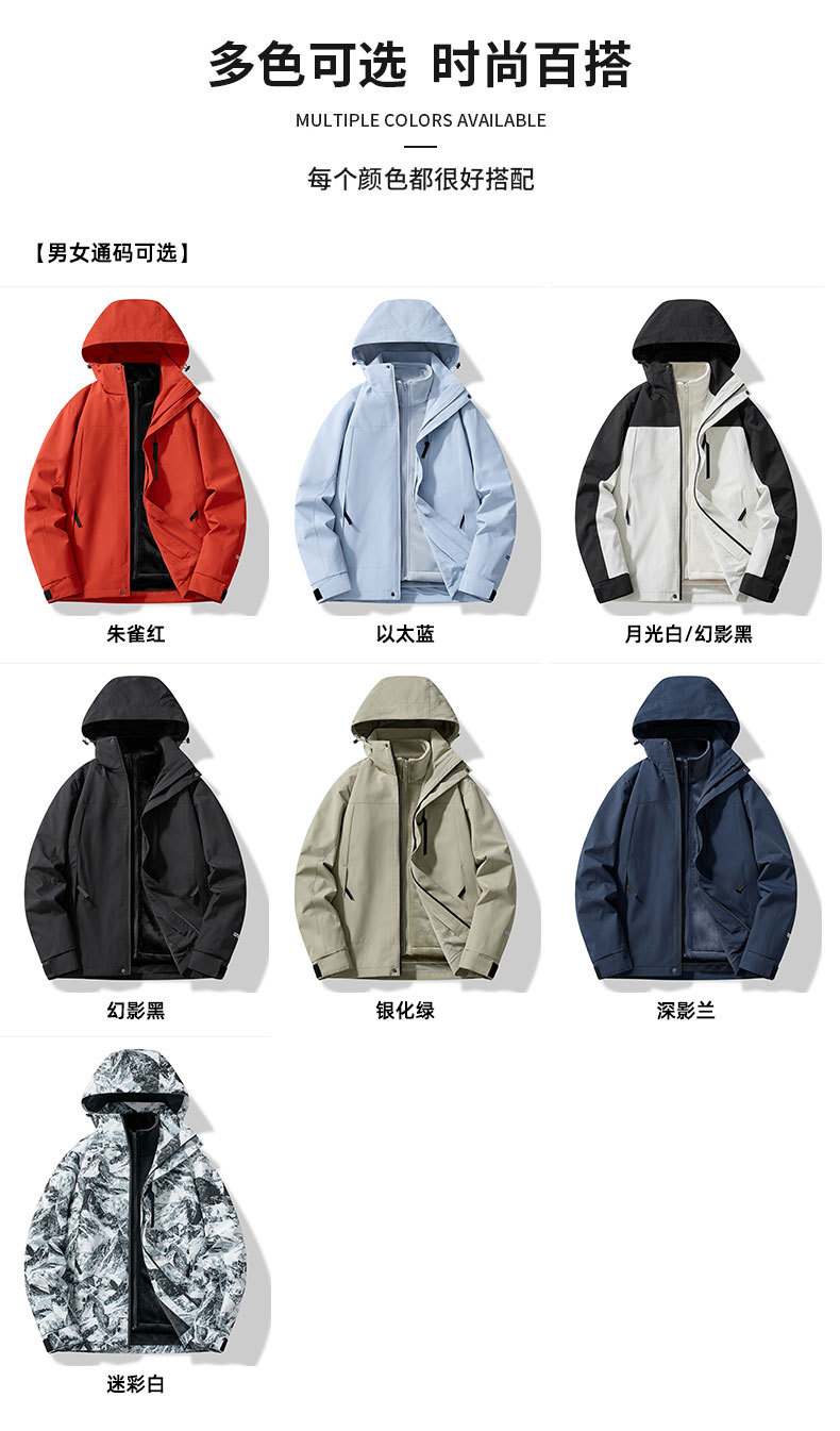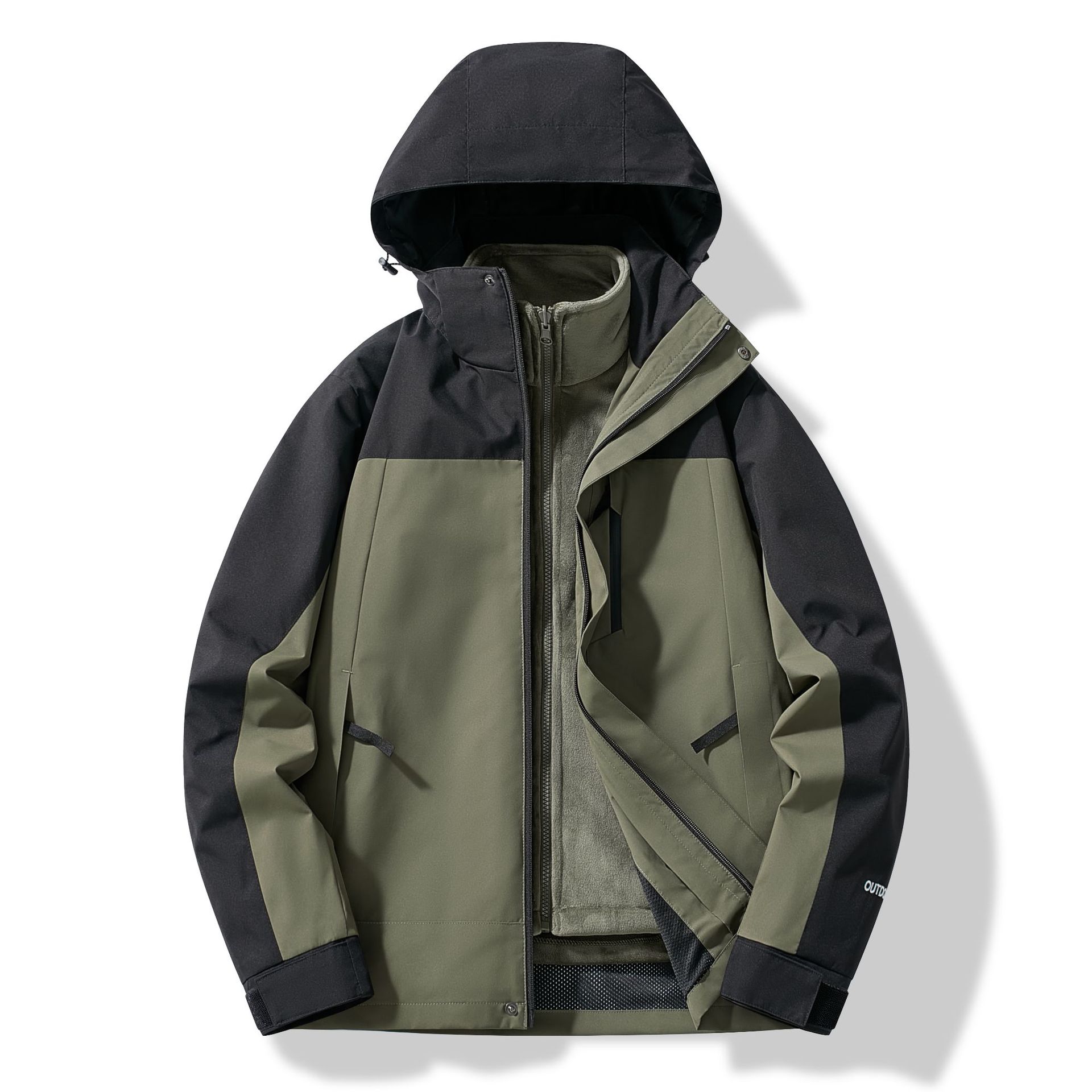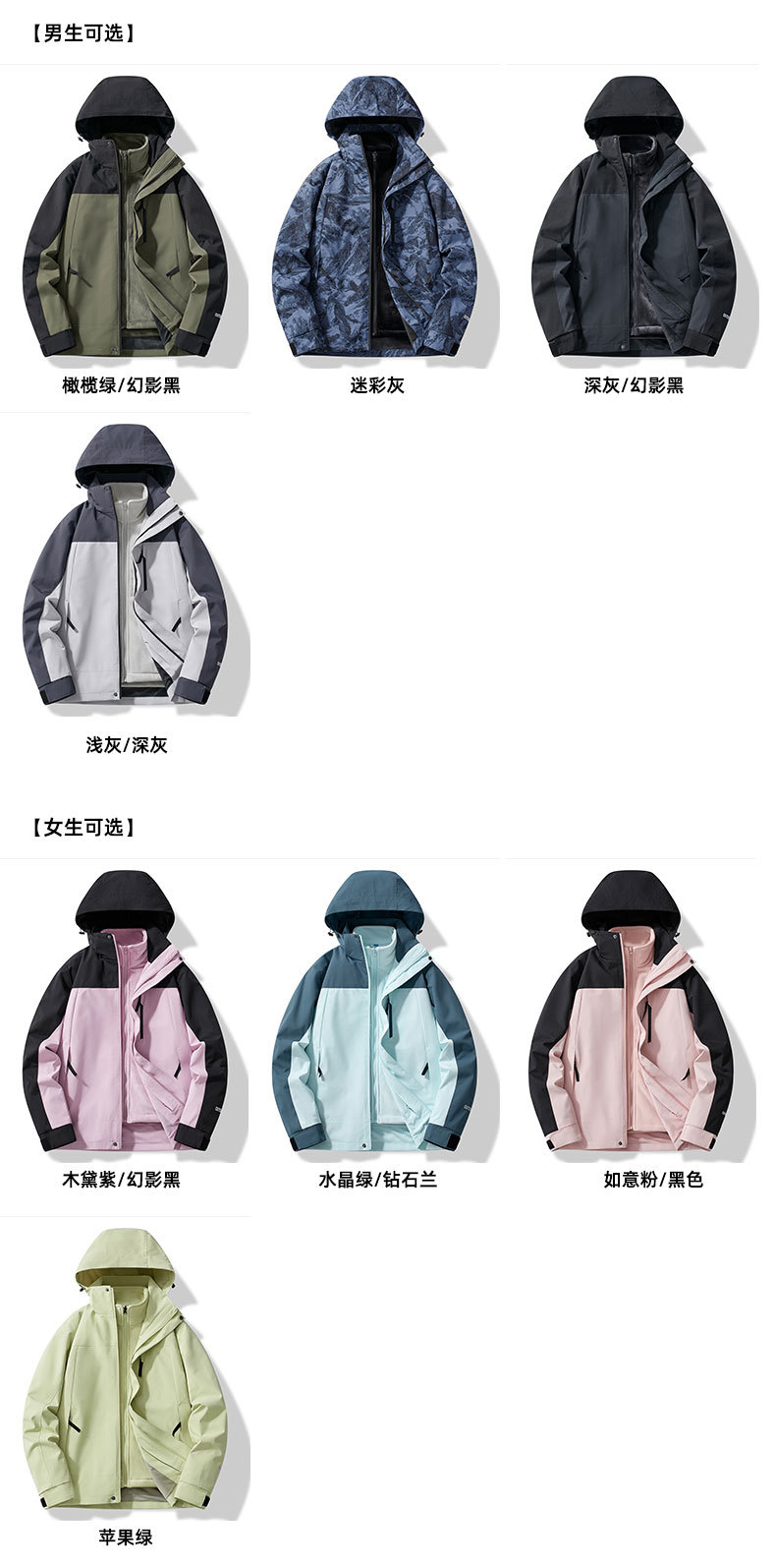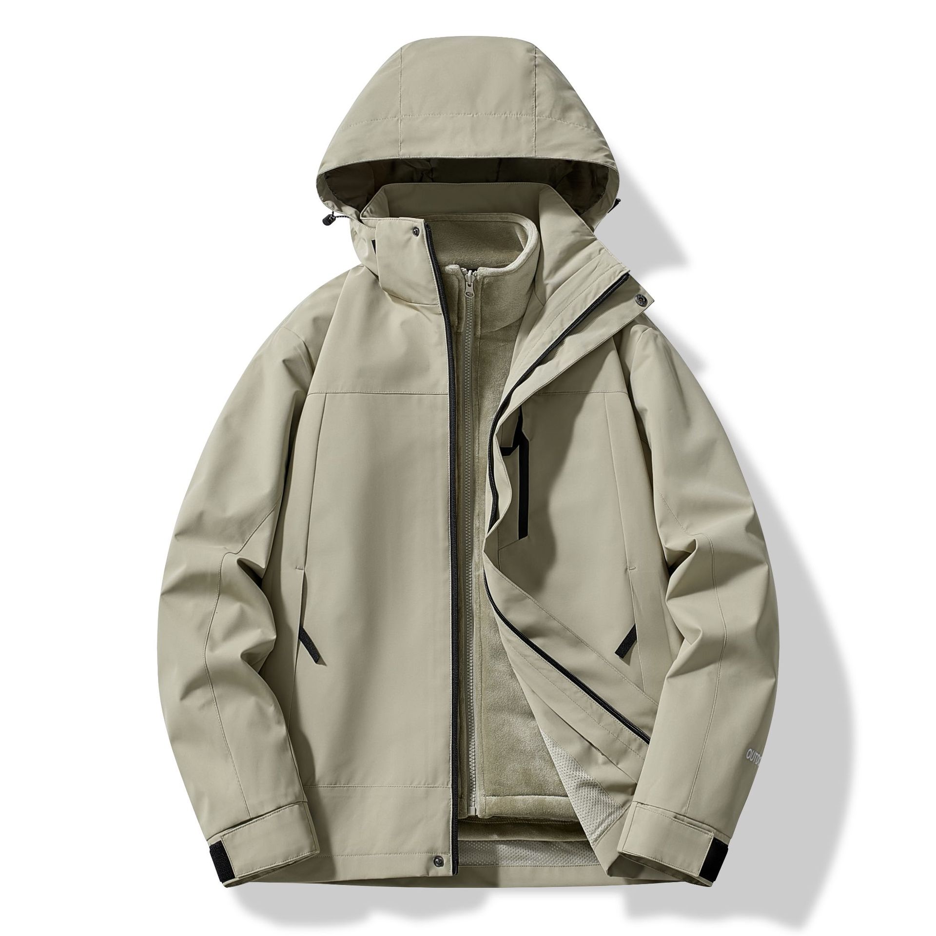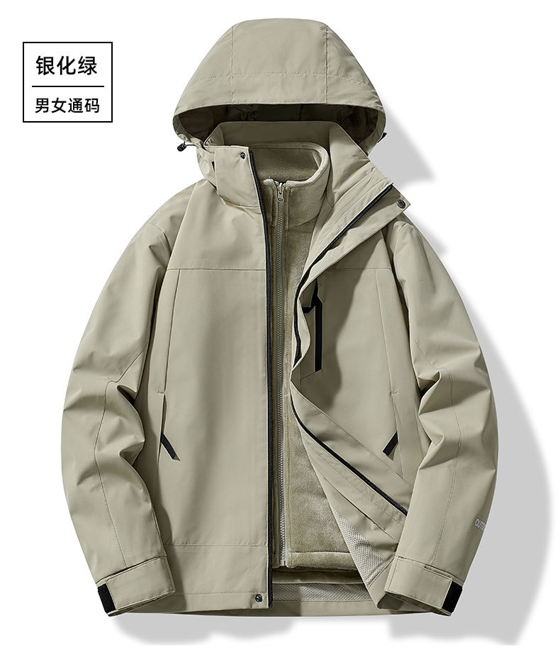 충전 재킷 재킷 남자와 여자의 가을 겨울 2024 새로운 3 대 1 분리 가능한 재킷 야외 방풍 등산 세트