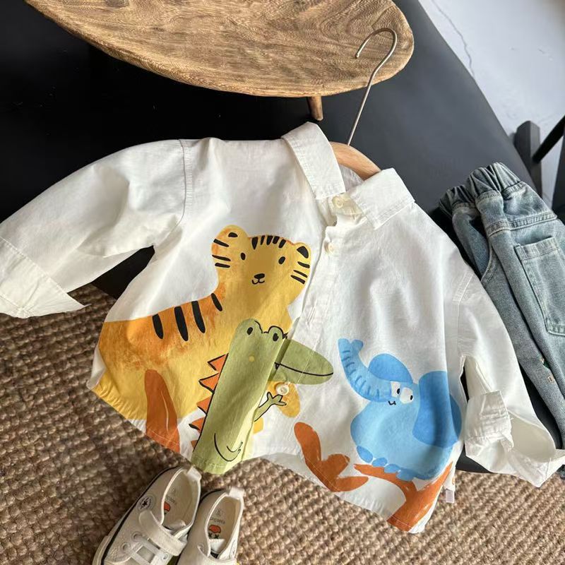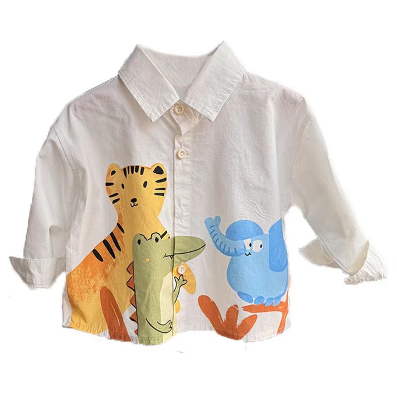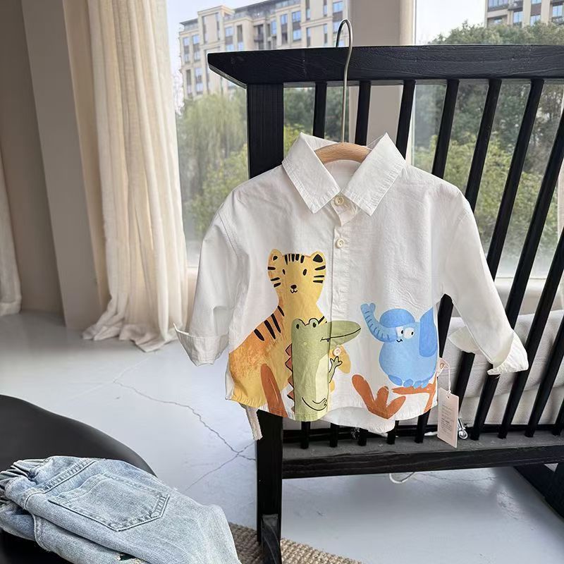 2024 년 소년 셔츠 옷깃 한국식 봄 가을 소년 옷 어린이 만화 인쇄 어린이 셔츠