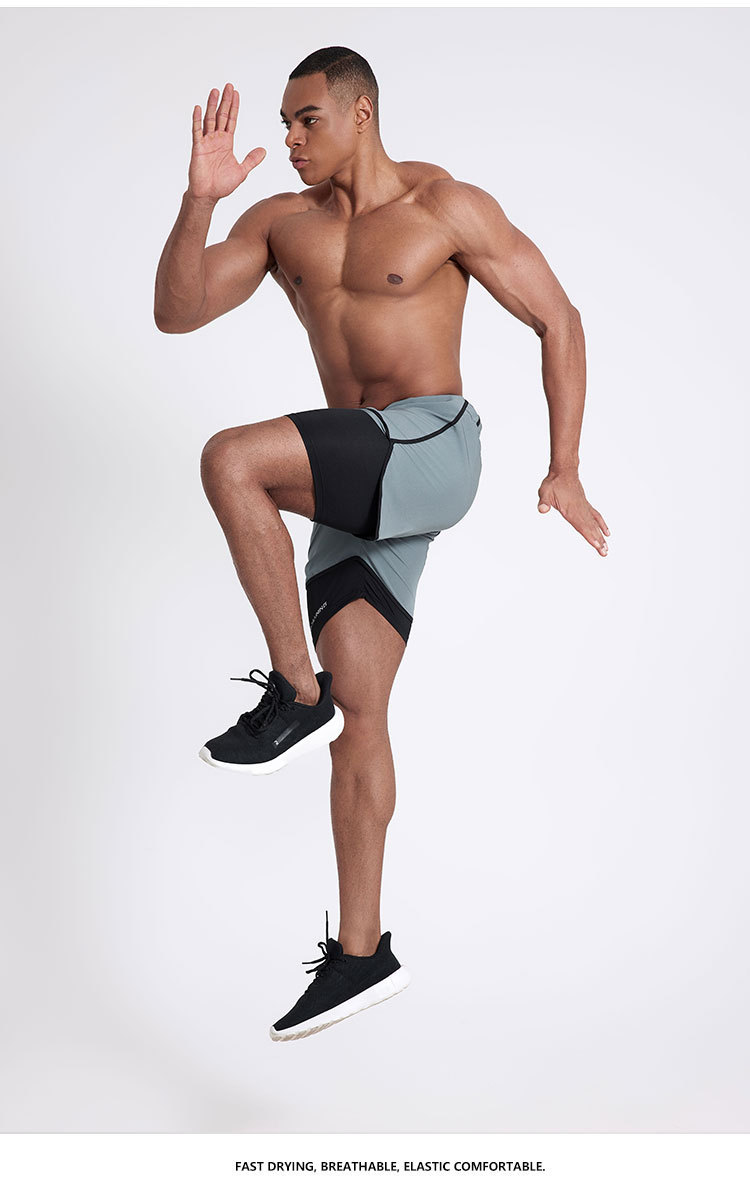 스포츠 반바지 남자 미국 피트니스 달리기 바지 가짜 투피스 훈련 안티 워킹 3 점 농구 캐주얼 반바지
