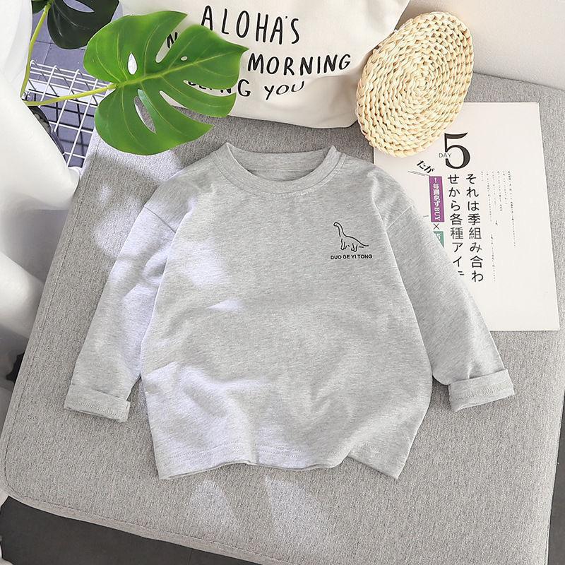 소년과 소녀 긴 소매 티셔츠 2024 봄과 가을 아기 공룡베이스 셔츠 티셔츠 어린이 크루 넥 풀오버 퓨어 코튼 탑스토어 가기