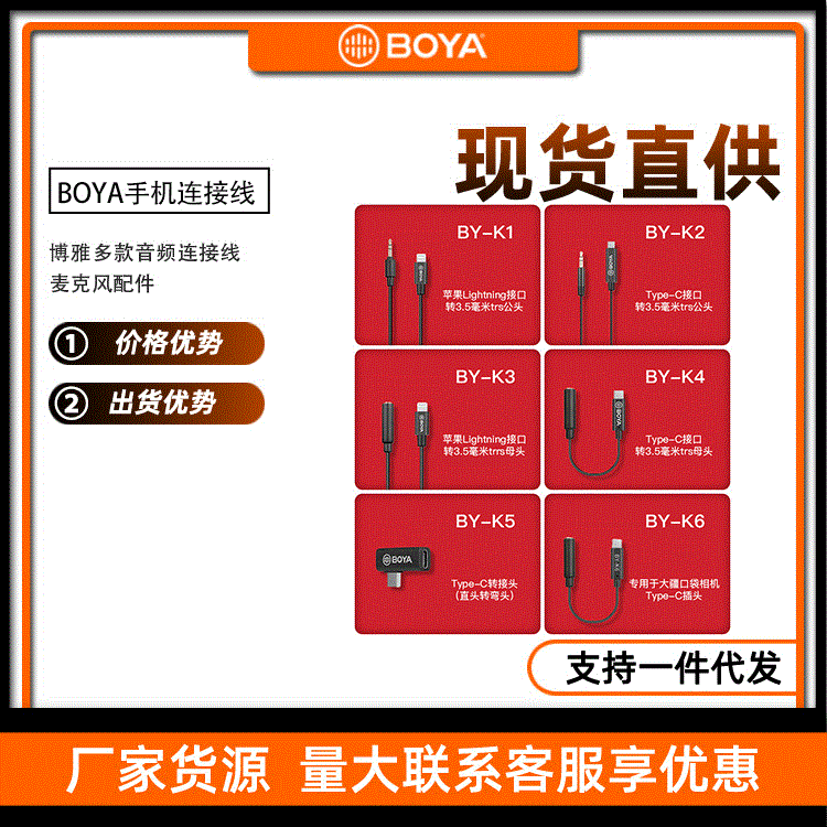 BOYA BY-K1/K2 보야 마이크 폰 어댑터 특수 애플 안드로이드 폰 오디오 케이블스토어 가기