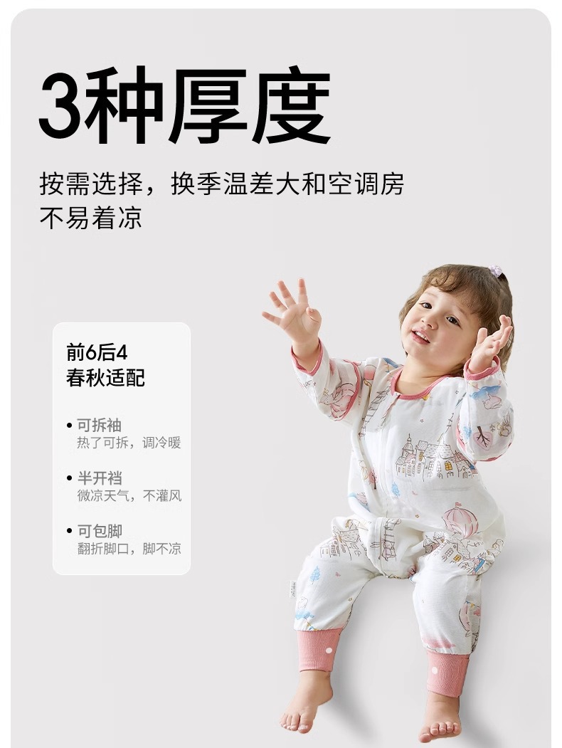 베티스 아기 수면조끼 2025 신형 거즈 어린이용 봄 가을용 다리 분리형 발차기 방지 이불 사계절용스토어 가기