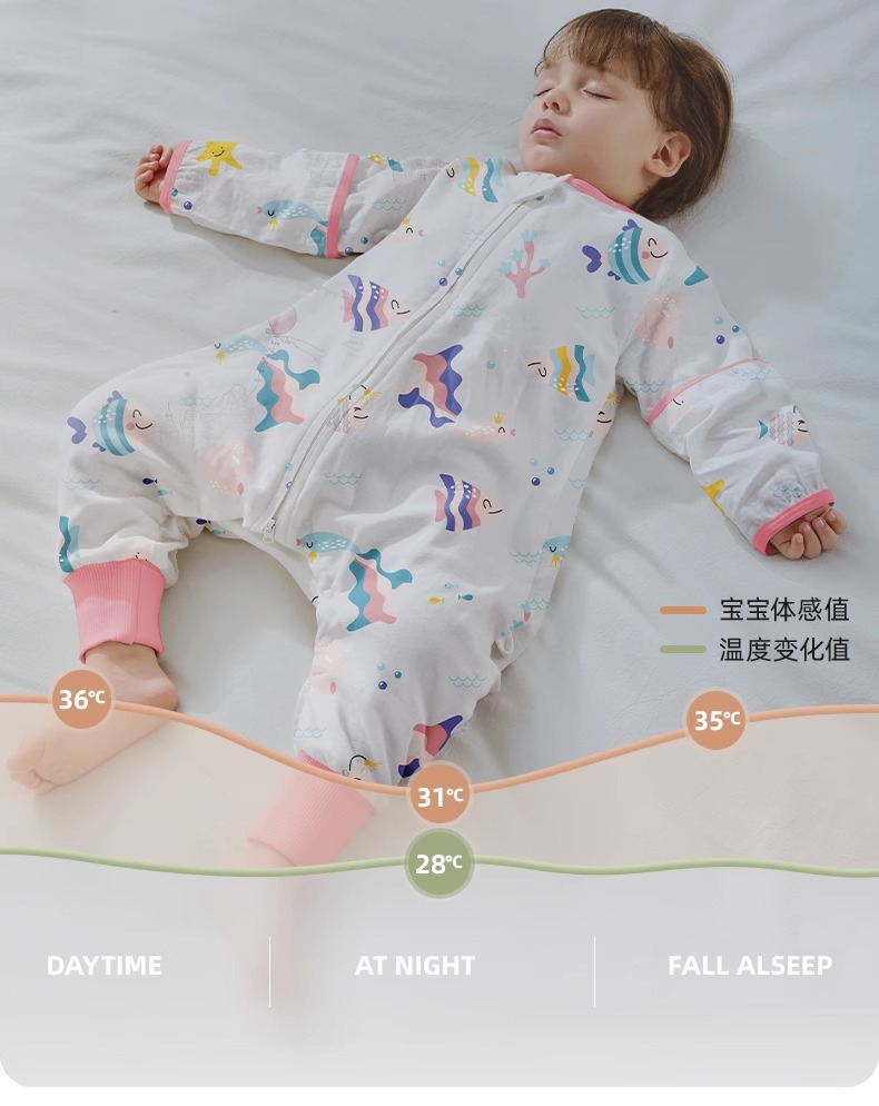 베티스 아기 수면조끼 2025 신형 거즈 어린이용 봄 가을용 다리 분리형 발차기 방지 이불 사계절용