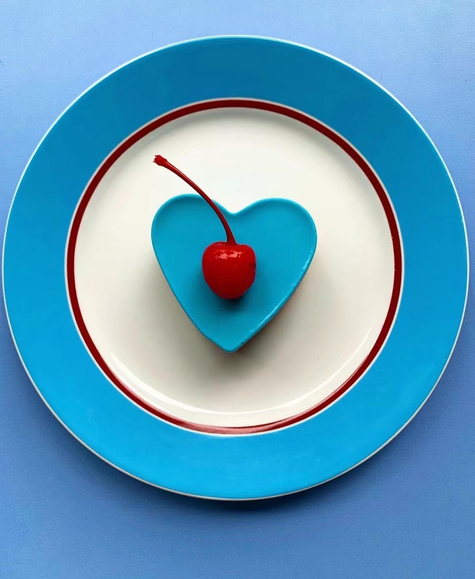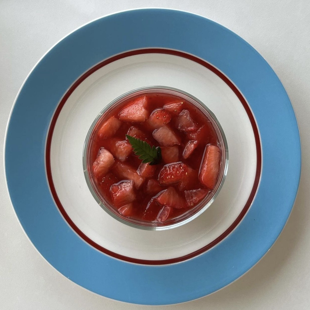 인 한국 스타일 간단한 밝은 블루 레드 라인 플레이트 디너 플레이트 살라 플레이트 디저트 플레이트 틈새 블루 아름다운 사진 플레이트스토어 가기