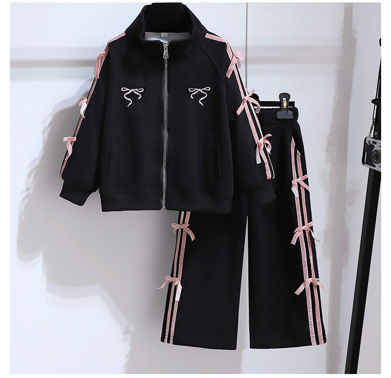 중대형 아동용 봄, 가을 새로운 스타일의 달콤한 공주 스타일 정장, 여아용 지퍼 재킷과 바지 투피스 세트