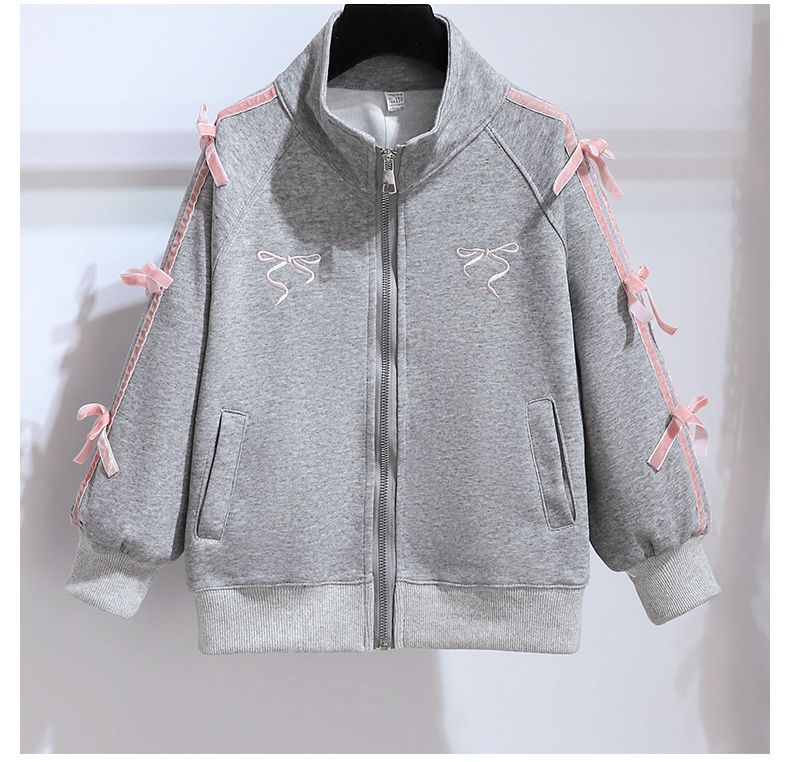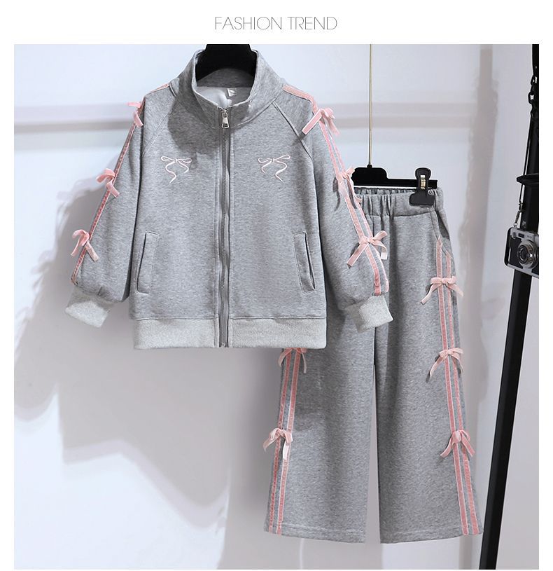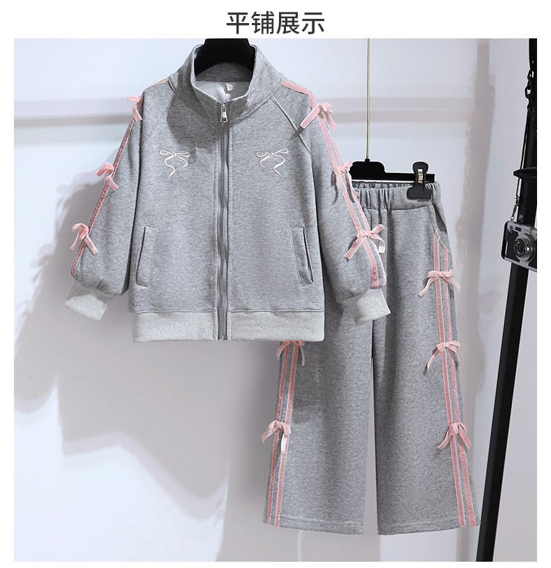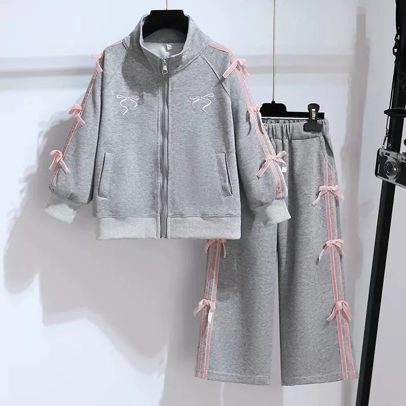 중대형 아동용 봄, 가을 새로운 스타일의 달콤한 공주 스타일 정장, 여아용 지퍼 재킷과 바지 투피스 세트스토어 가기