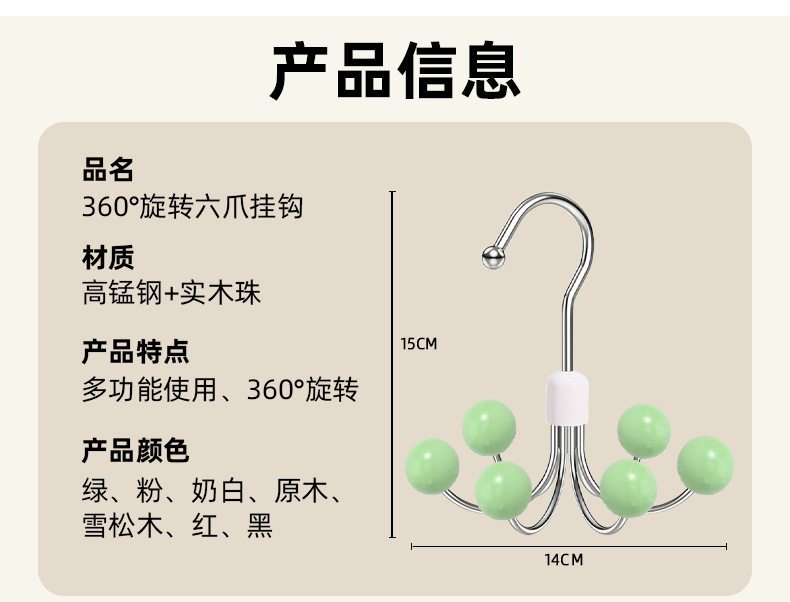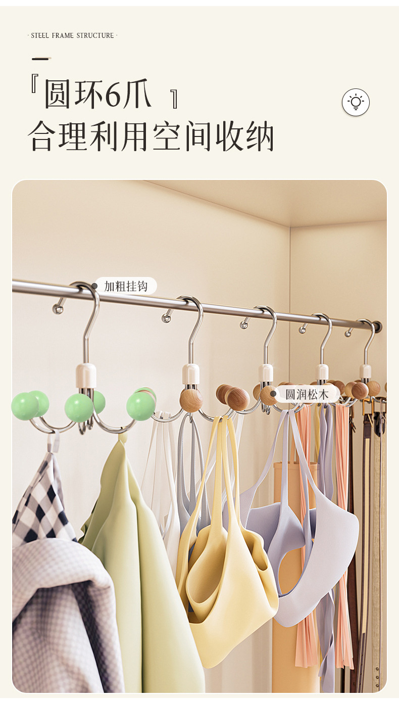 6-발톱 후크 가정용 다기능 행거 슬링 속옷 보관 아티팩트 기숙사 옷장 360 도 회전 후크스토어 가기