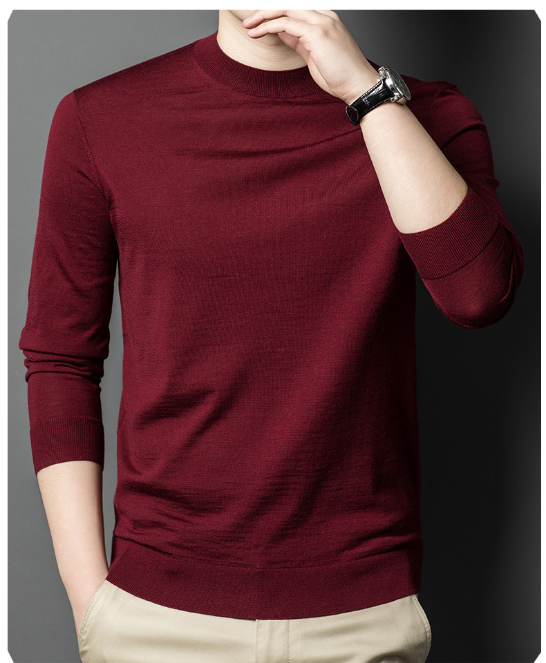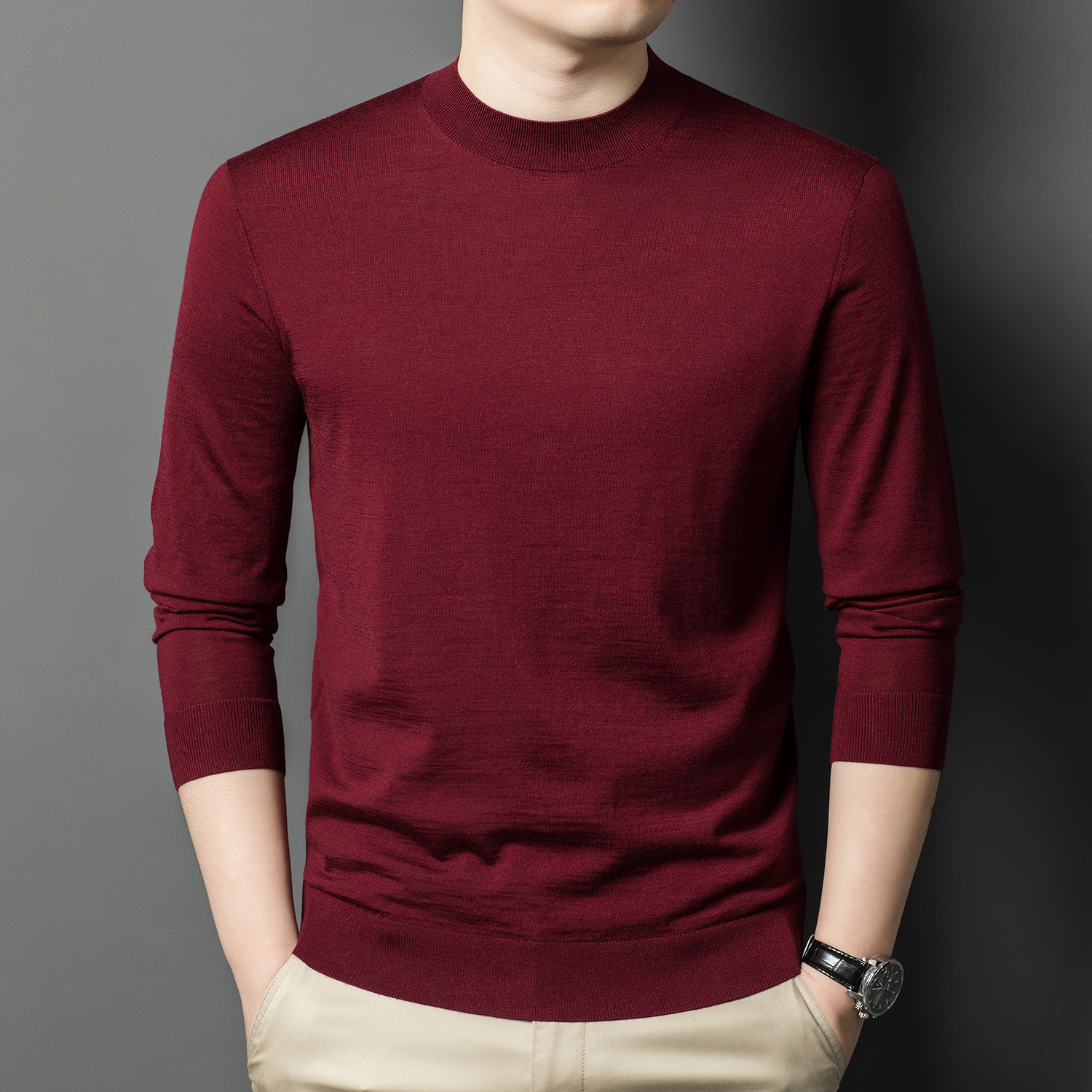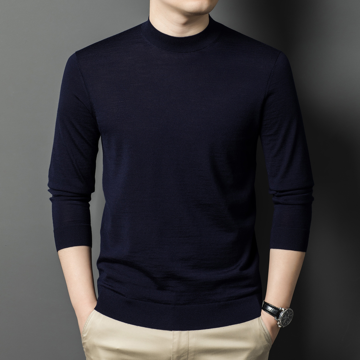 하이 퀄리티 100% 워스트 모직 스웨터 남자의 가을과 겨울 얇은 솔리드 컬러 클린 버전 라운드 넥 머신 세탁기 따뜻한 베이스 셔츠스토어 가기