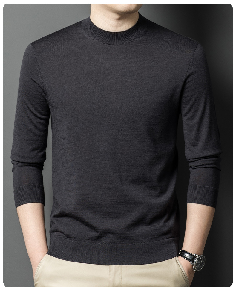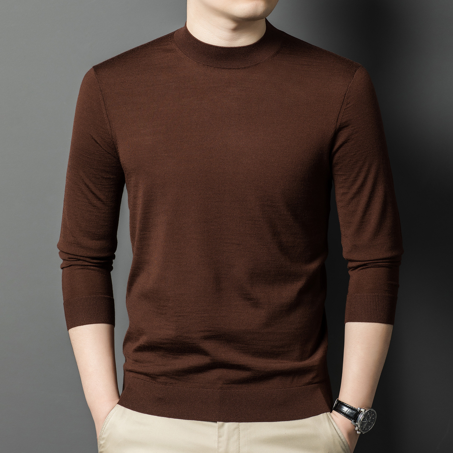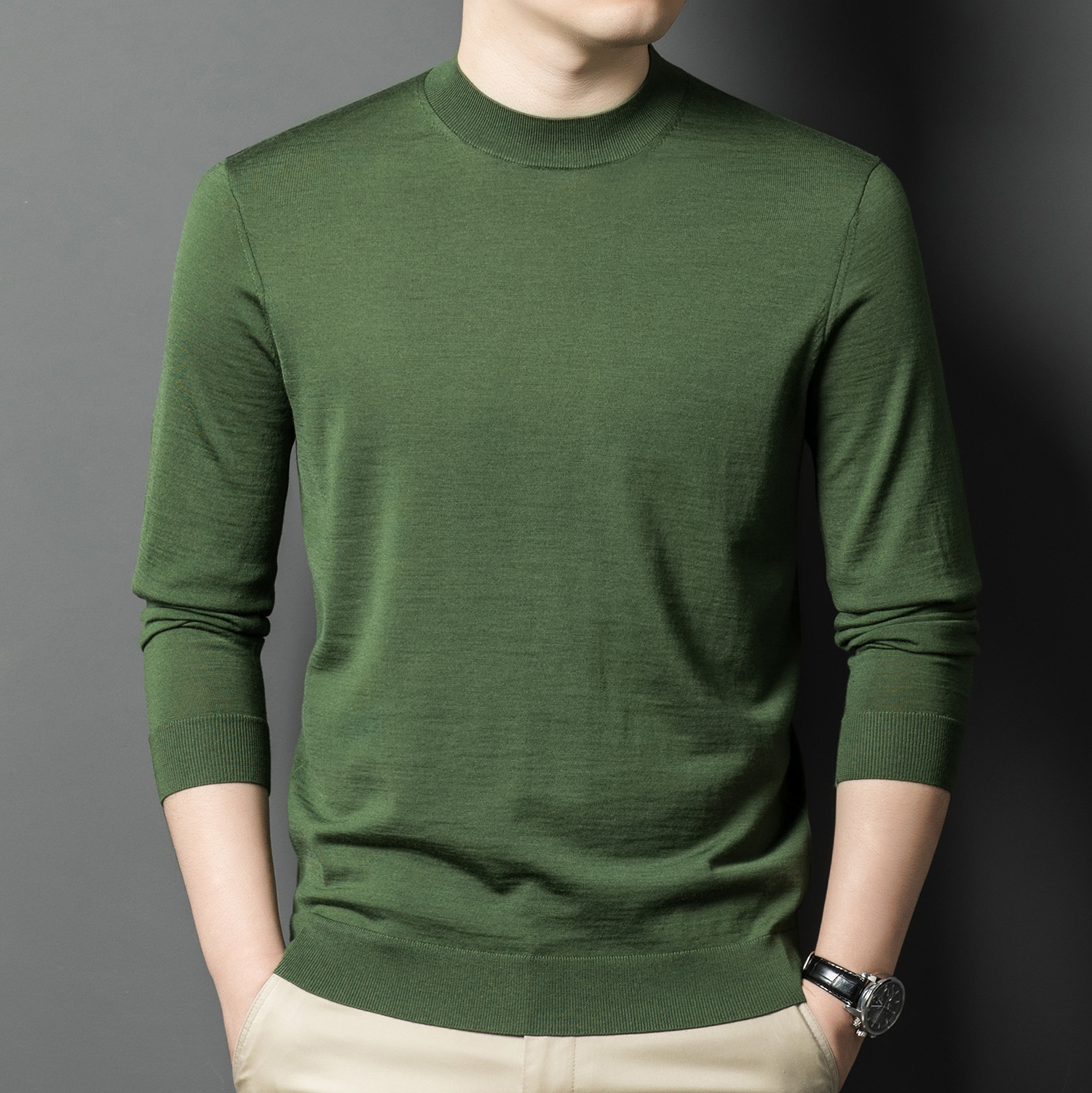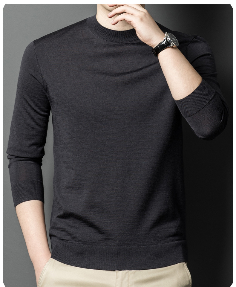 하이 퀄리티 100% 워스트 모직 스웨터 남자의 가을과 겨울 얇은 솔리드 컬러 클린 버전 라운드 넥 머신 세탁기 따뜻한 베이스 셔츠스토어 가기