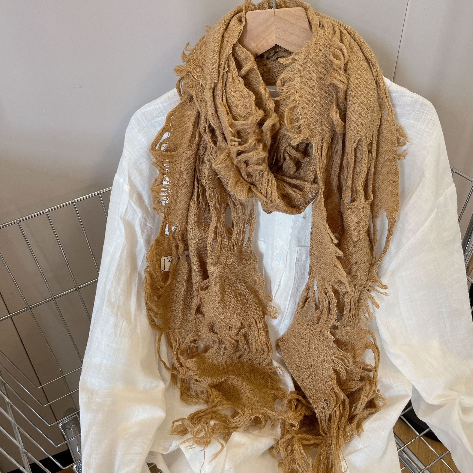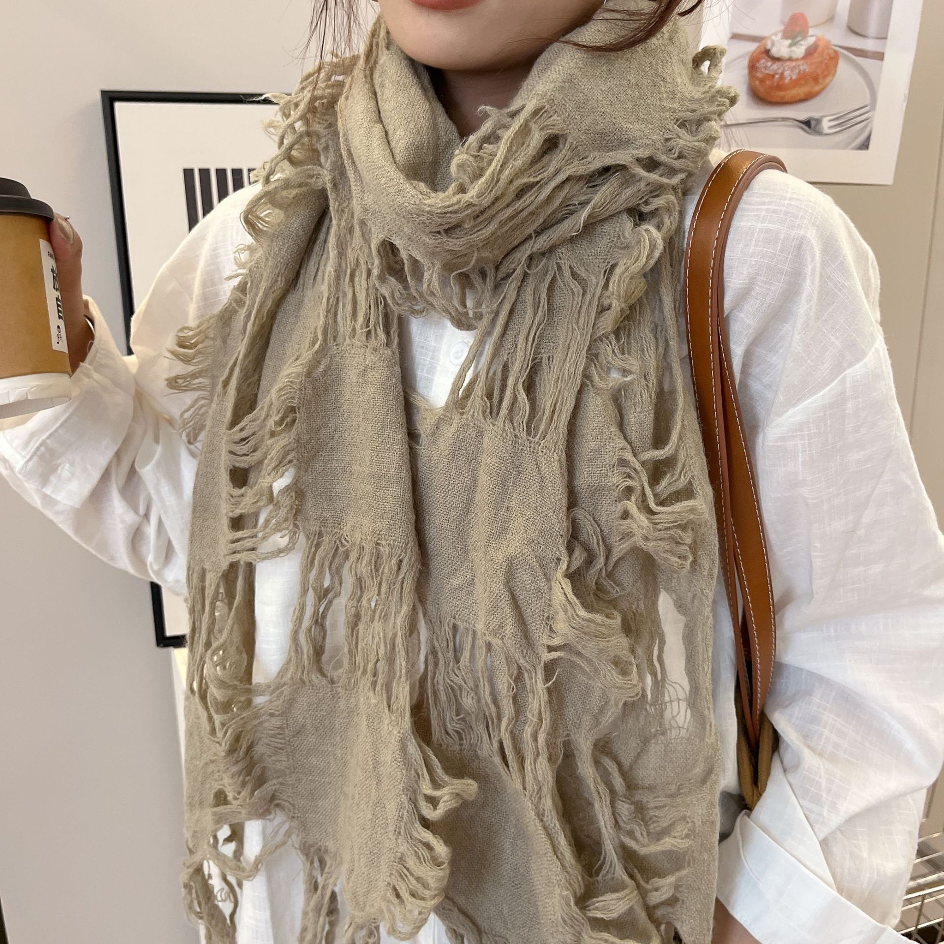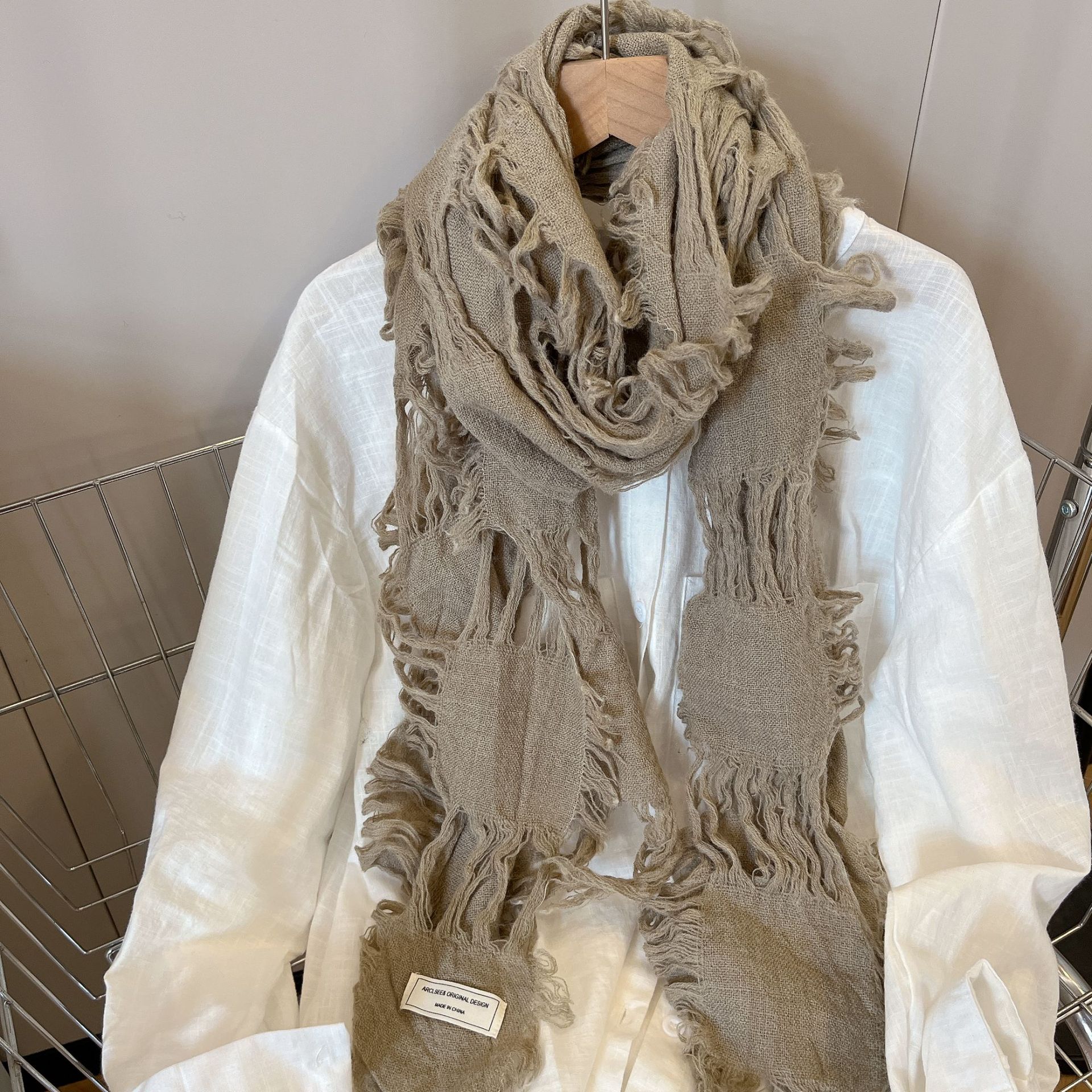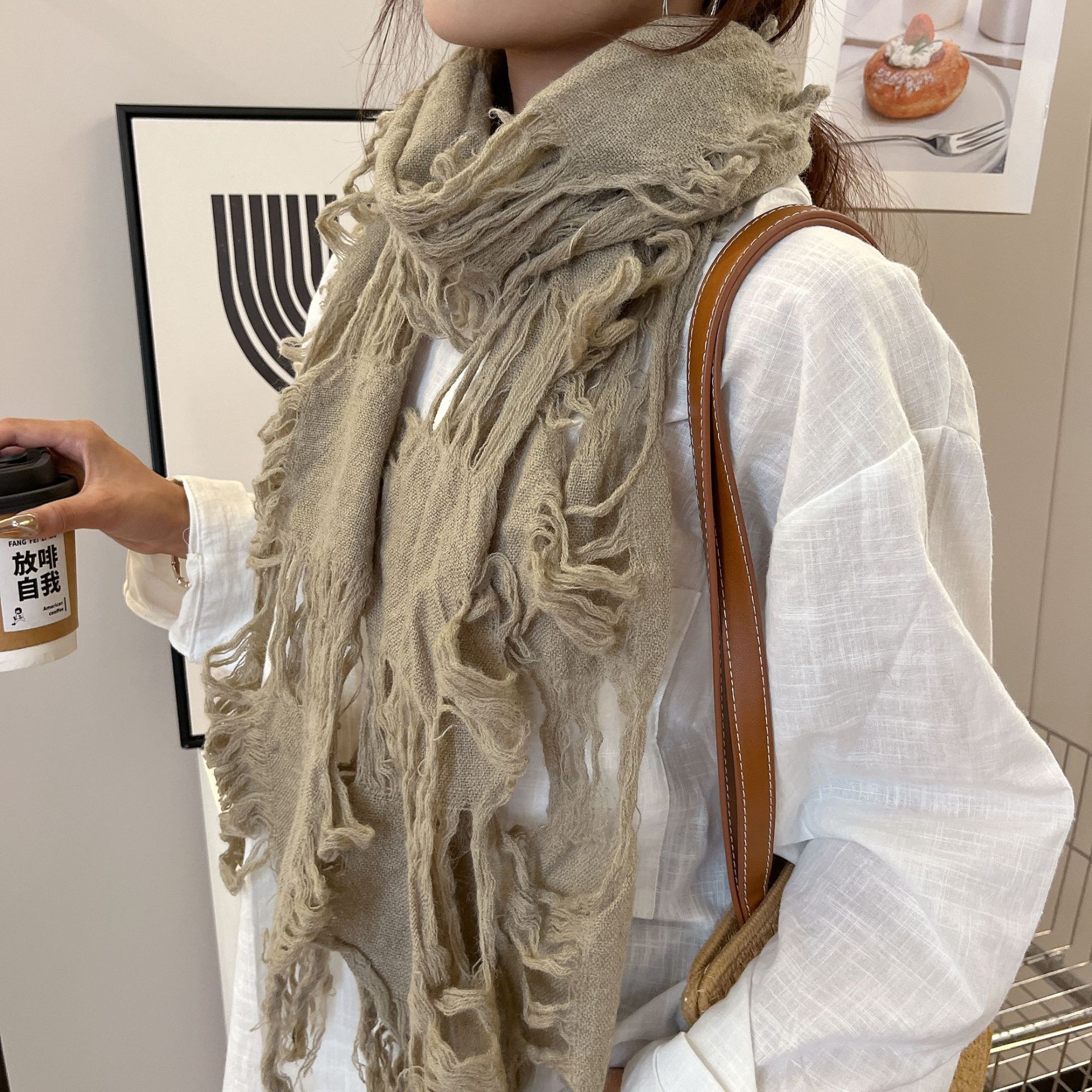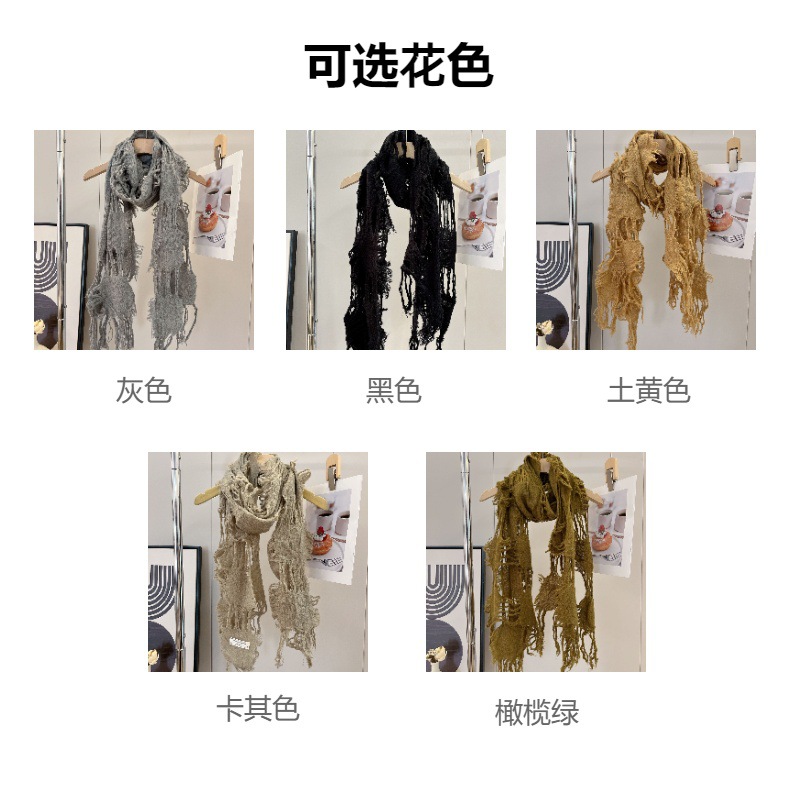 • 카키 WJ13 찢어진 스카프 양털 49%
