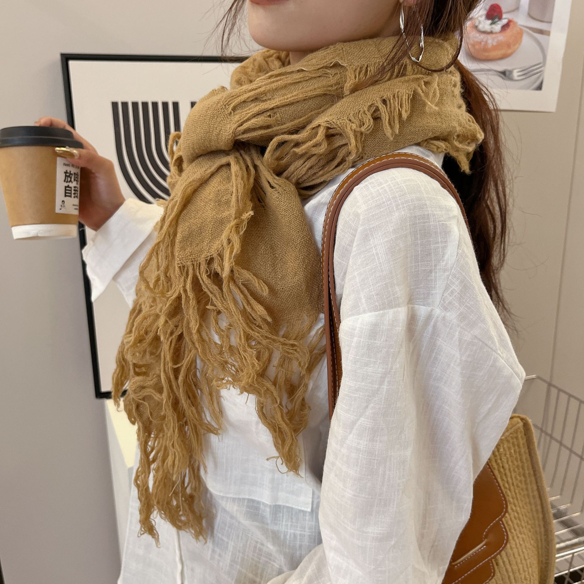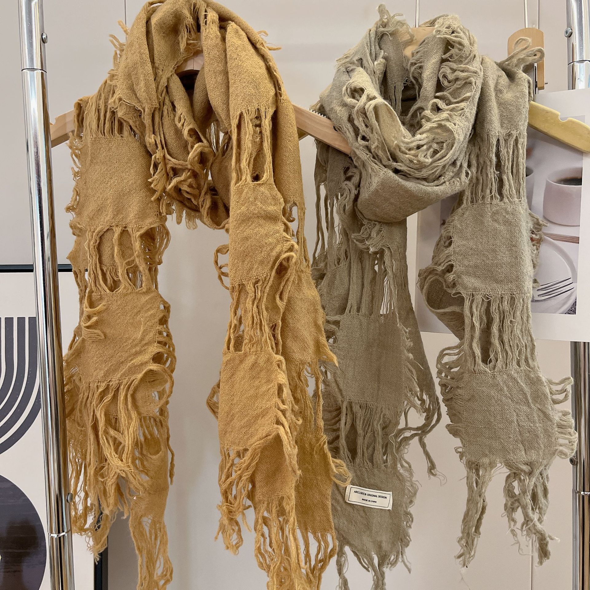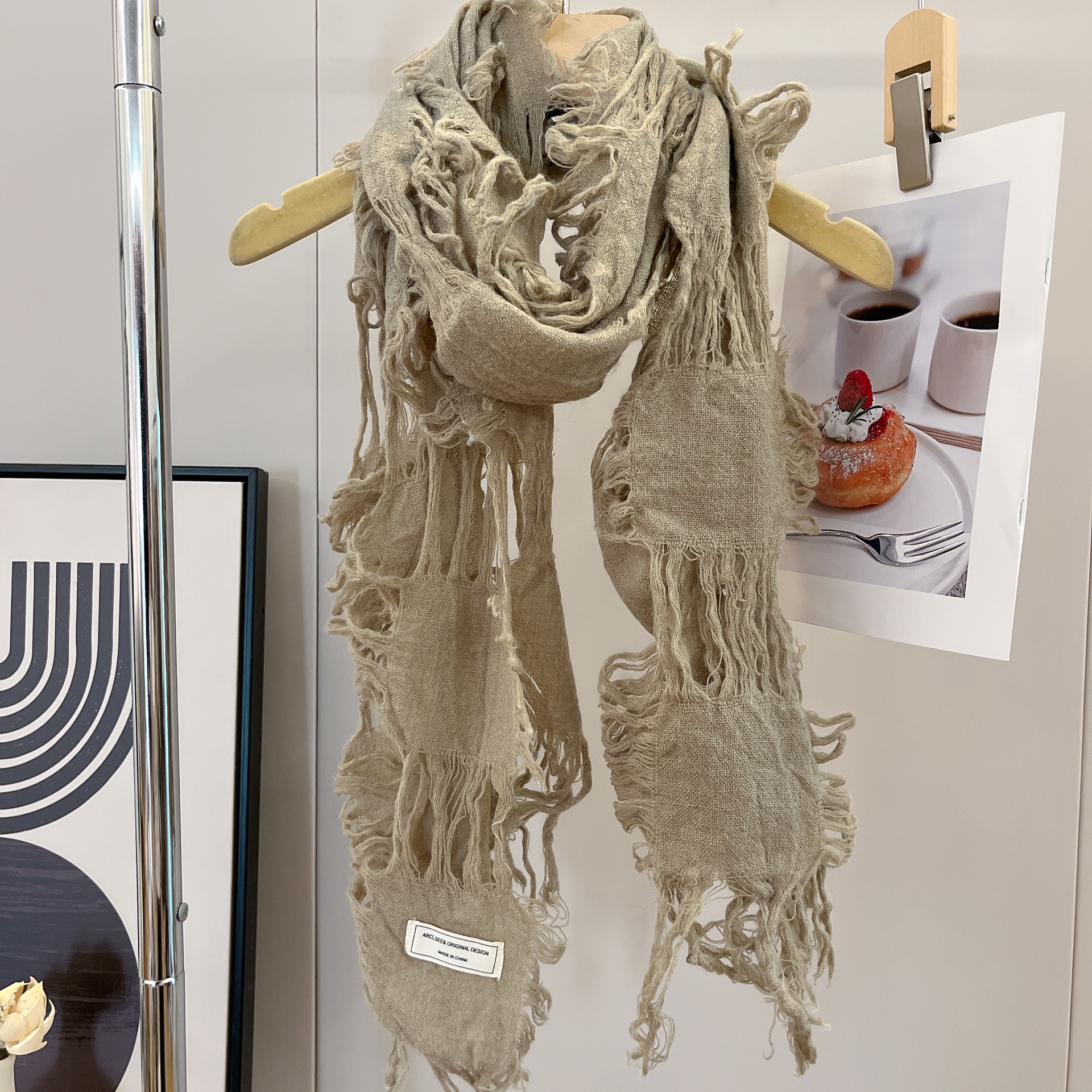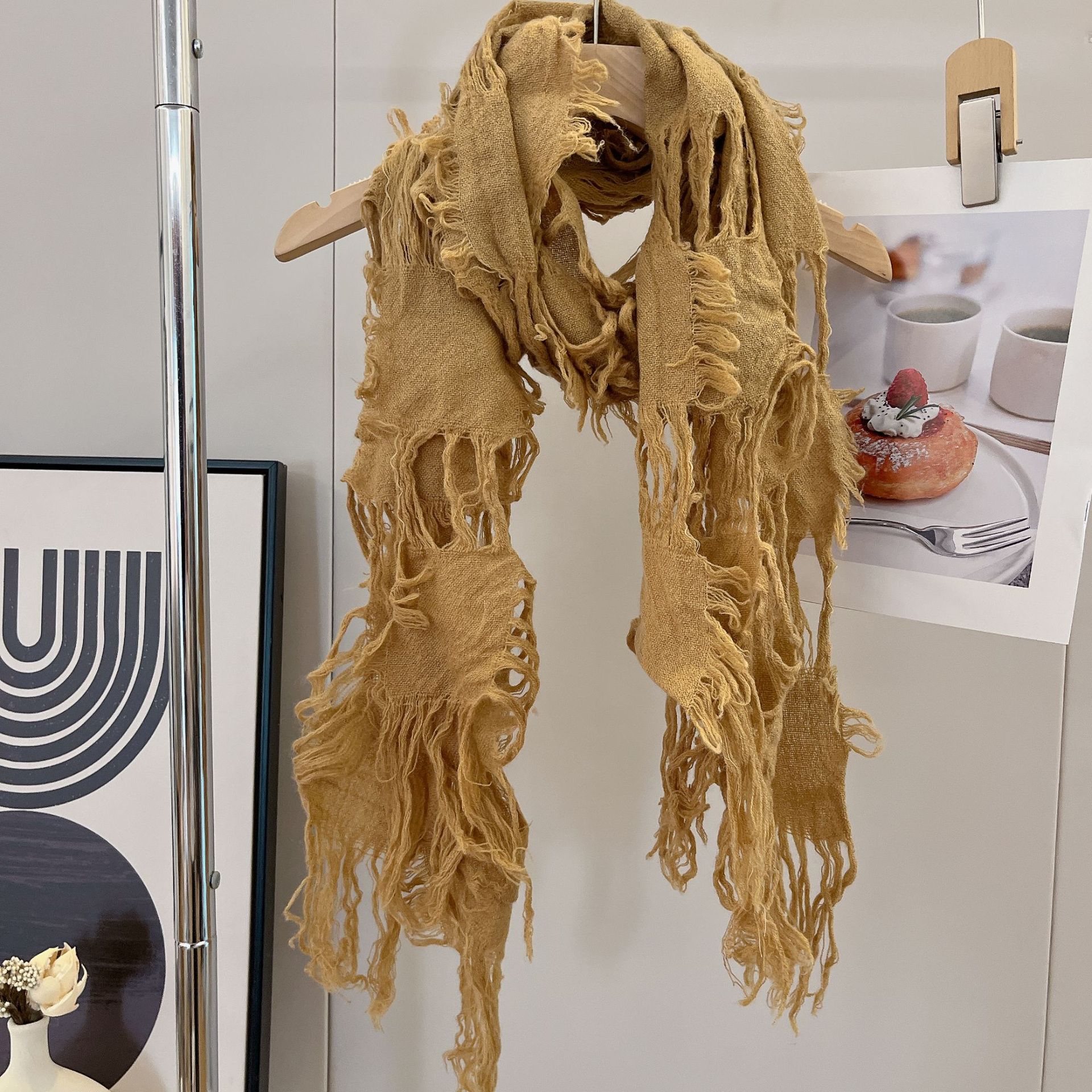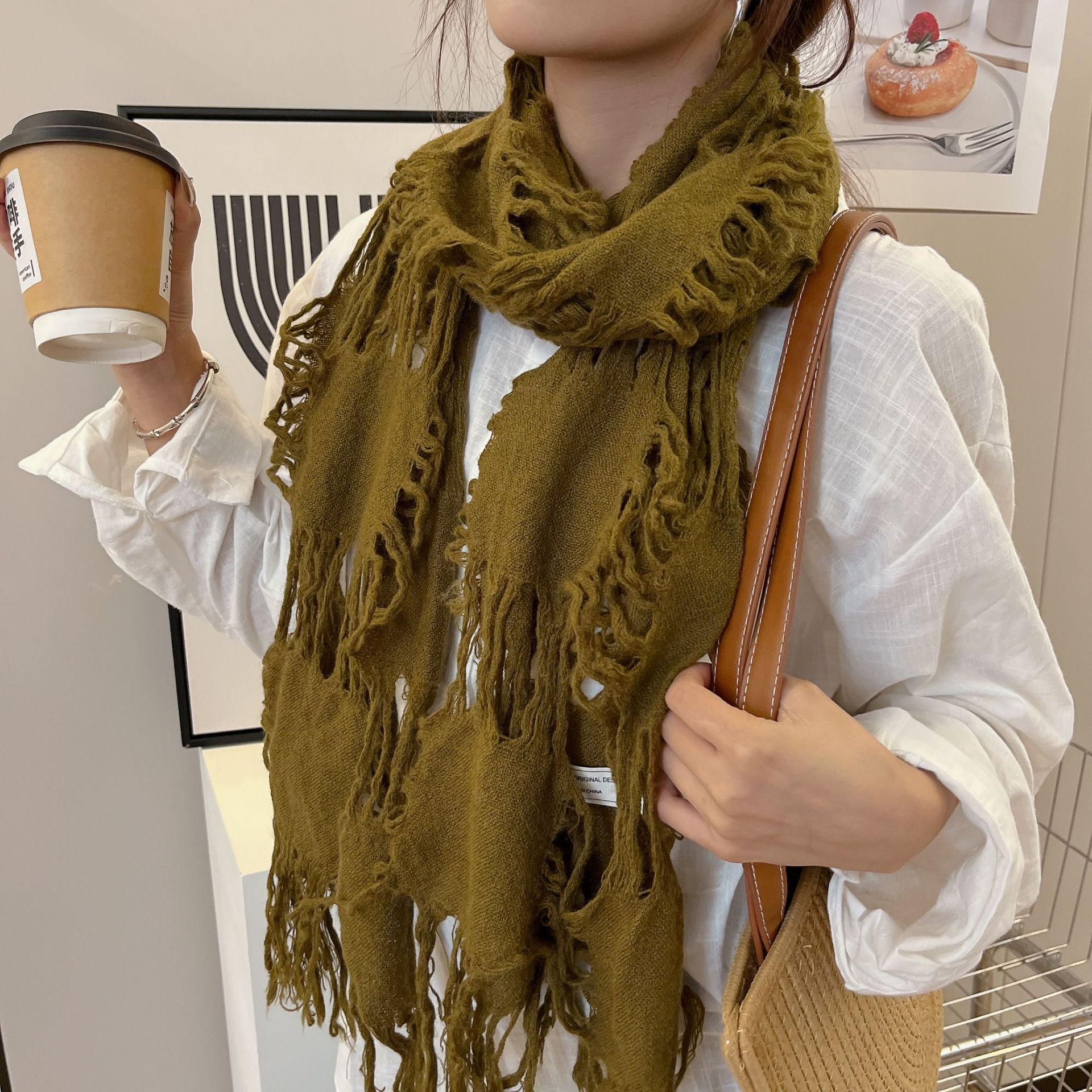 • 카키 WJ13 찢어진 스카프 양털 49%