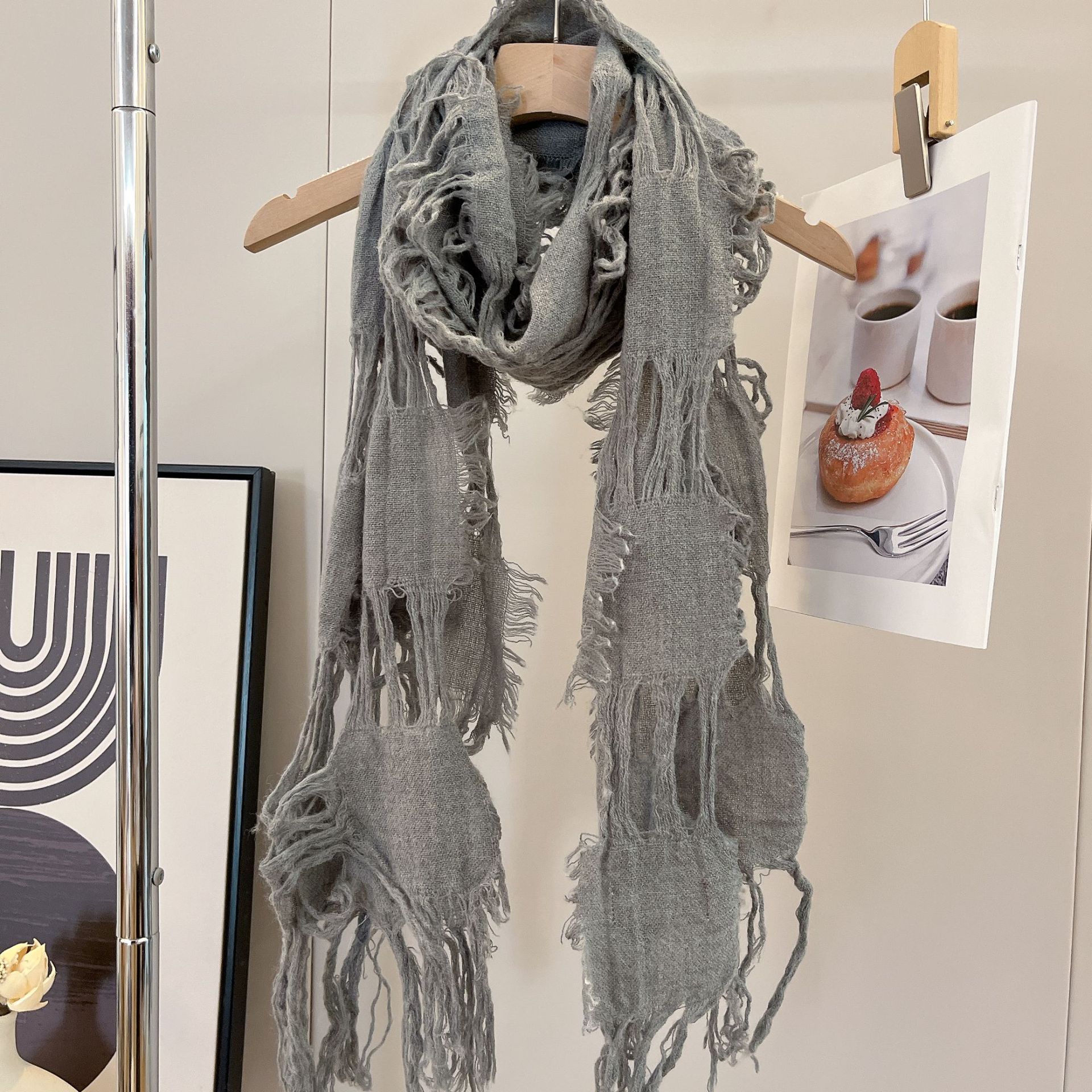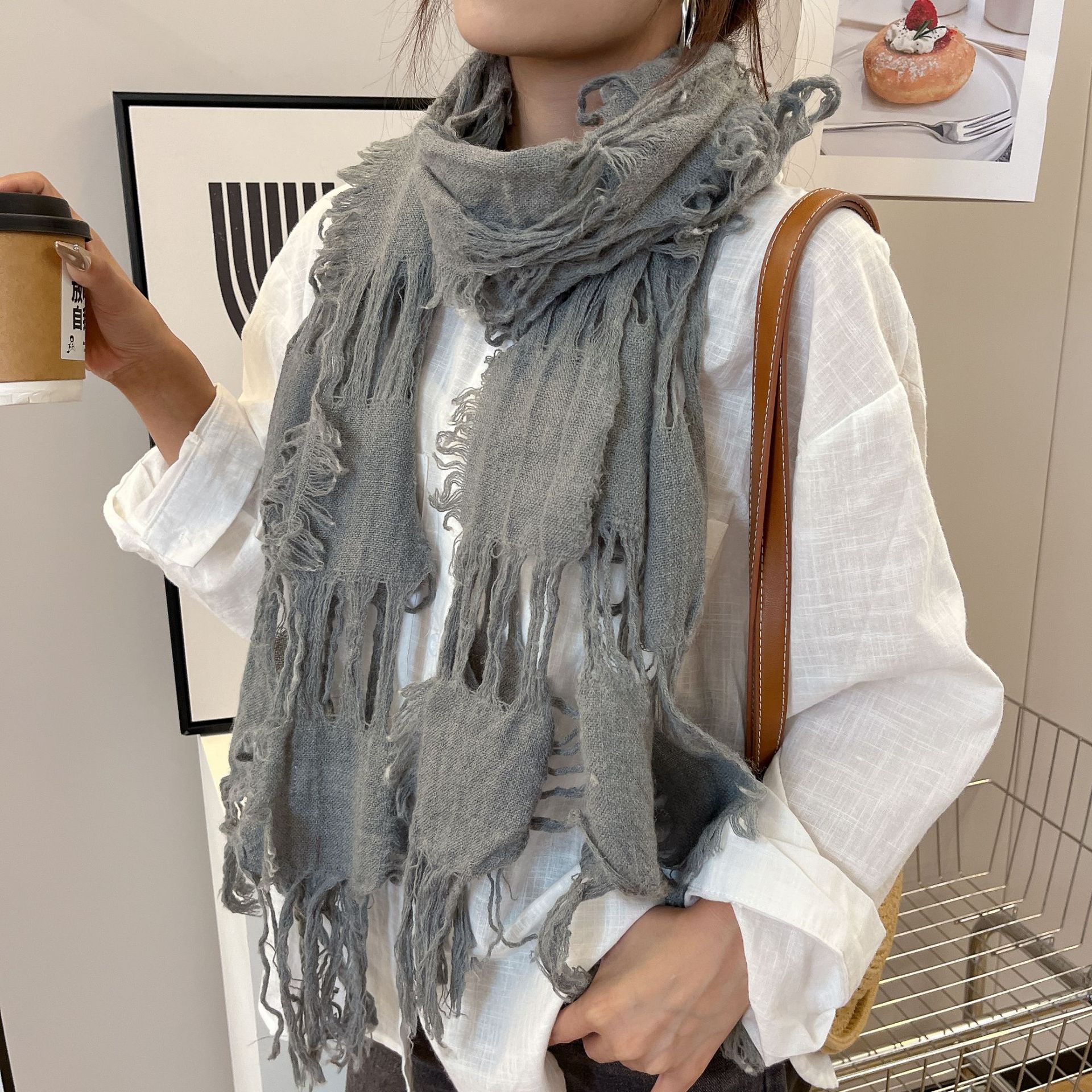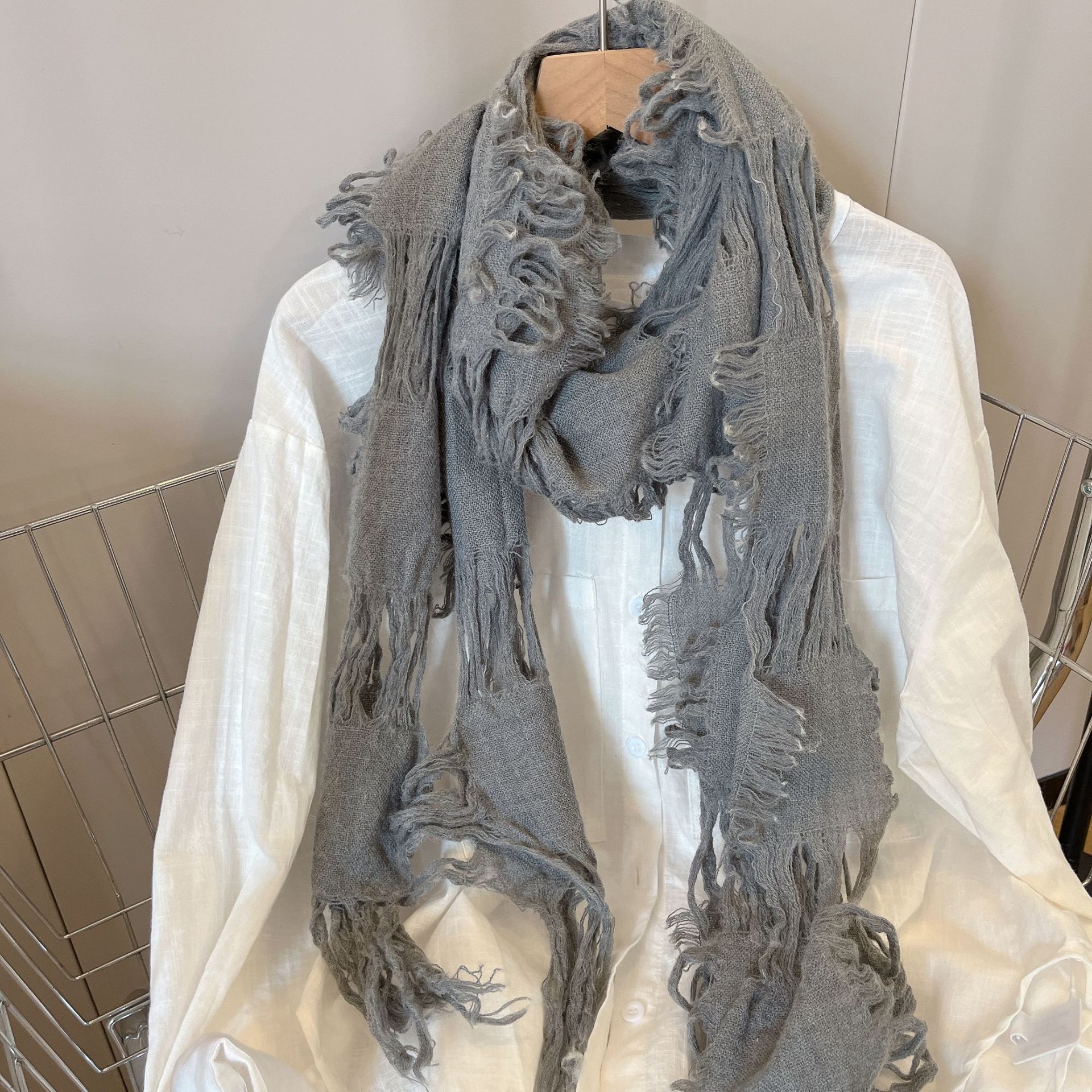 • 그레이 WJ13 찢어진 스카프 양털 49%