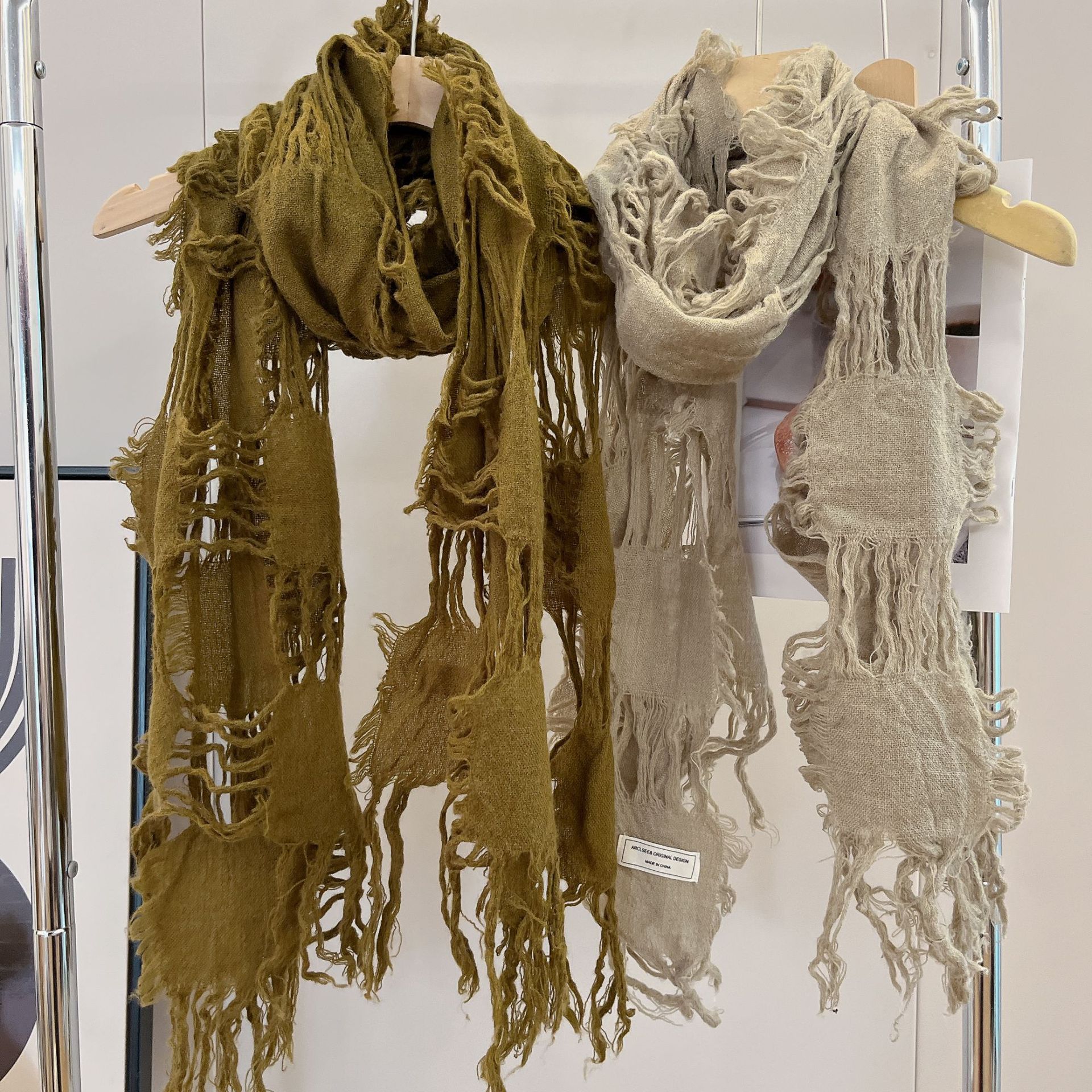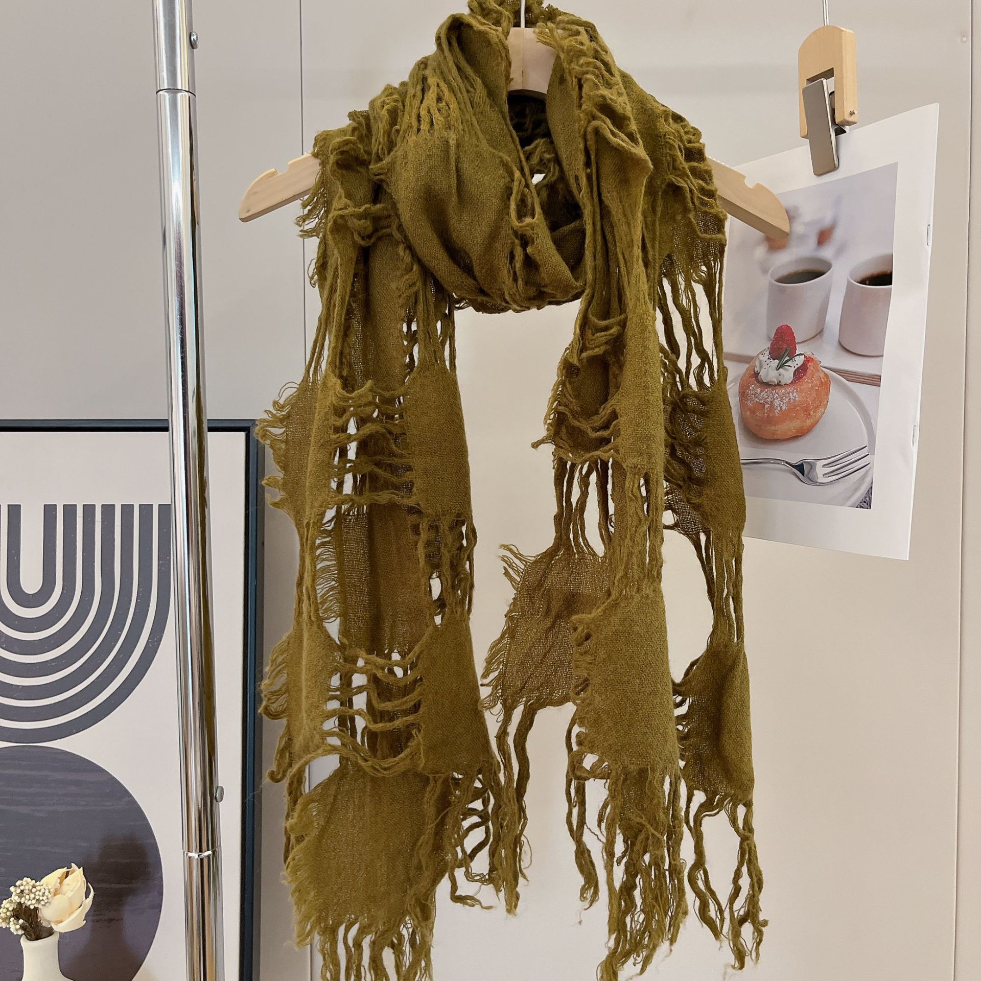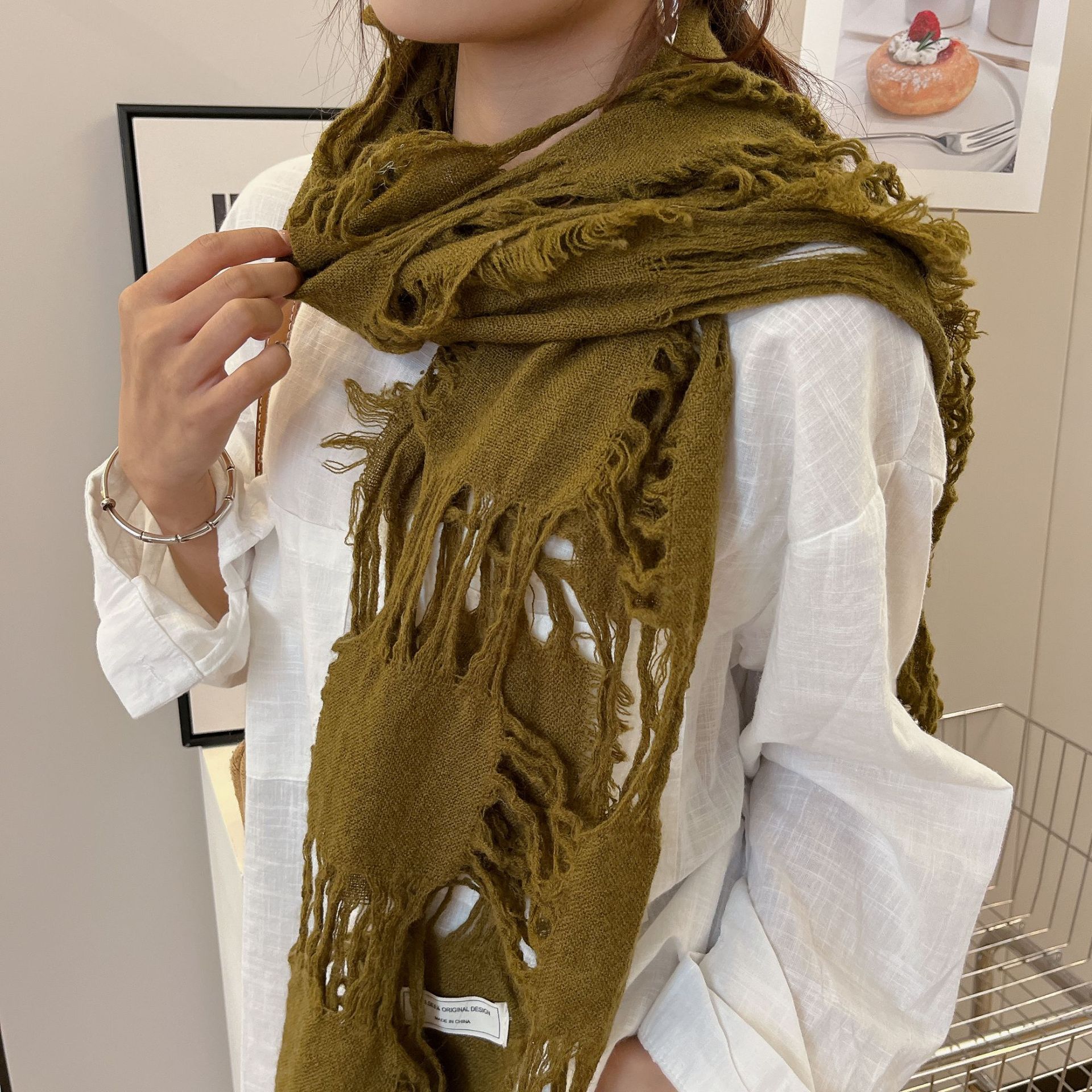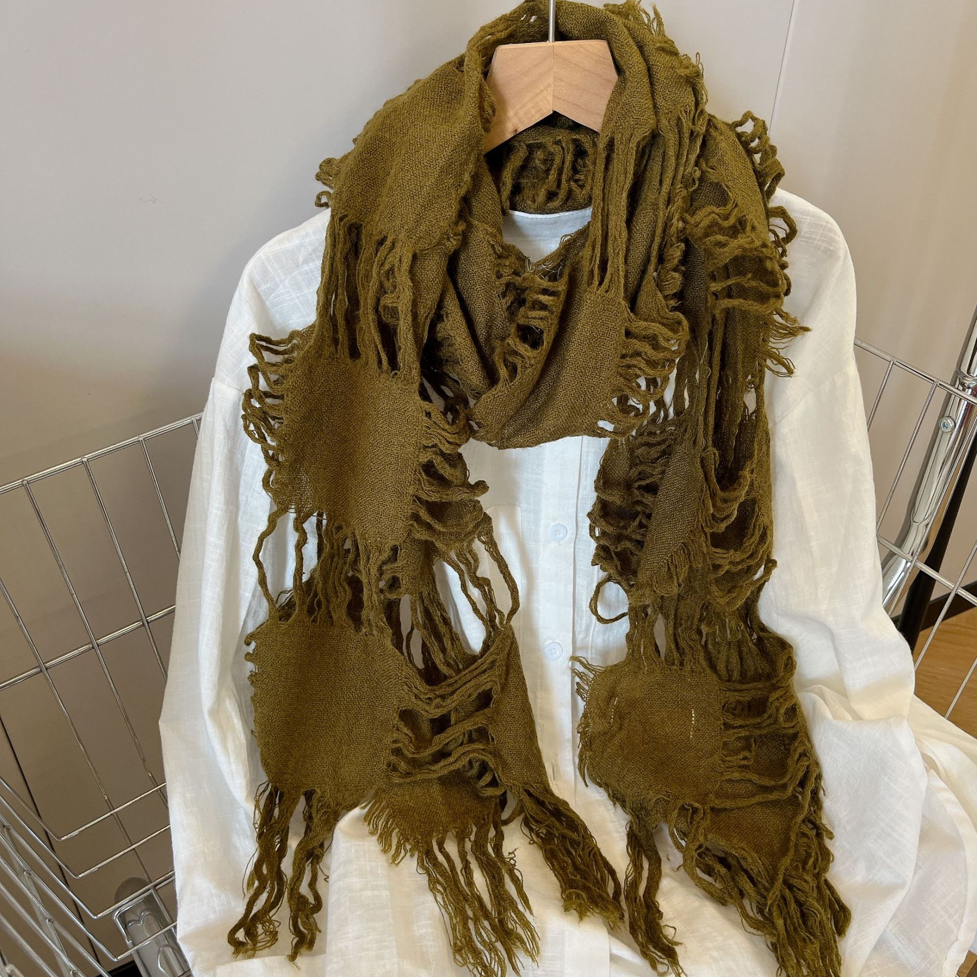 • 올리브 그린 WJ13 찢어진 스카프 양털 49%