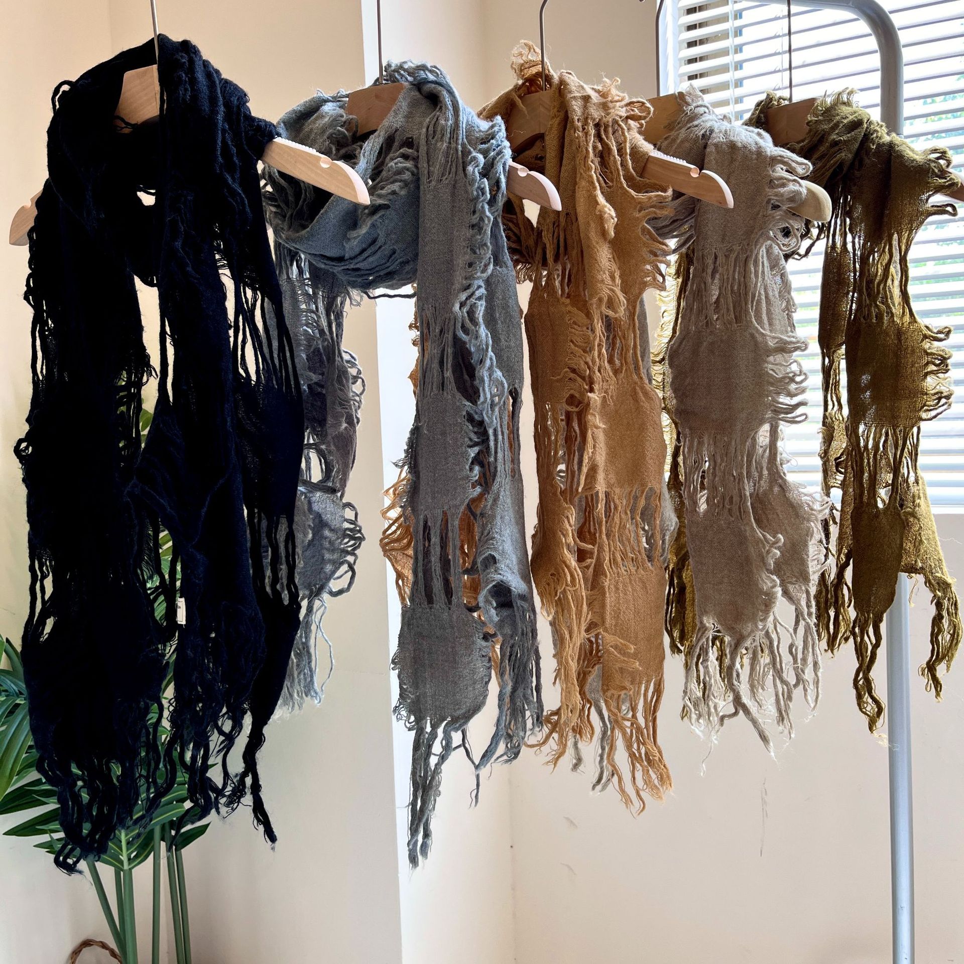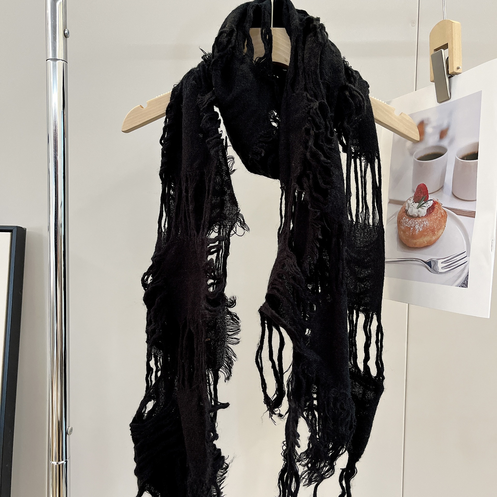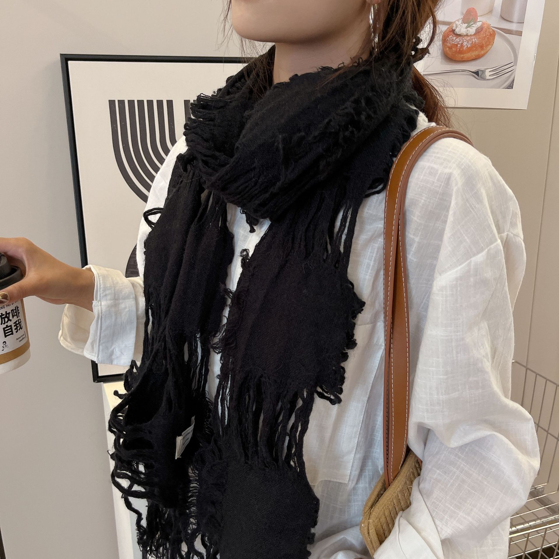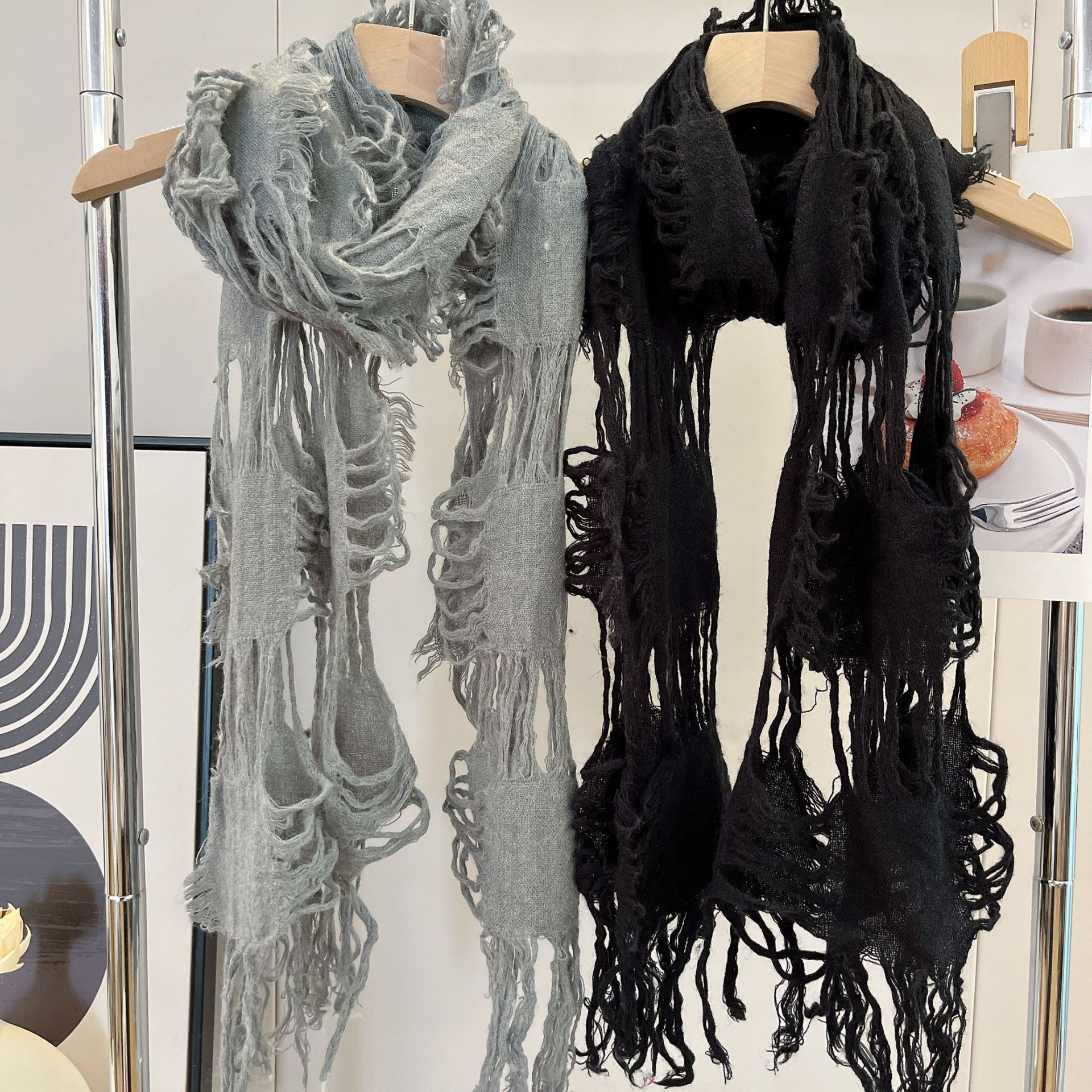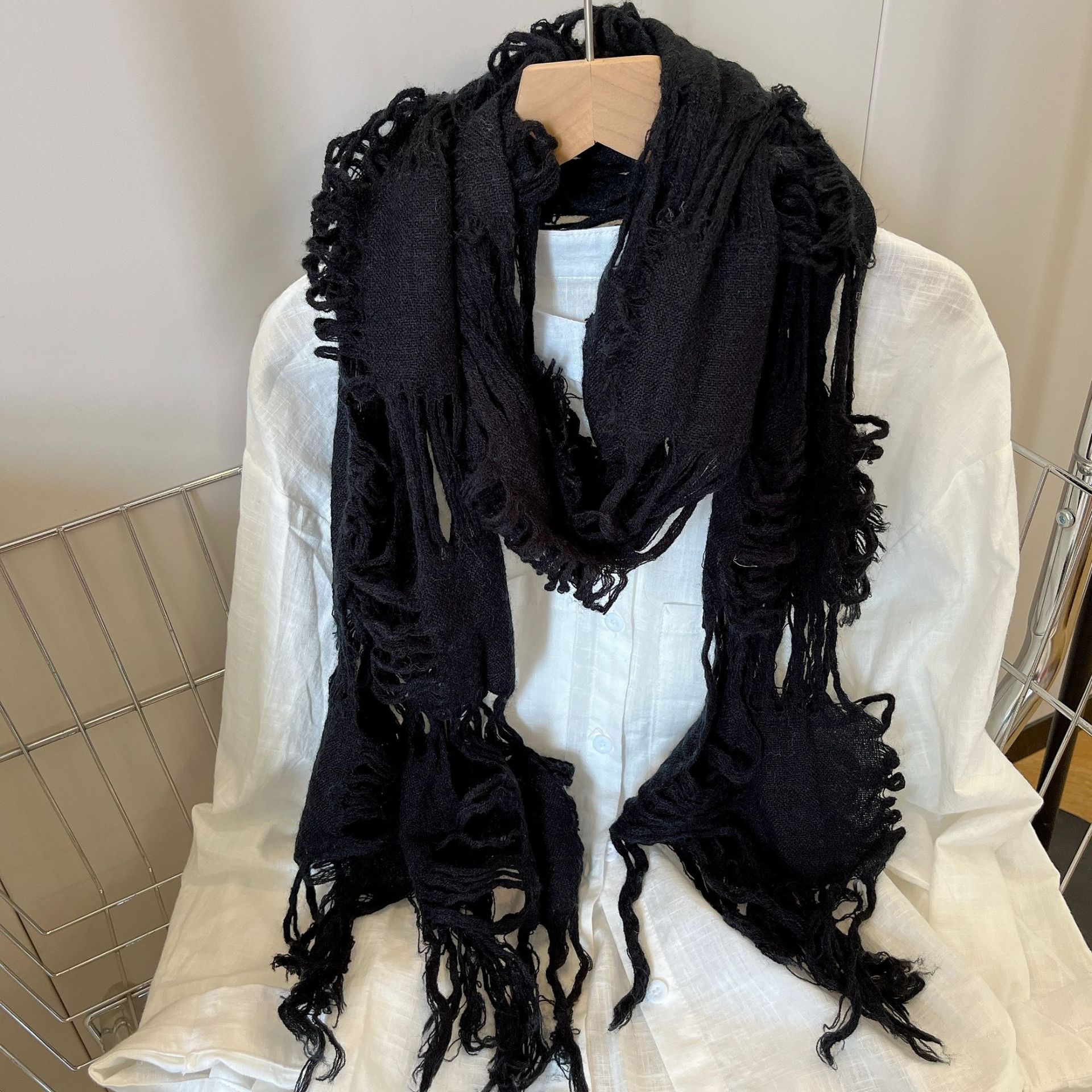 • 블랙 WJ13 찢어진 스카프 양털 49%