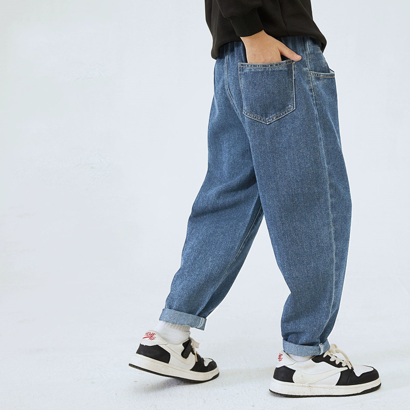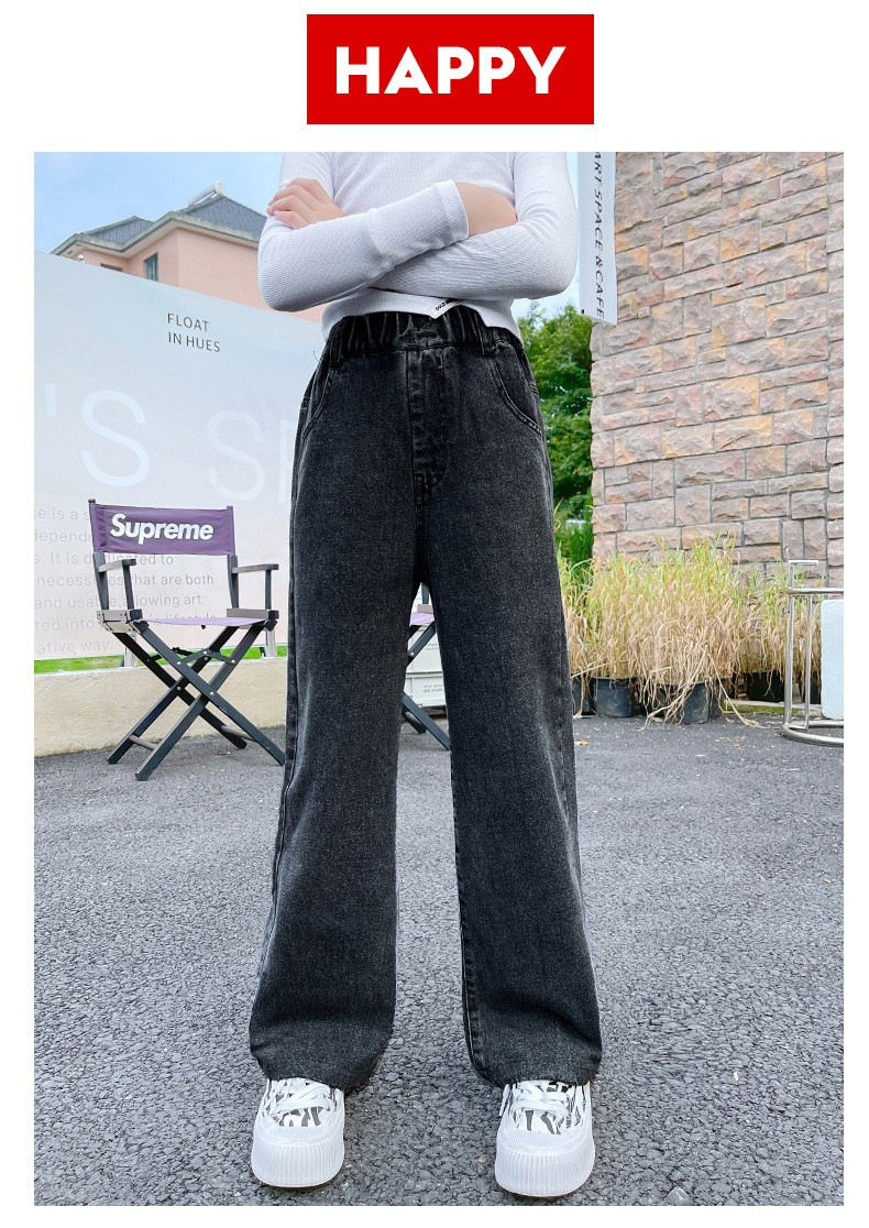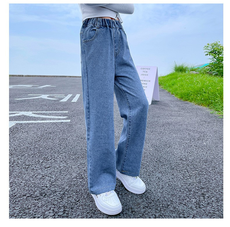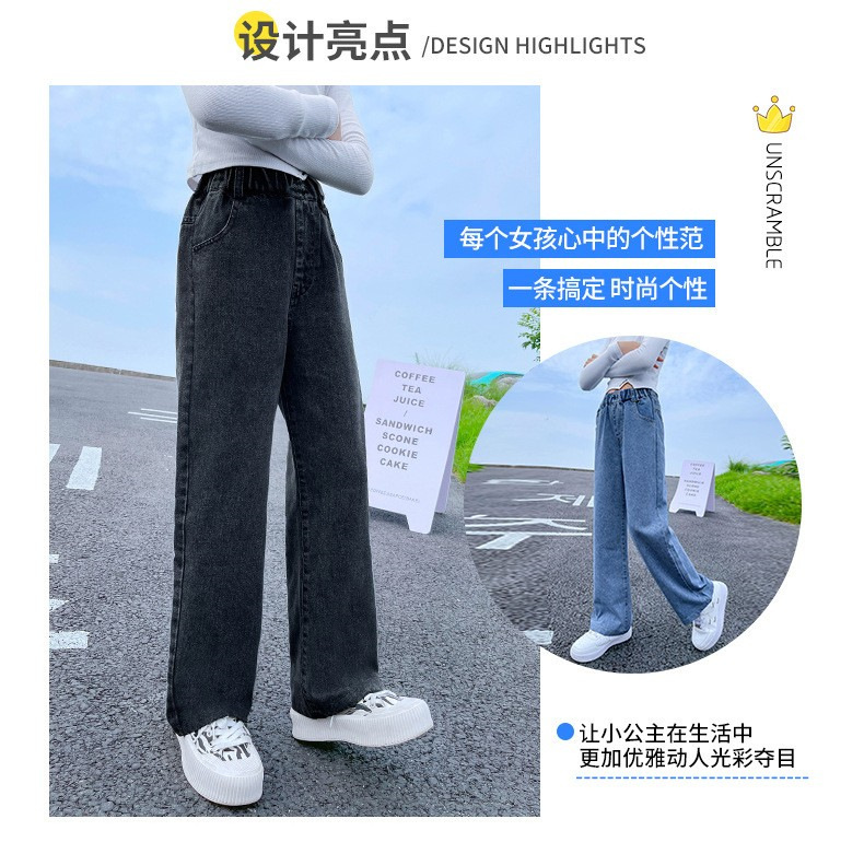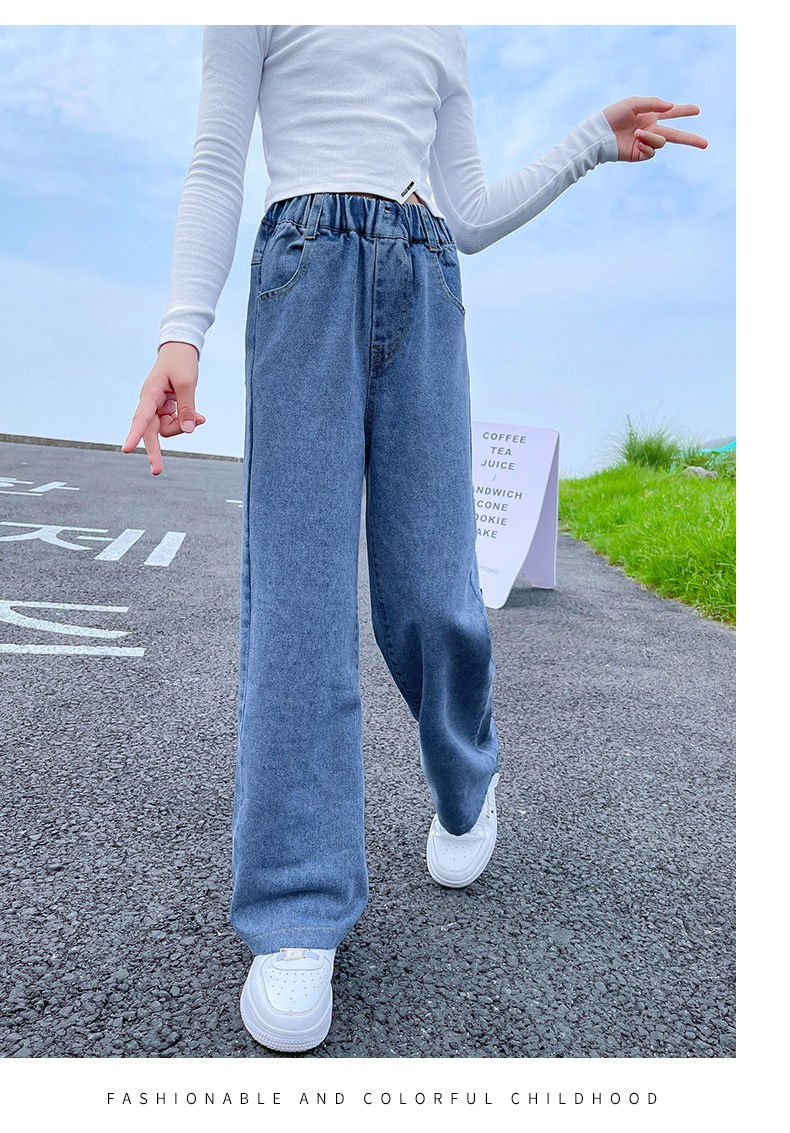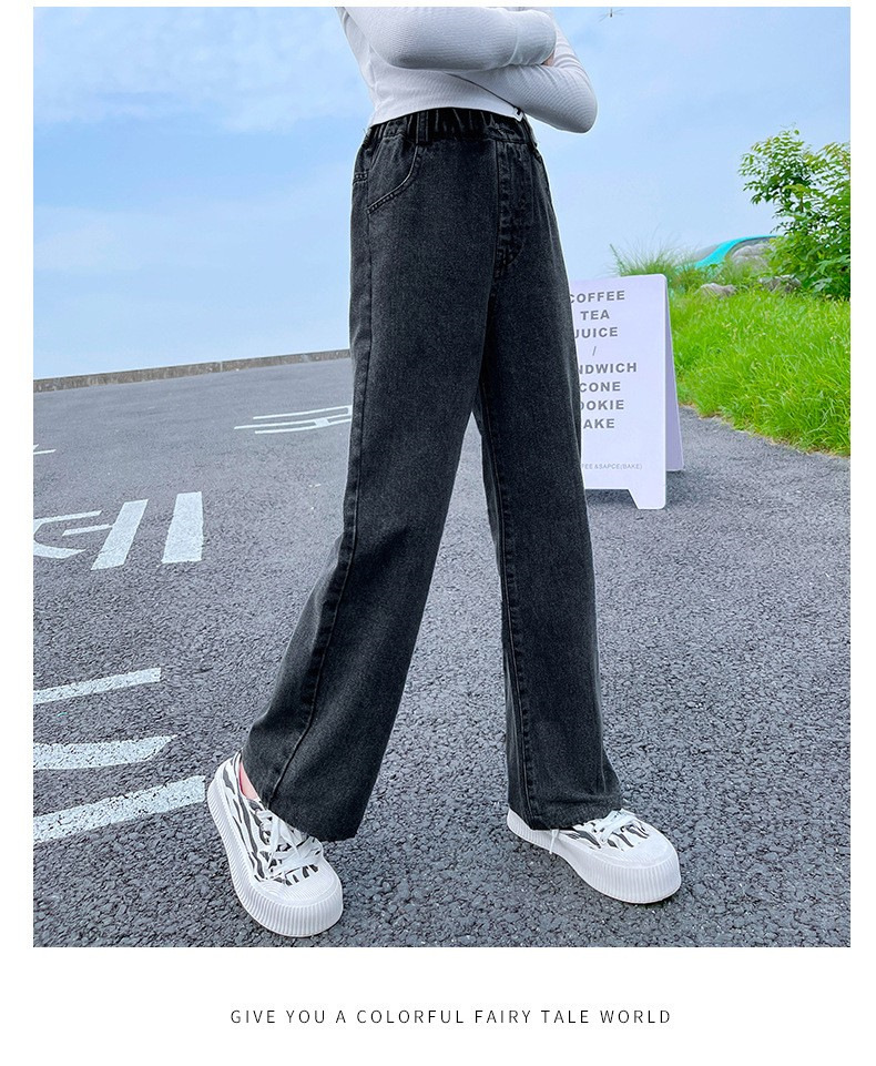 남학생과 여학생을 위한 봄, 가을 청바지, 중대형 아동 및 여아용 루즈한 베이비 캐주얼 스타일 스트레이트 팬츠, 공장 도매스토어 가기