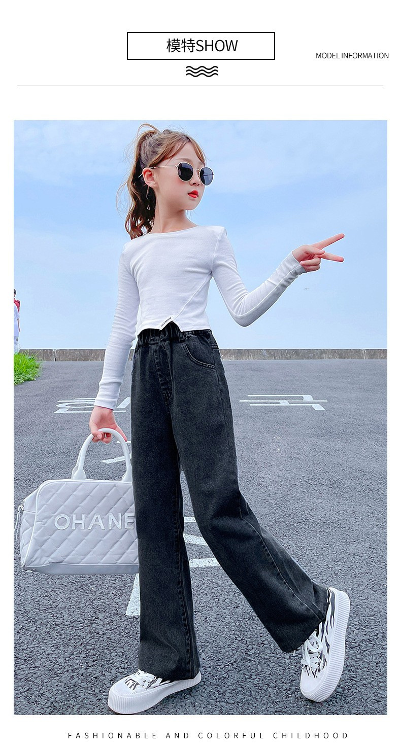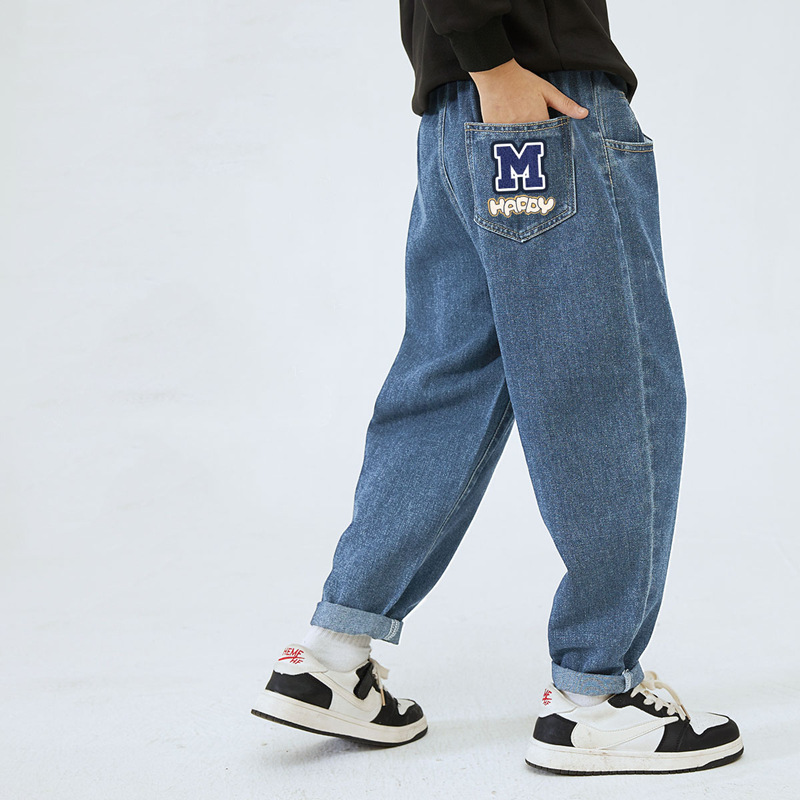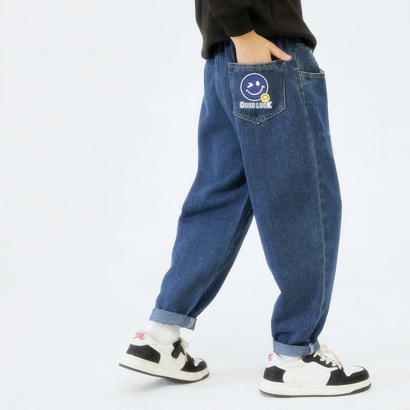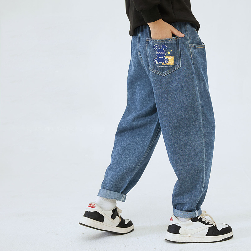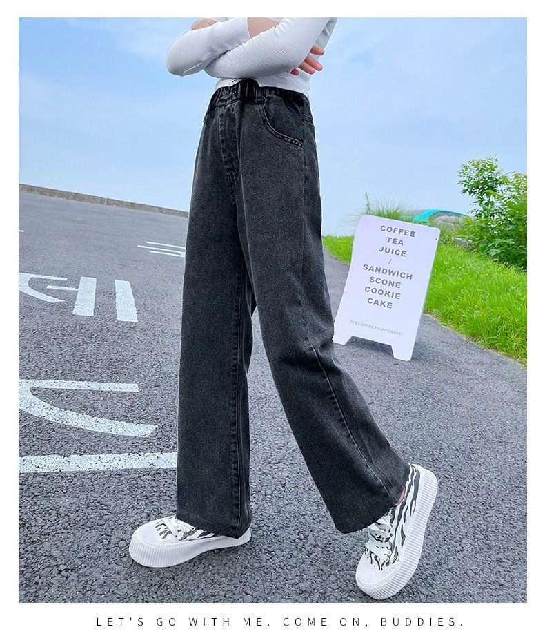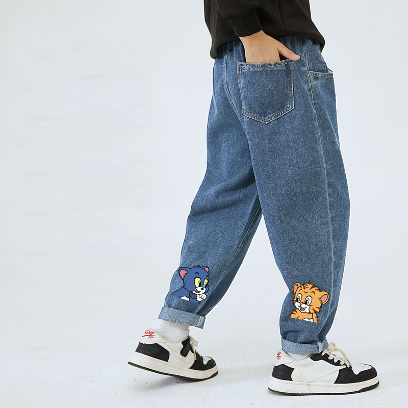 남학생과 여학생을 위한 봄, 가을 청바지, 중대형 아동 및 여아용 루즈한 베이비 캐주얼 스타일 스트레이트 팬츠, 공장 도매스토어 가기