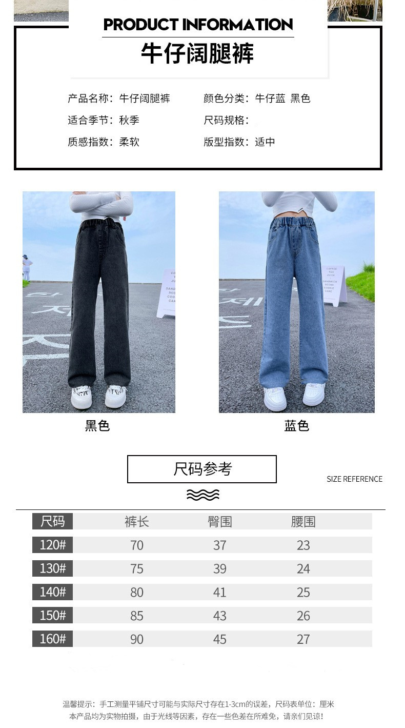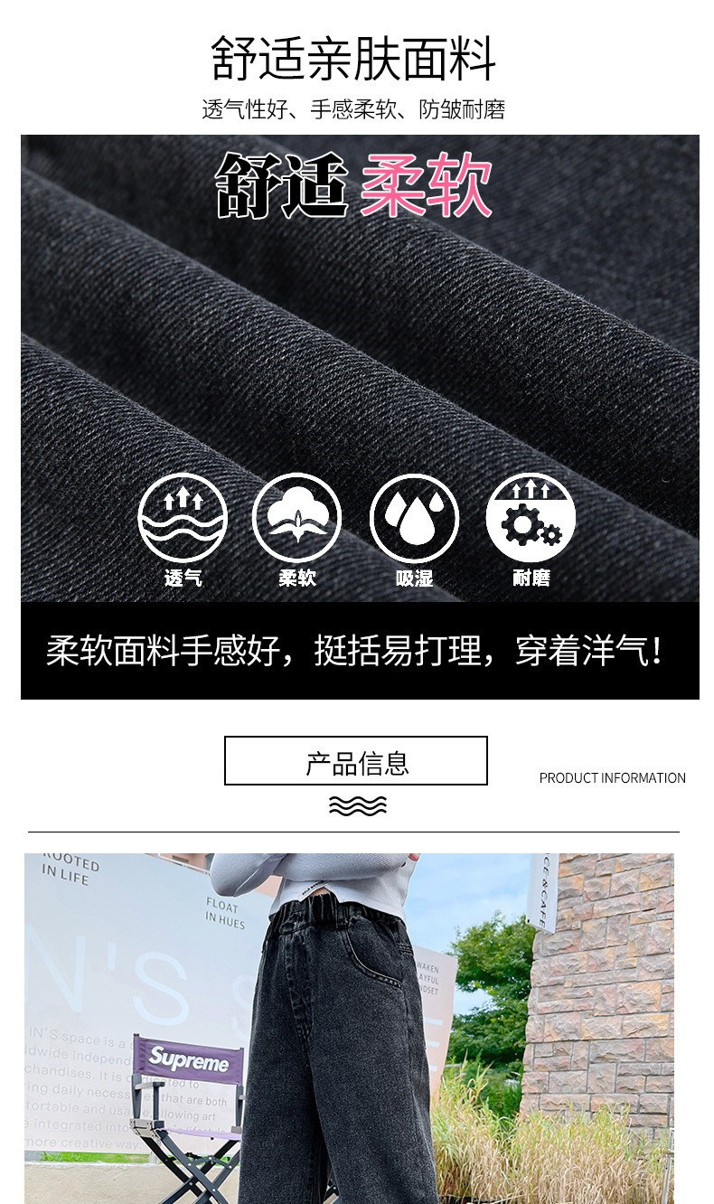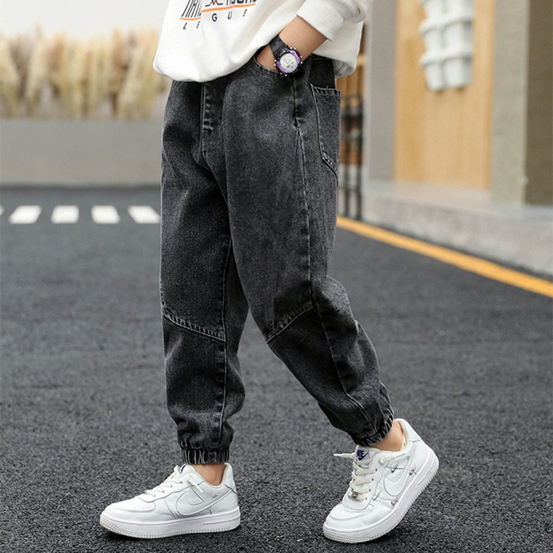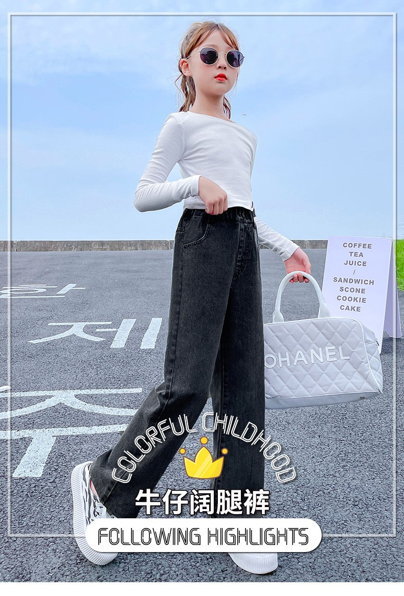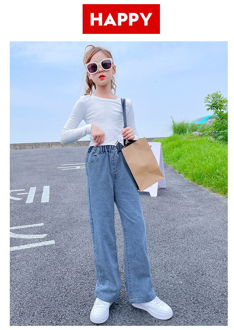 남학생과 여학생을 위한 봄, 가을 청바지, 중대형 아동 및 여아용 루즈한 베이비 캐주얼 스타일 스트레이트 팬츠, 공장 도매스토어 가기