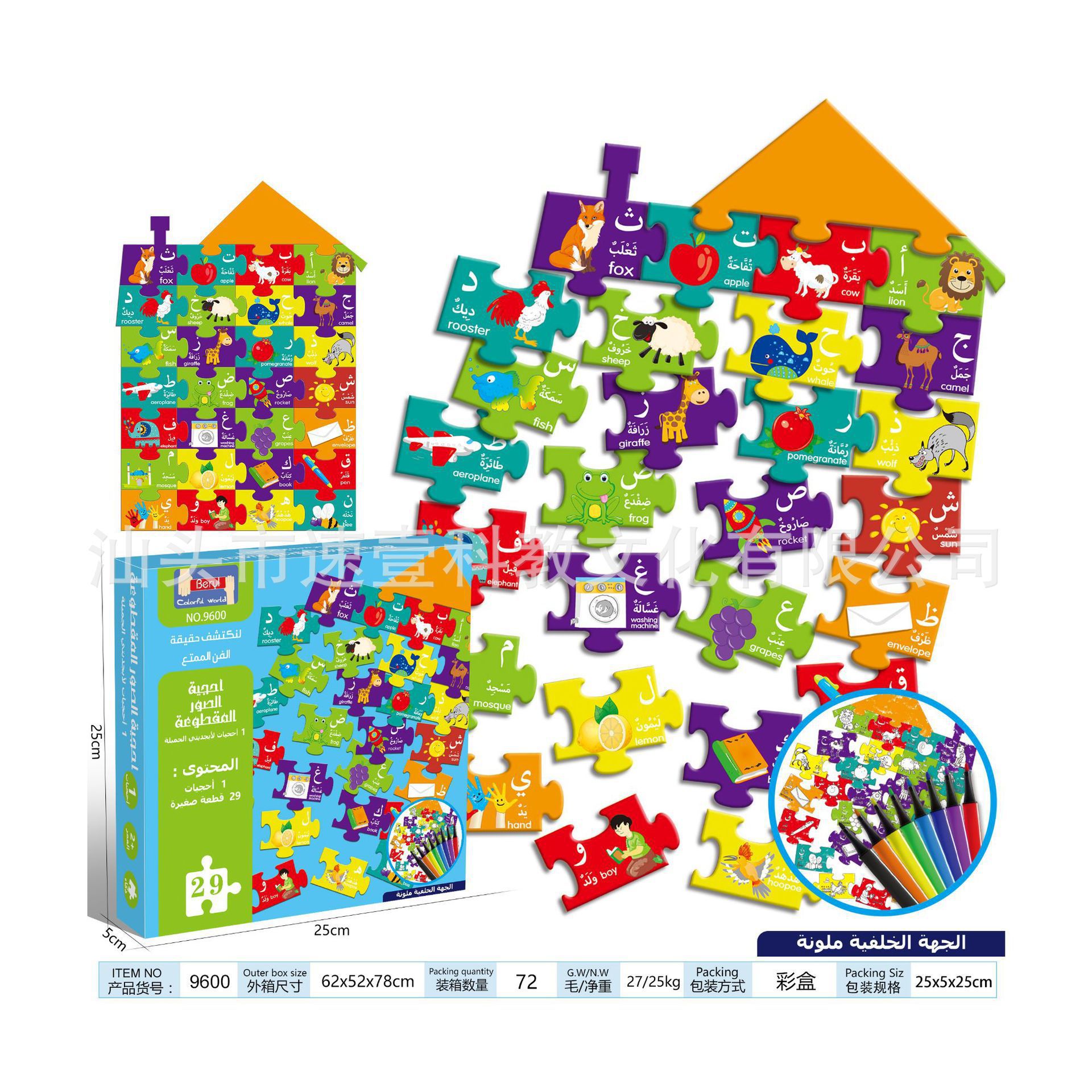 중동 도매 어린이 유치원 교육 게임 아랍어 알파벳 동물 직소 퍼즐 교육 장난감 몬테소리