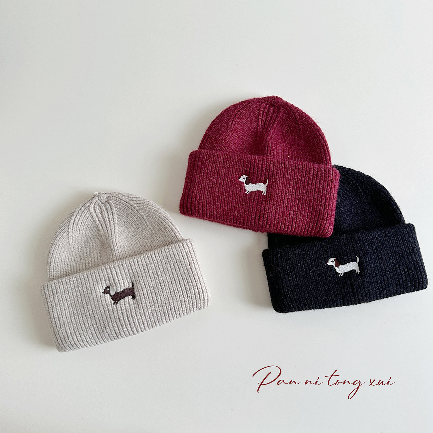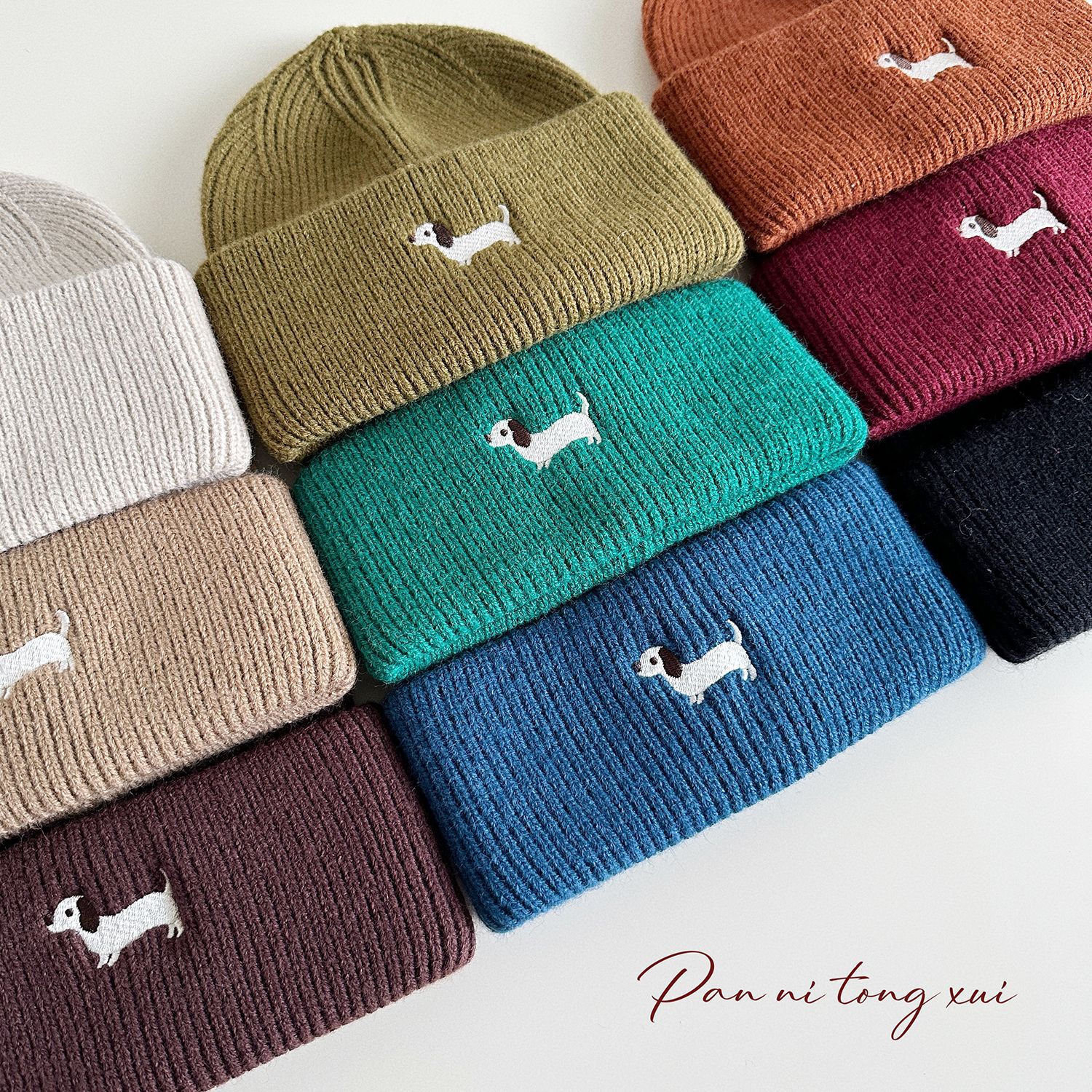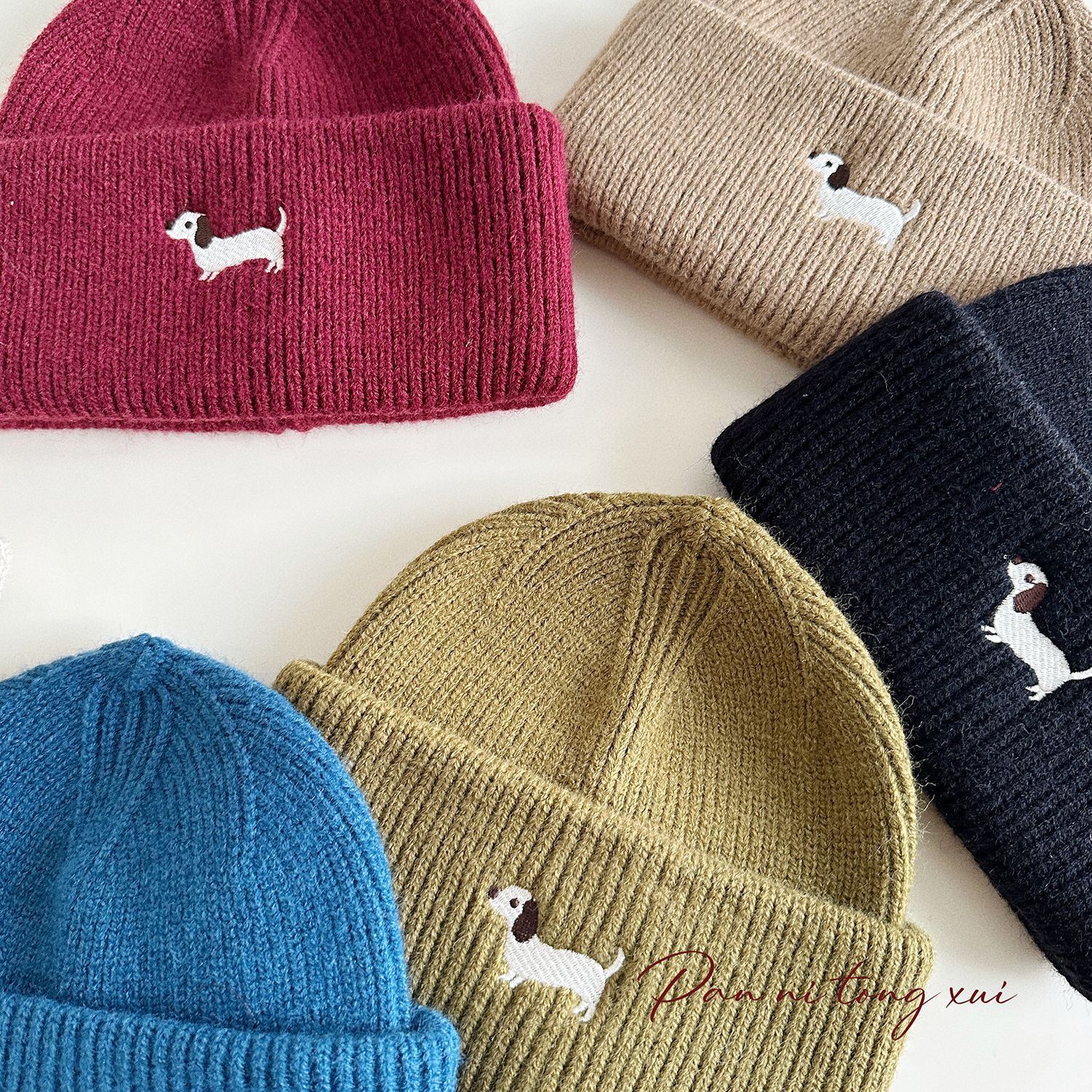 아기 일본 니트 모자 어린이 가을과 겨울 귀 보호 따뜻한 모자 만화 자수 강아지 컬 울 모자