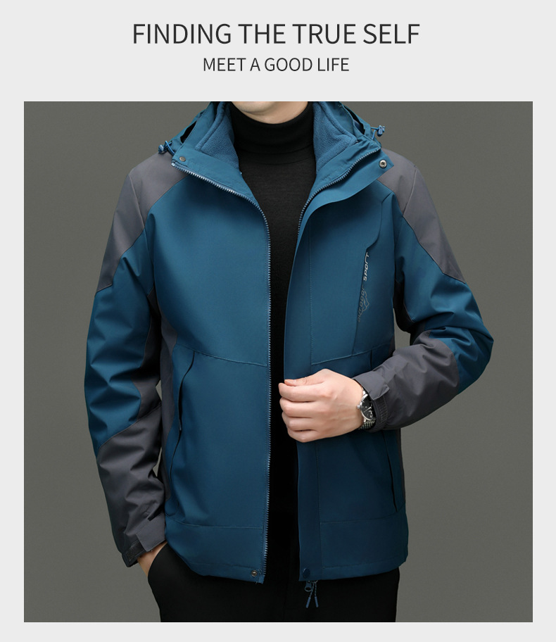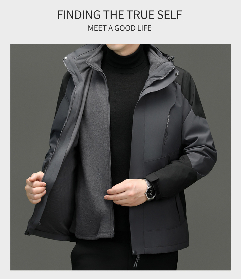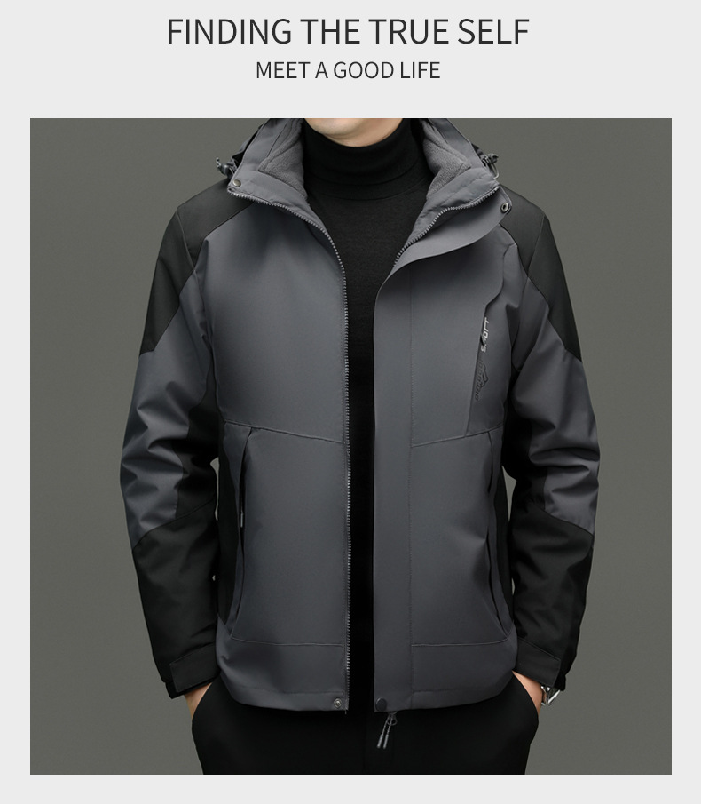 두꺼운 남자 3 대 1 탈착식 2 피스 야외 방풍 방수 여행 재킷 등산 의류스토어 가기