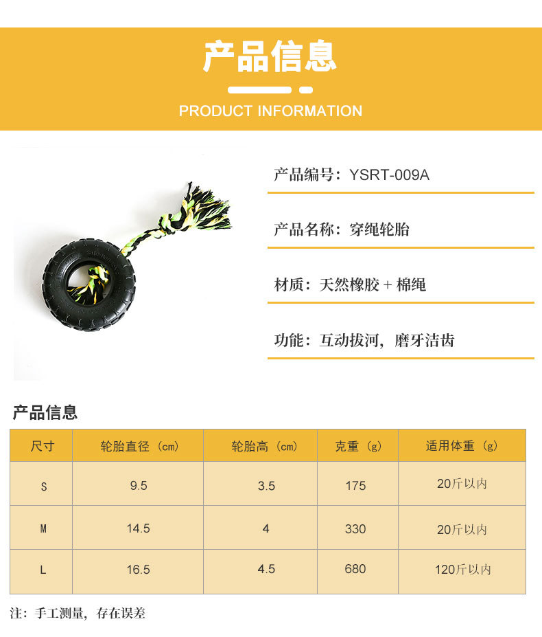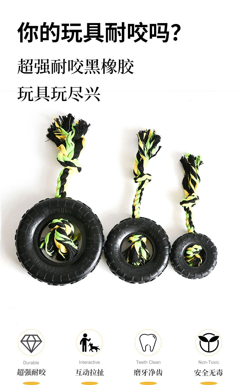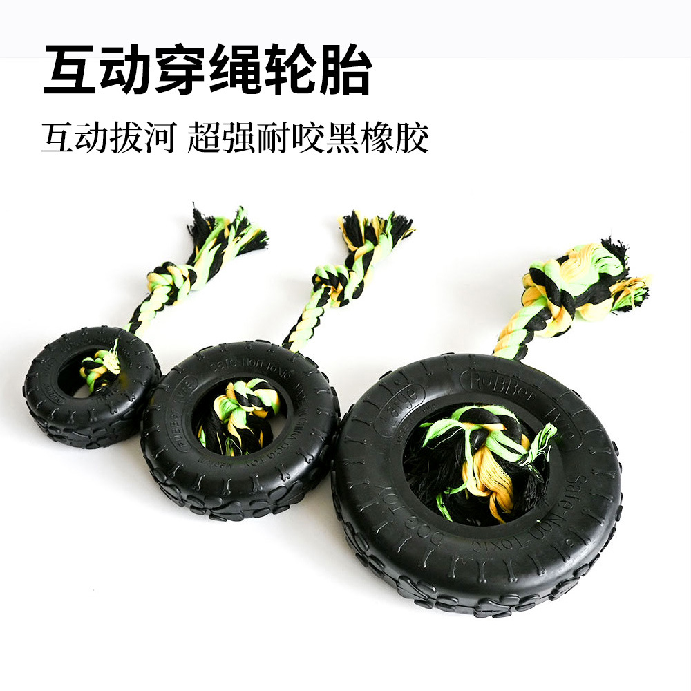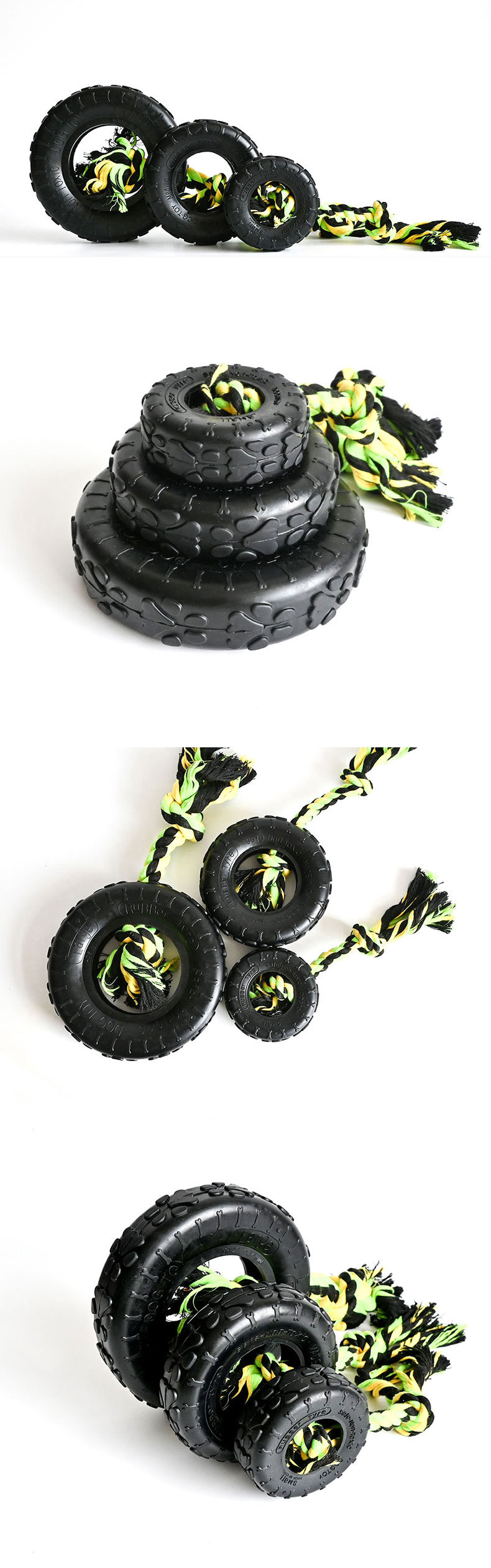 끈으로 묶인 타이어형 초강력 내구성 검정 고무 장난감, 치아 청소용 타이어, 소형, 중형, 대형견용 인터랙티브 줄다리기 면로프스토어 가기
