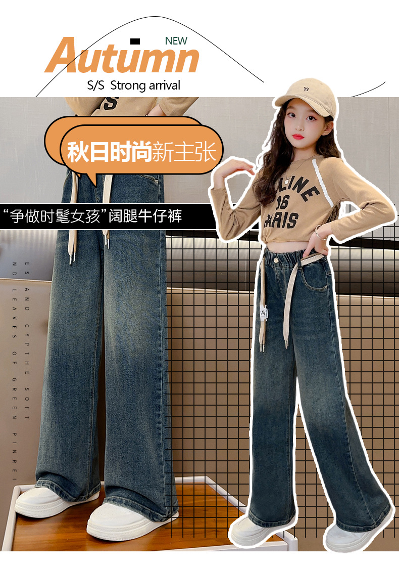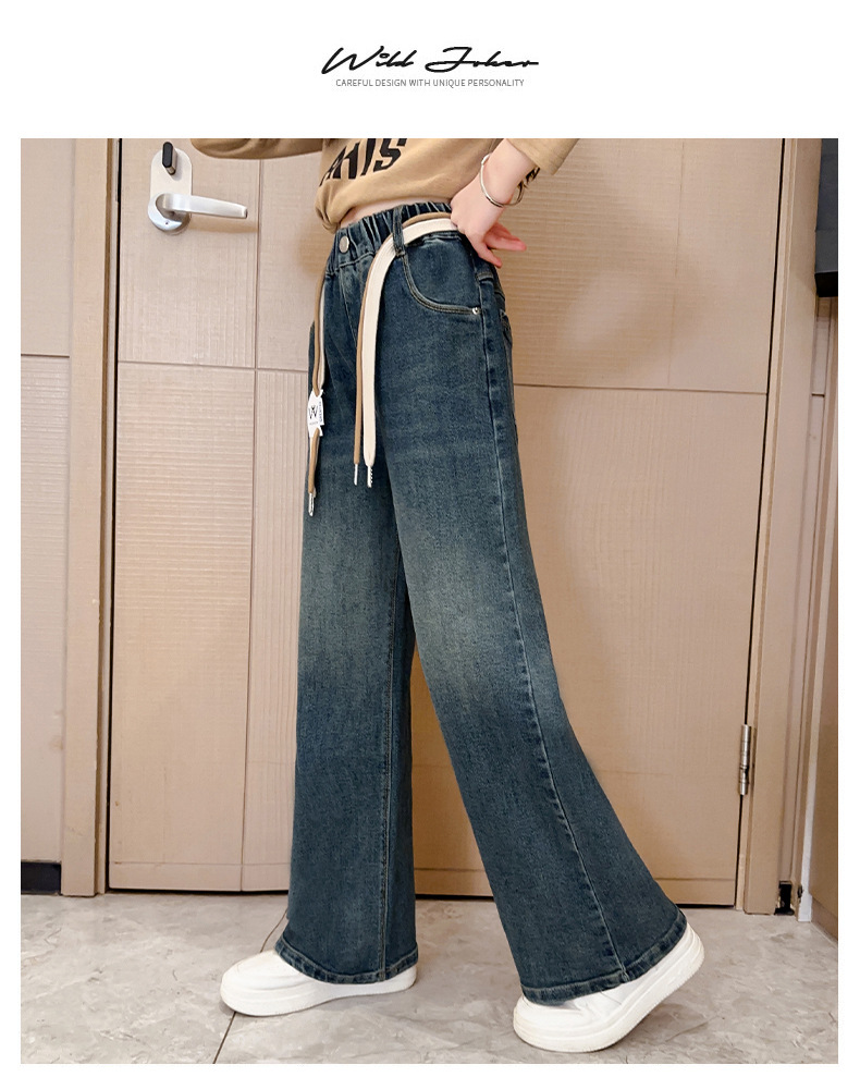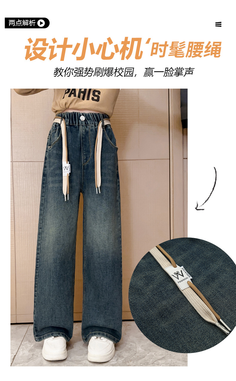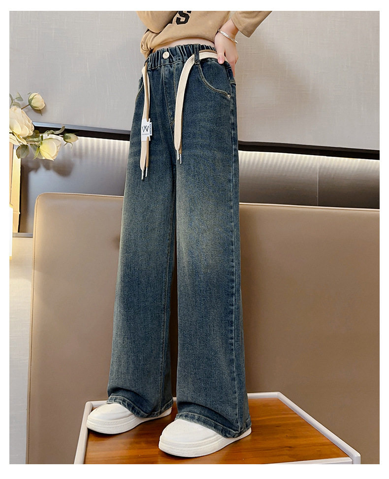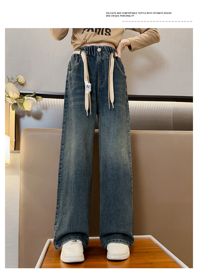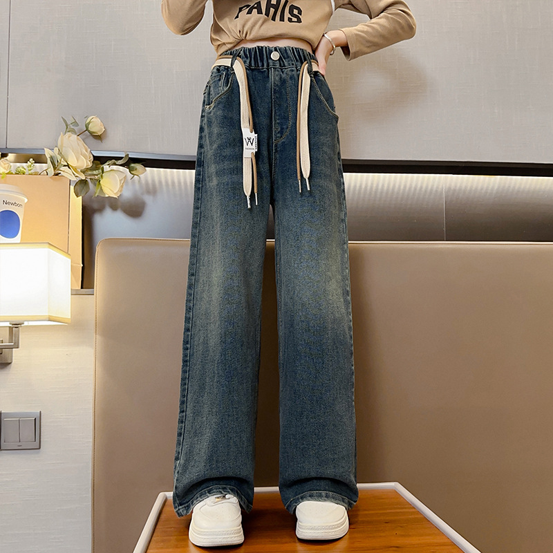 가을 소녀의 직선 다리 넓은 다리 청바지 2024 봄과 가을 새로운 어린이 큰 소녀의 바지 바지 가을스토어 가기