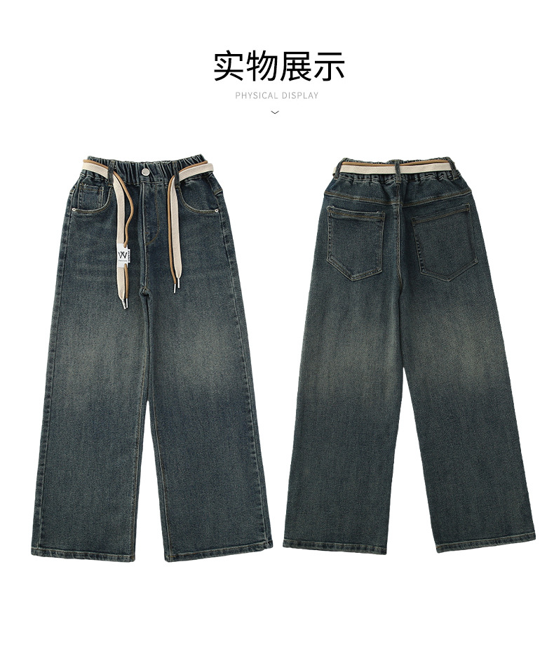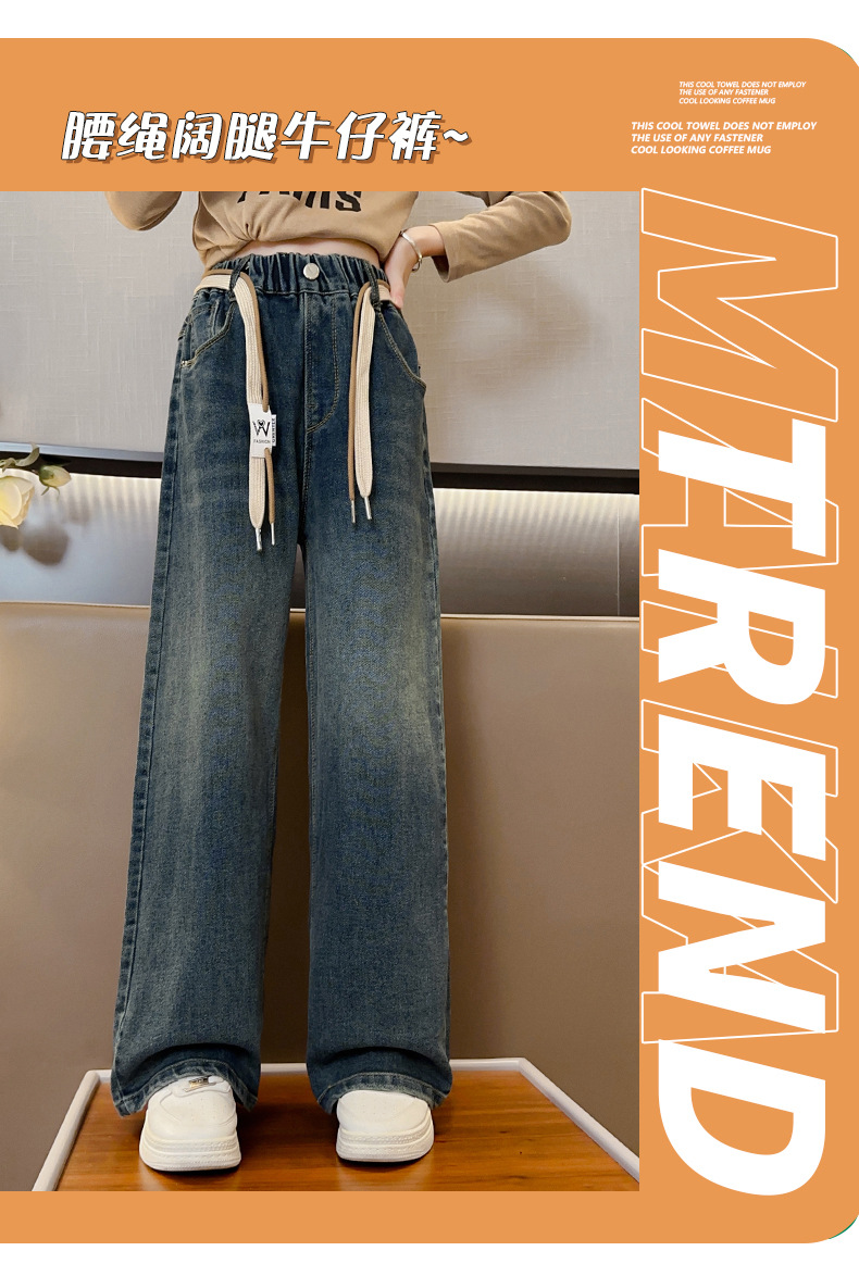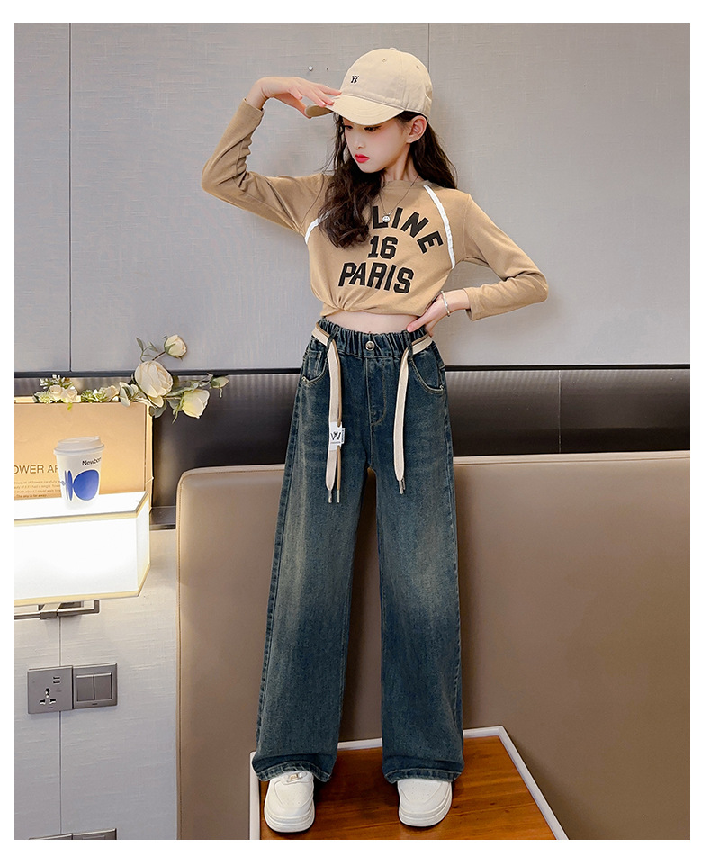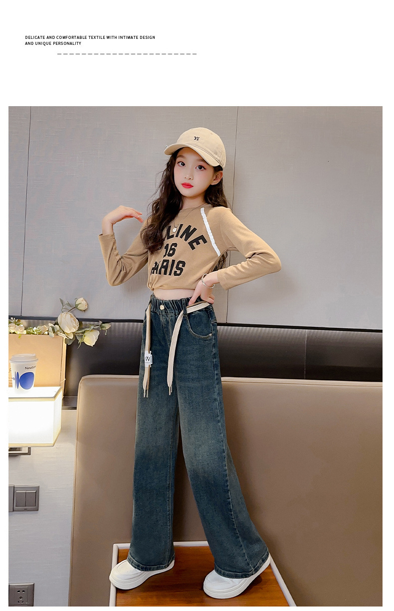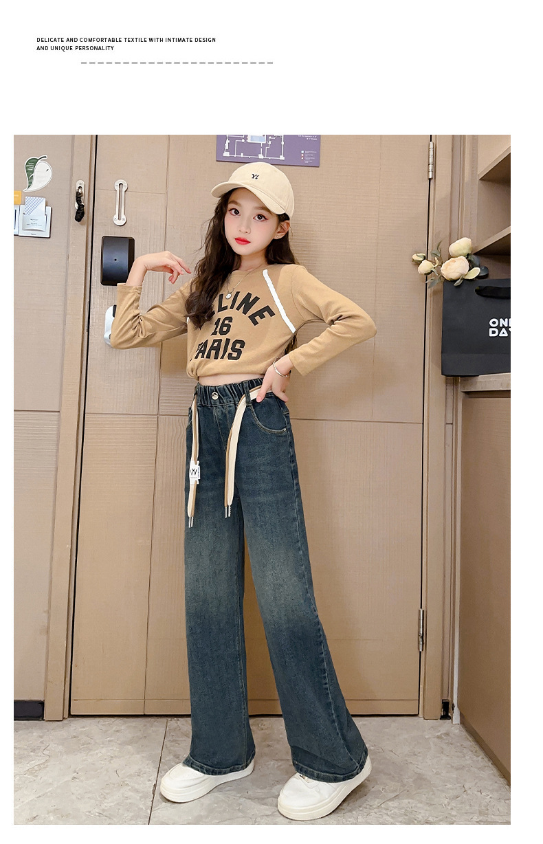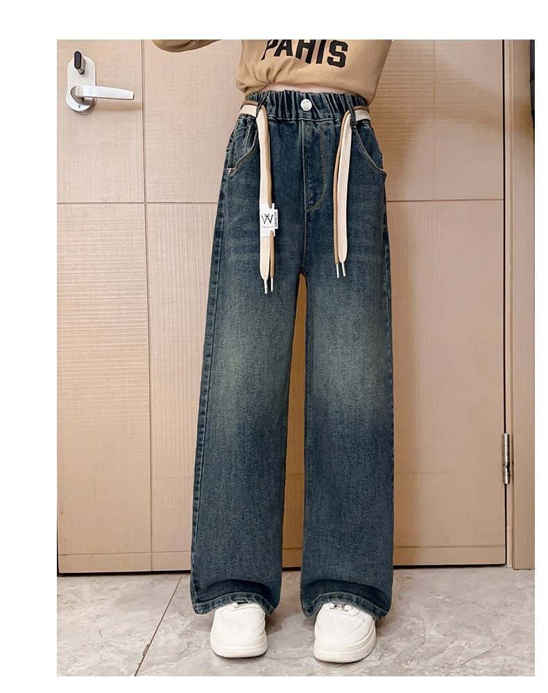 가을 소녀의 직선 다리 넓은 다리 청바지 2024 봄과 가을 새로운 어린이 큰 소녀의 바지 바지 가을스토어 가기