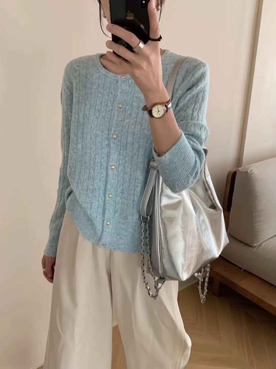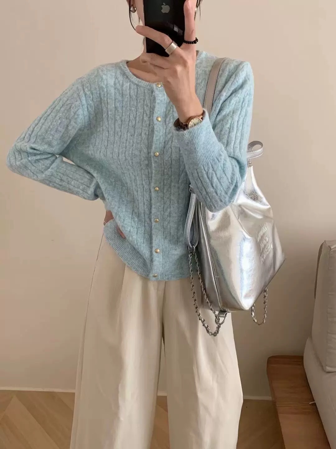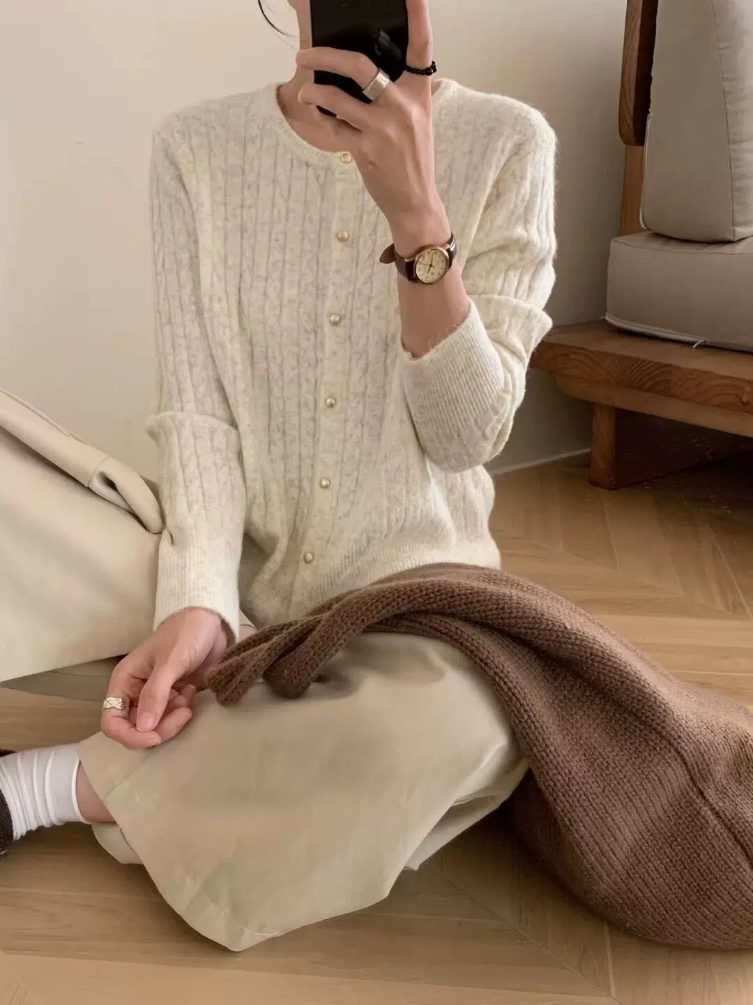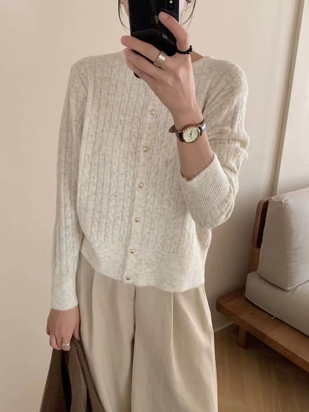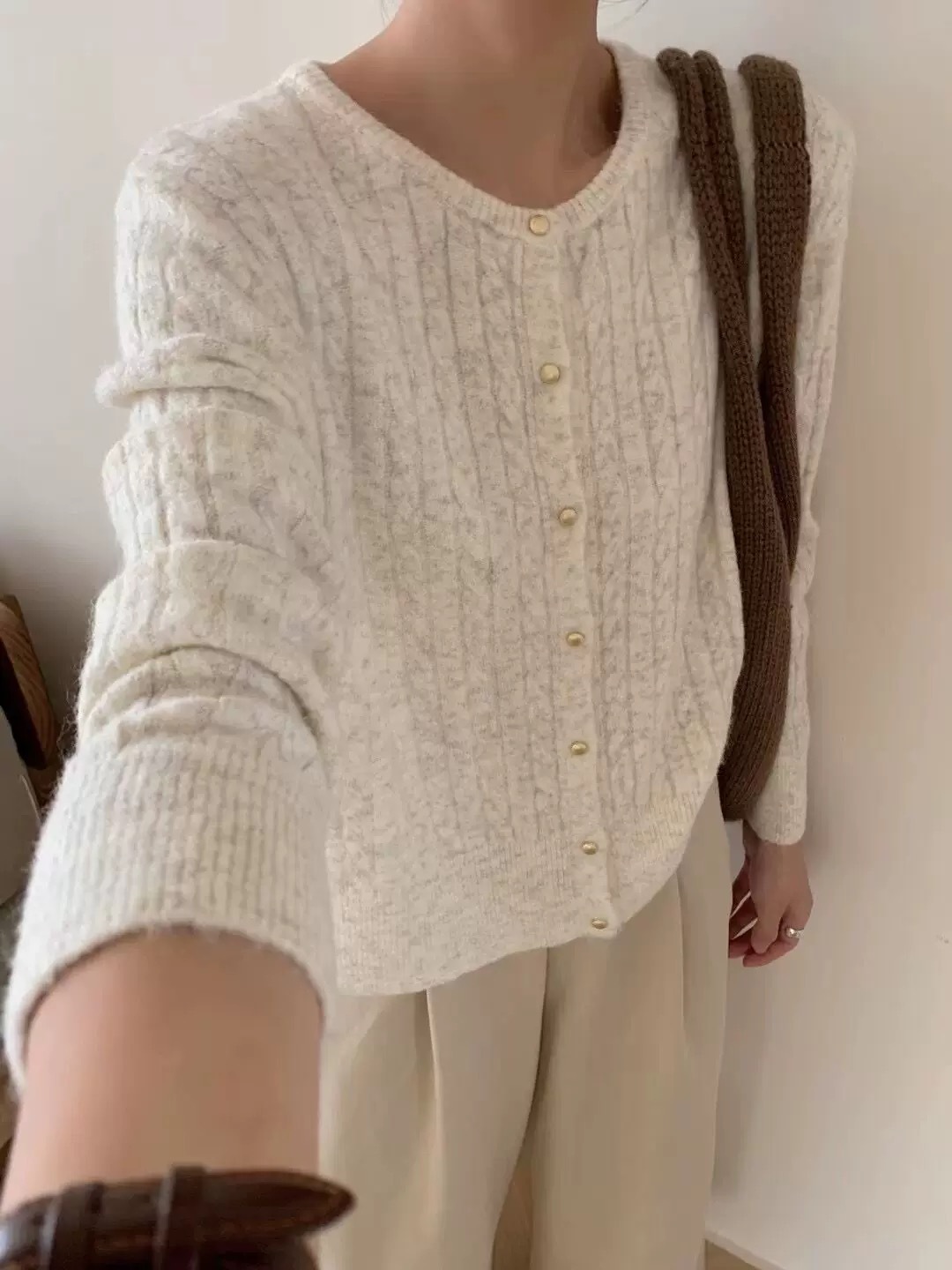 2024 가을과 겨울 새로운 빈티지 예술 스타일 트위스트 크루 넥 니트 카디건 재킷 캐주얼 올 매치 스웨터 탑스토어 가기