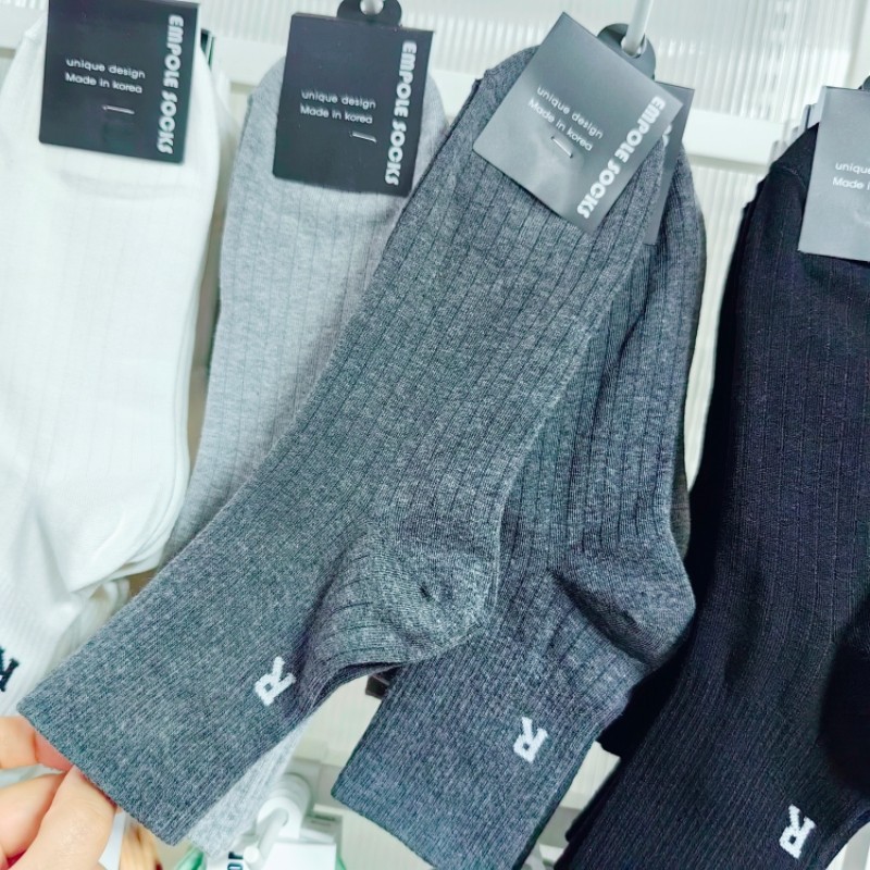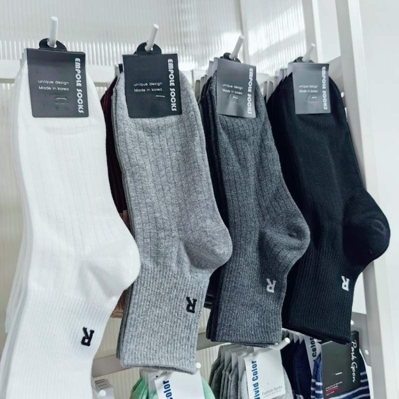 한국 EMPOLE 양말 가을 새 편지 R 유행 남성 양말 단색 간단한 수직 스레드 중간 튜브 비즈니스 면 양말스토어 가기