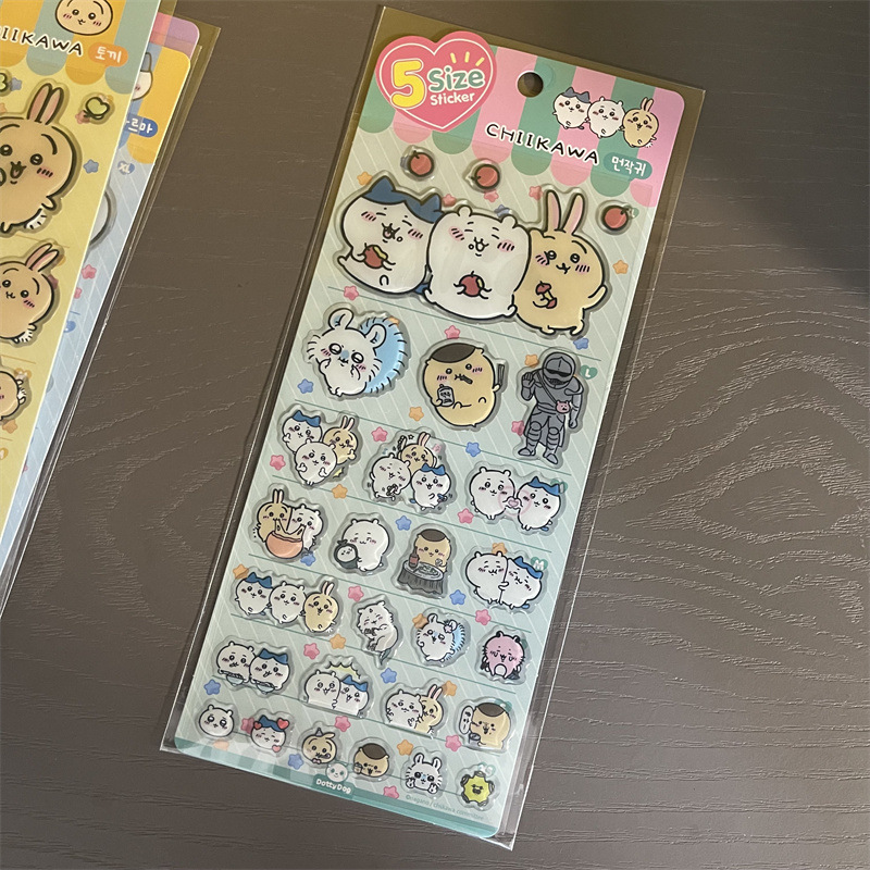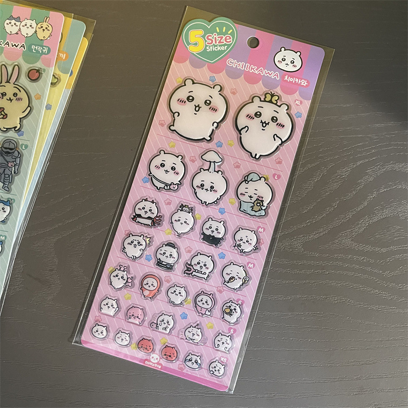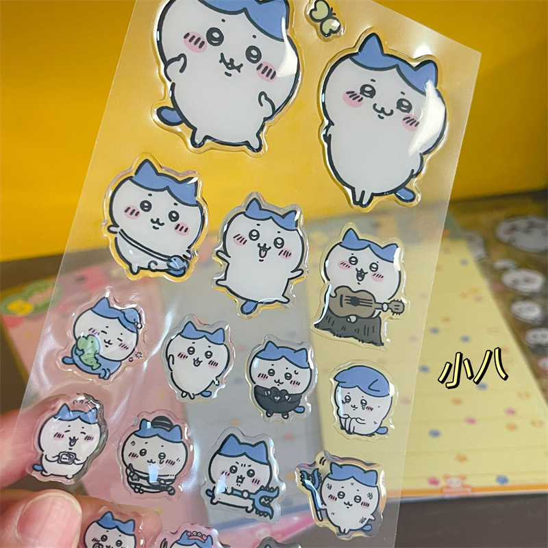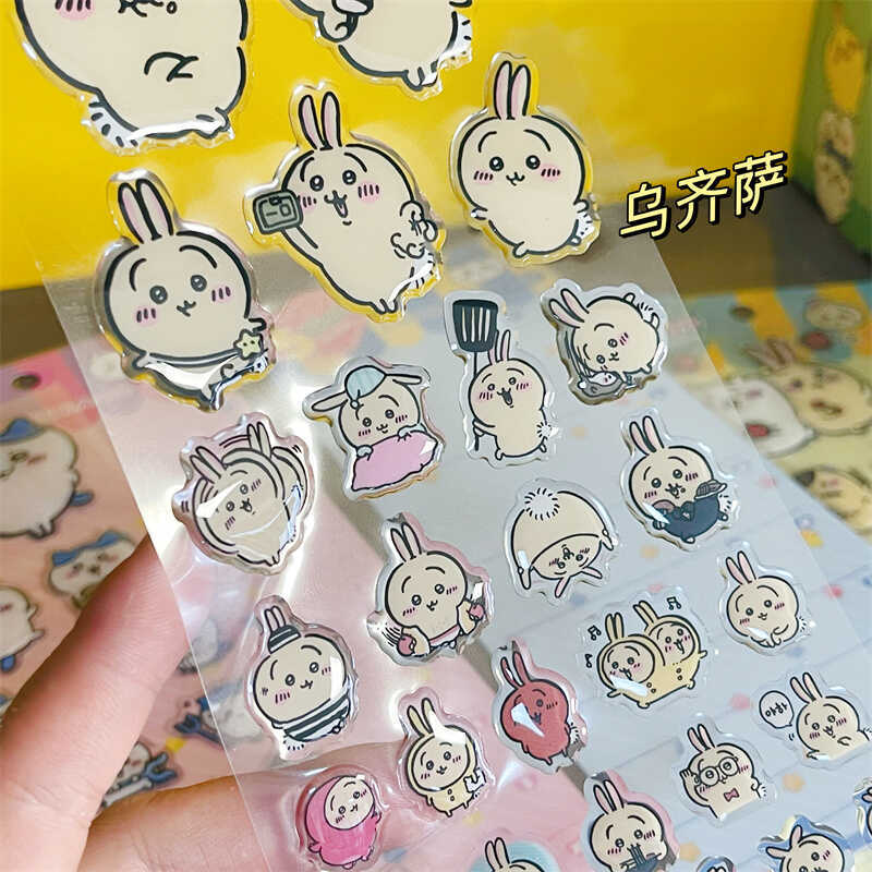 Jiyika 와우 접착제 스티커 chiikawa 작은 8 usachi 컴퓨터 스티커 귀여운 3 차원 장식 스티커스토어 가기