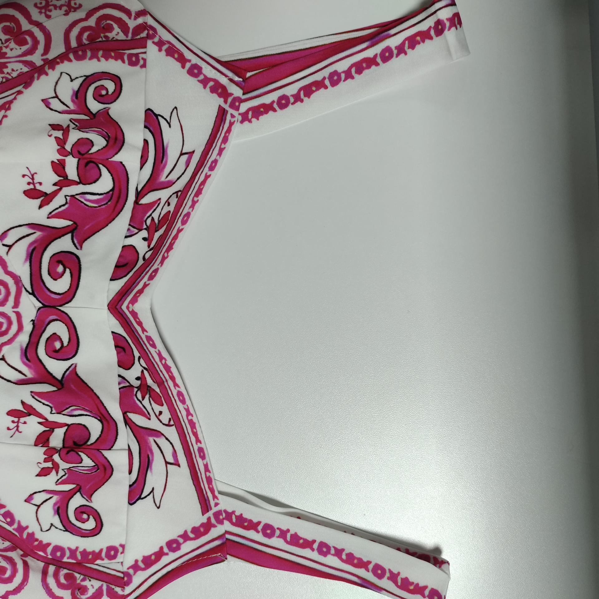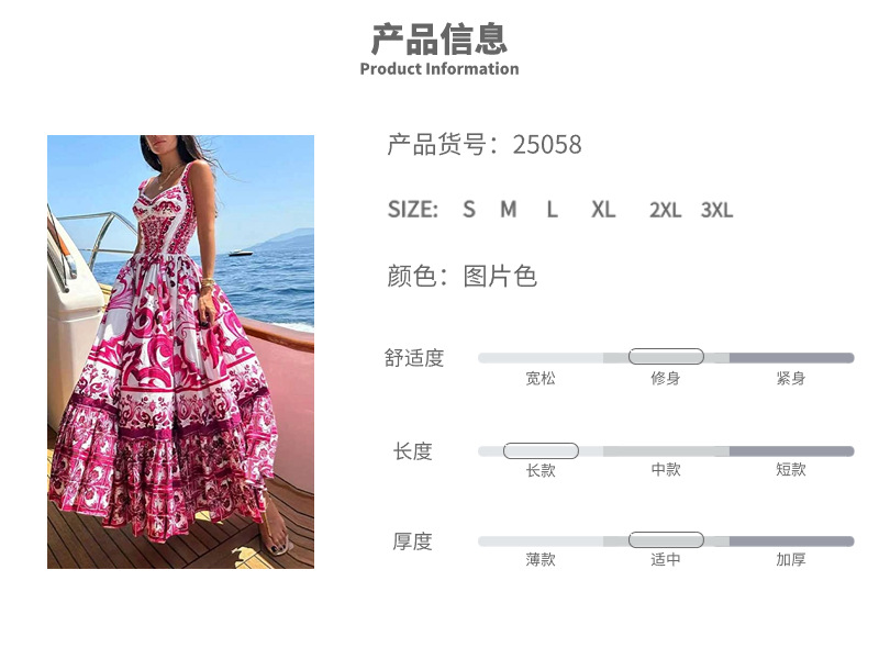 2024 여름 신상 유럽 및 미국 스타일 여성 프린트 민소매 주름 허리 조절 중간 길이 슬립 드레스