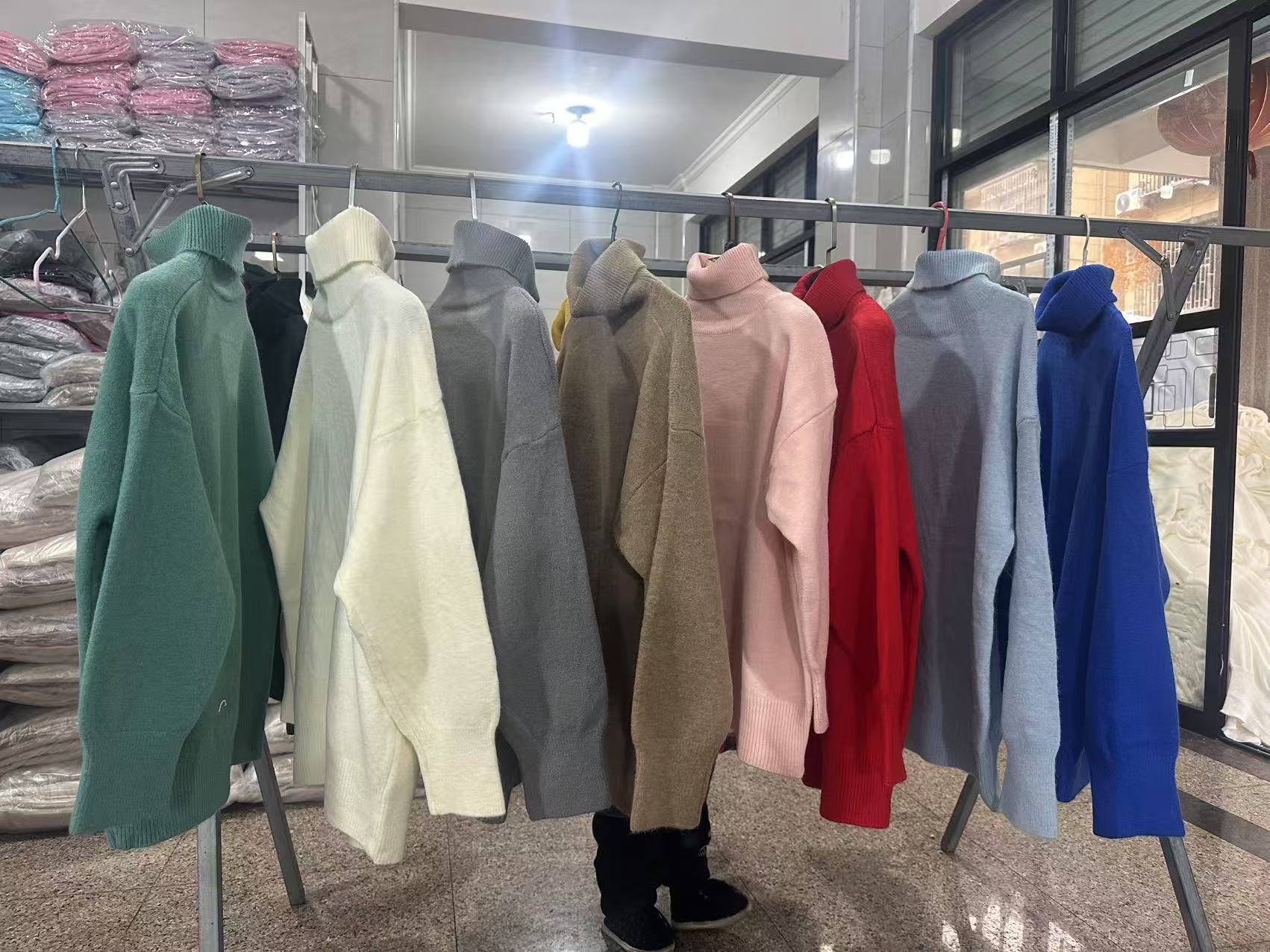 국경 간 대외 무역 단색 터틀넥 스웨터 여성 유럽과 미국 가을과 겨울 느슨한 조커 클래식 폭발 스웨터 공장 가격 도매스토어 가기