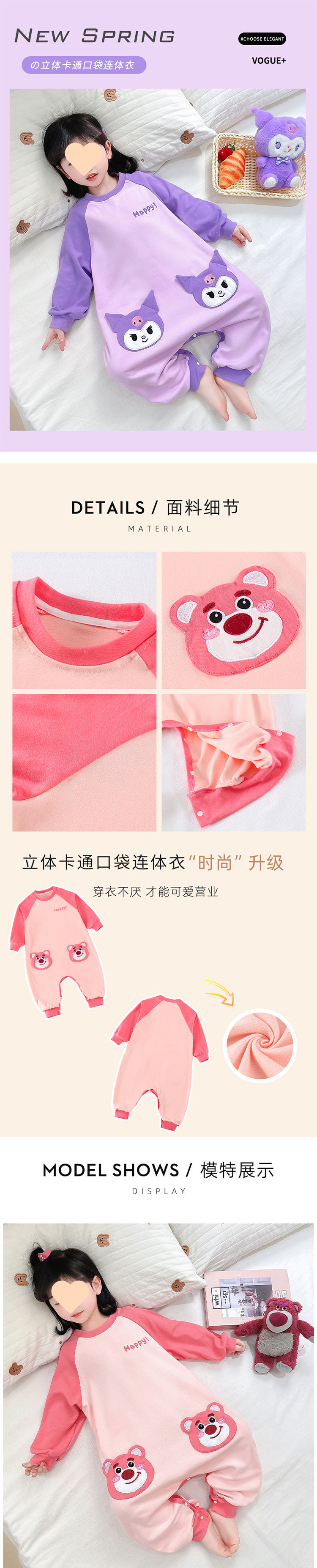 어린이 양털 긴 소매 가방 점프 수트 어린이 홈 옷 소녀 아기 봄과 가을 킥 버클 점프 수트스토어 가기