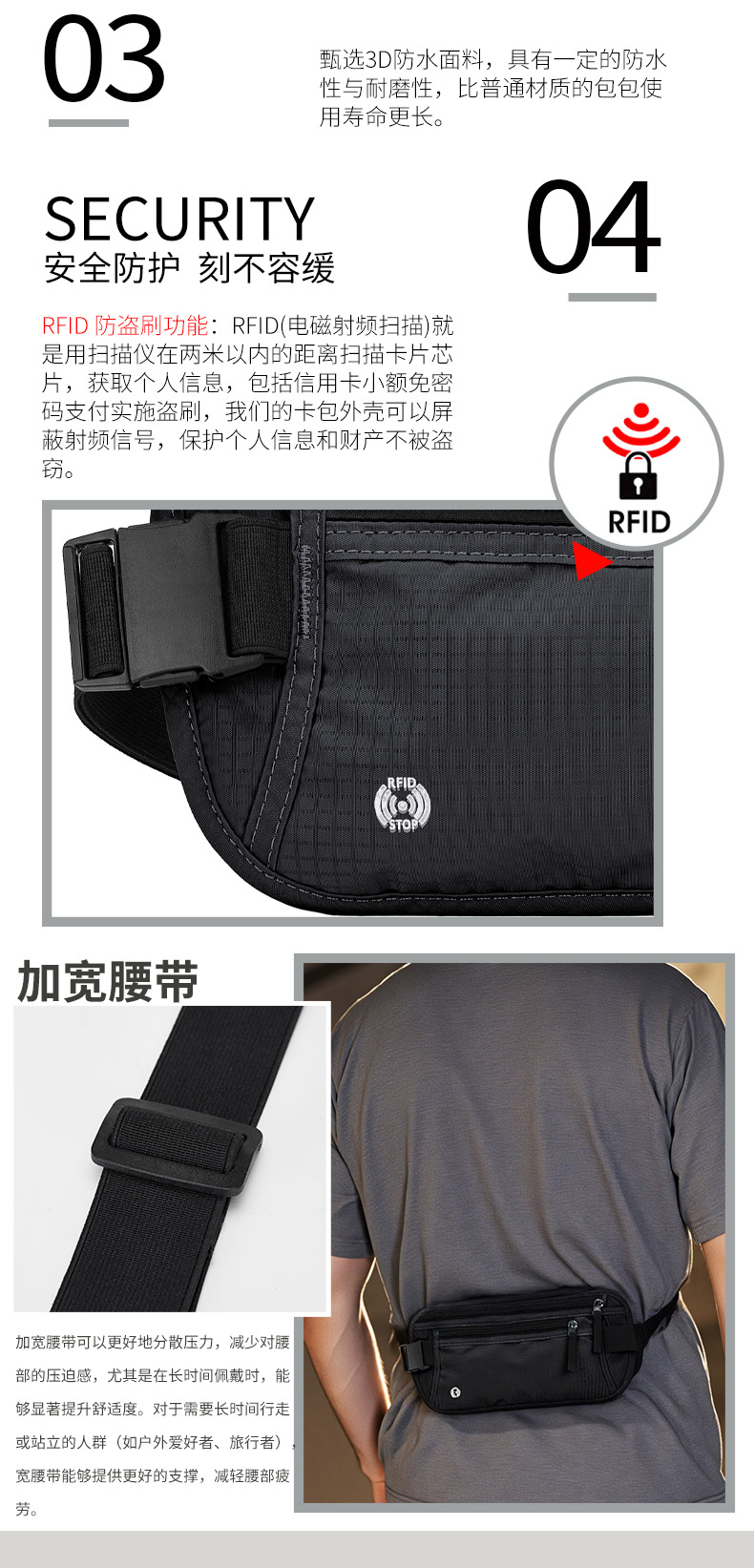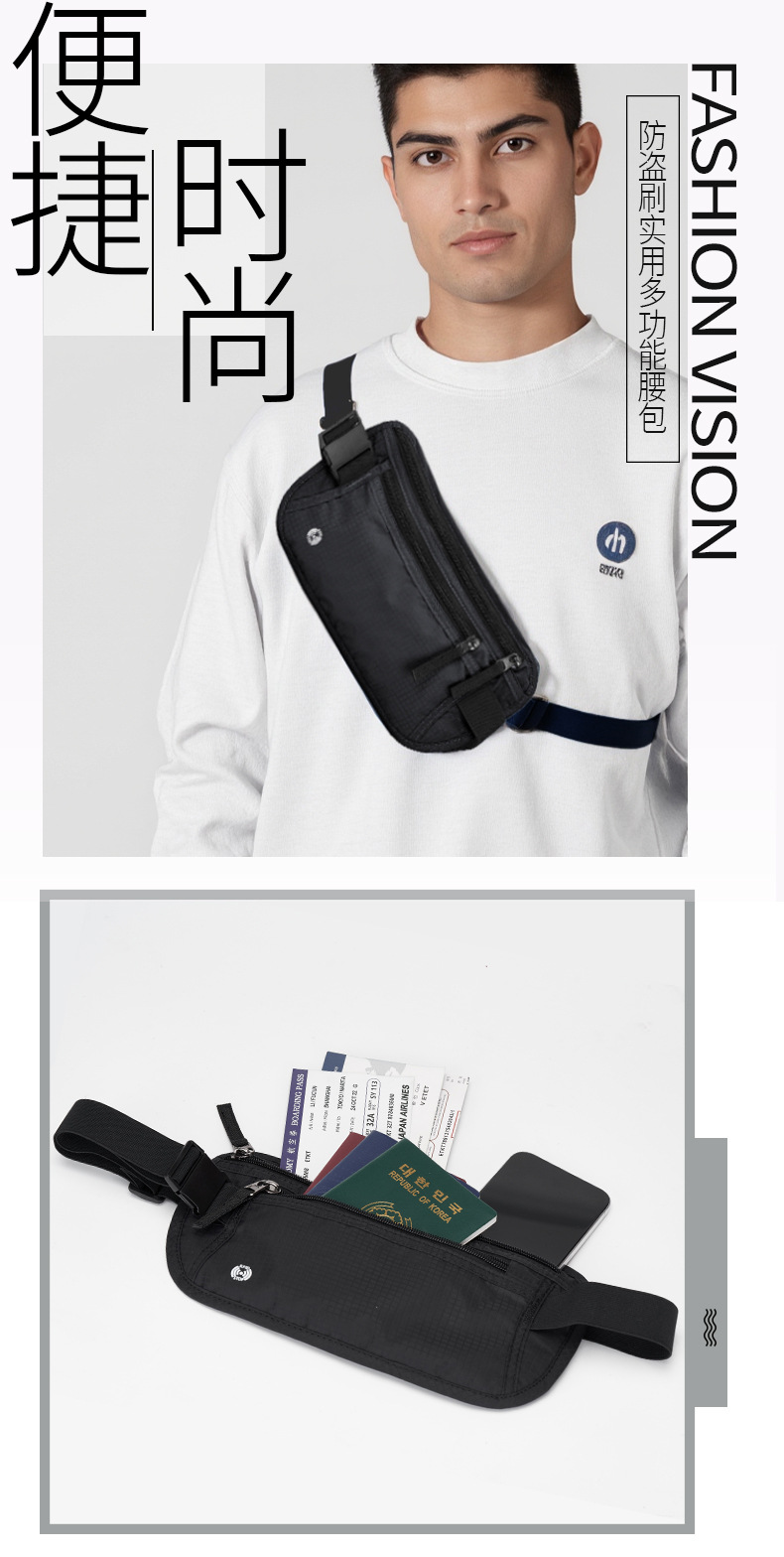 도난 방지 여행 여권 문서 허리 가방, 몸에 붙는 보이지 않는 방수 휴대폰 문서 크로스백 도매스토어 가기