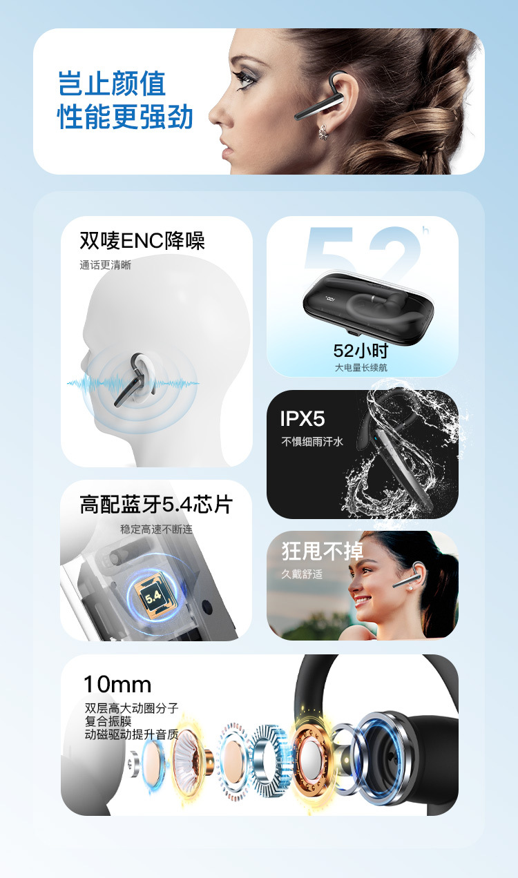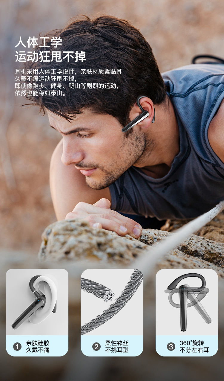 맞춤형 새로운 대형 내구성 단일 귀 로타리 귀 매달려 통화 소음 감소 무선 헤드셋 ANC 블루투스 헤드셋