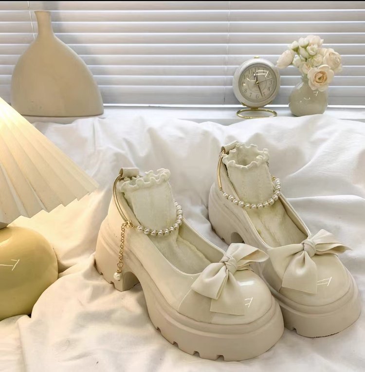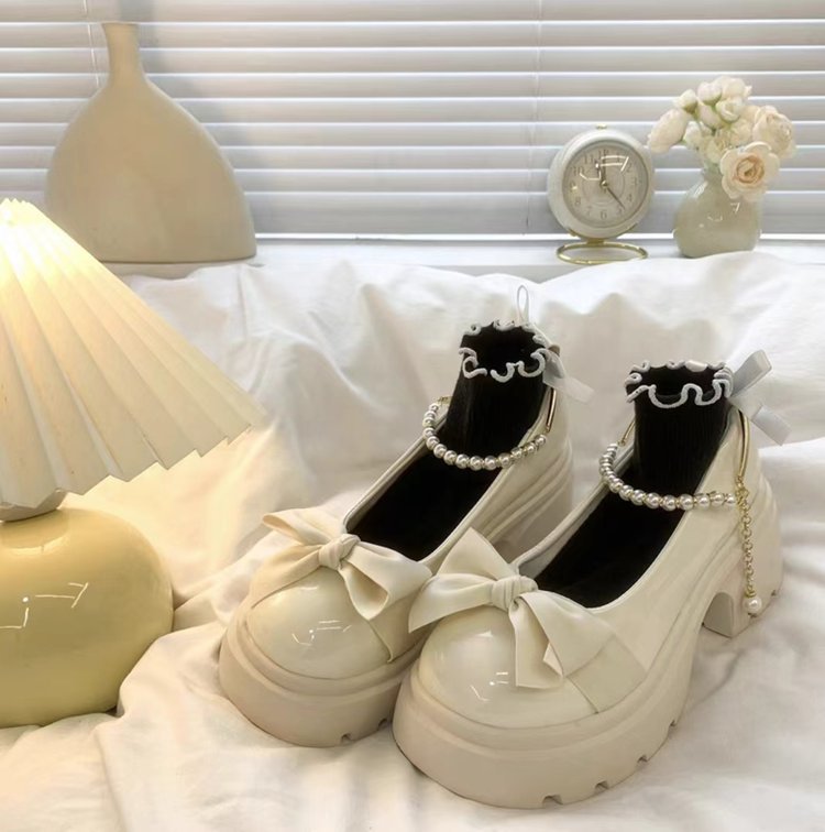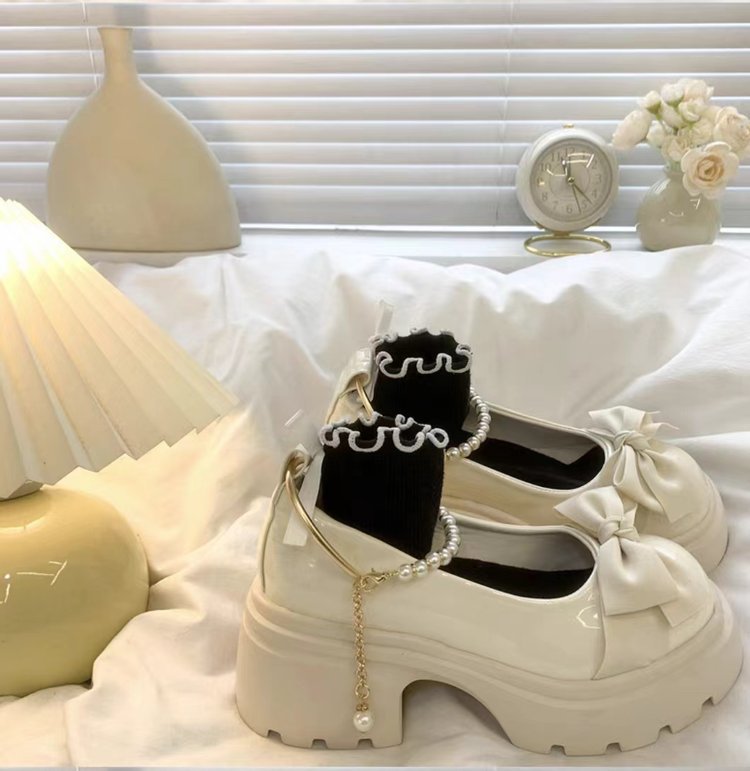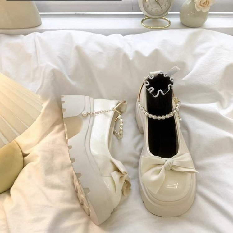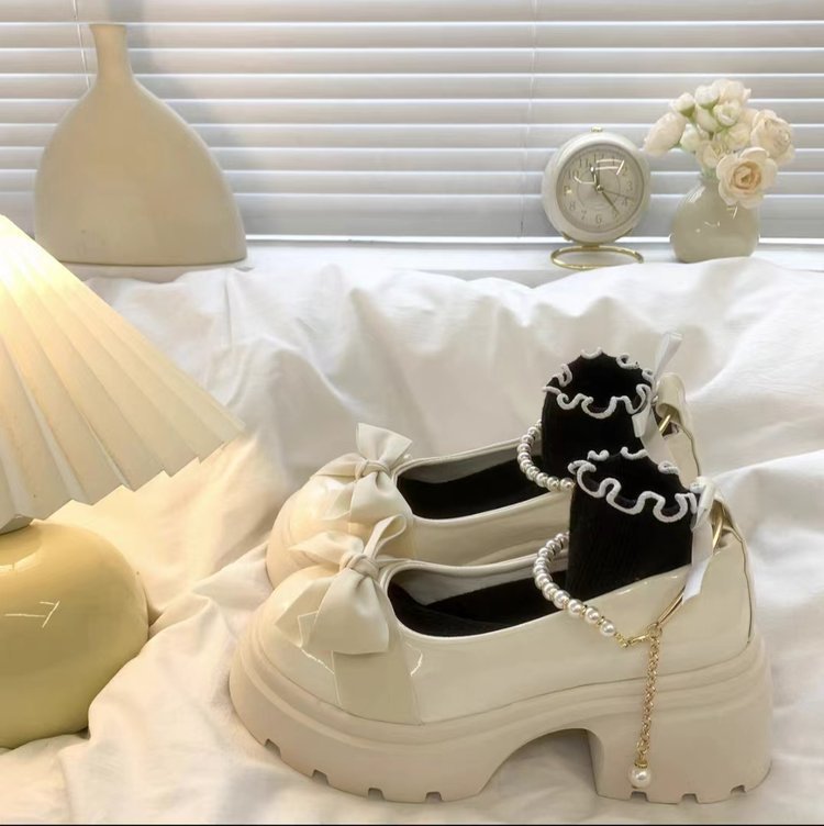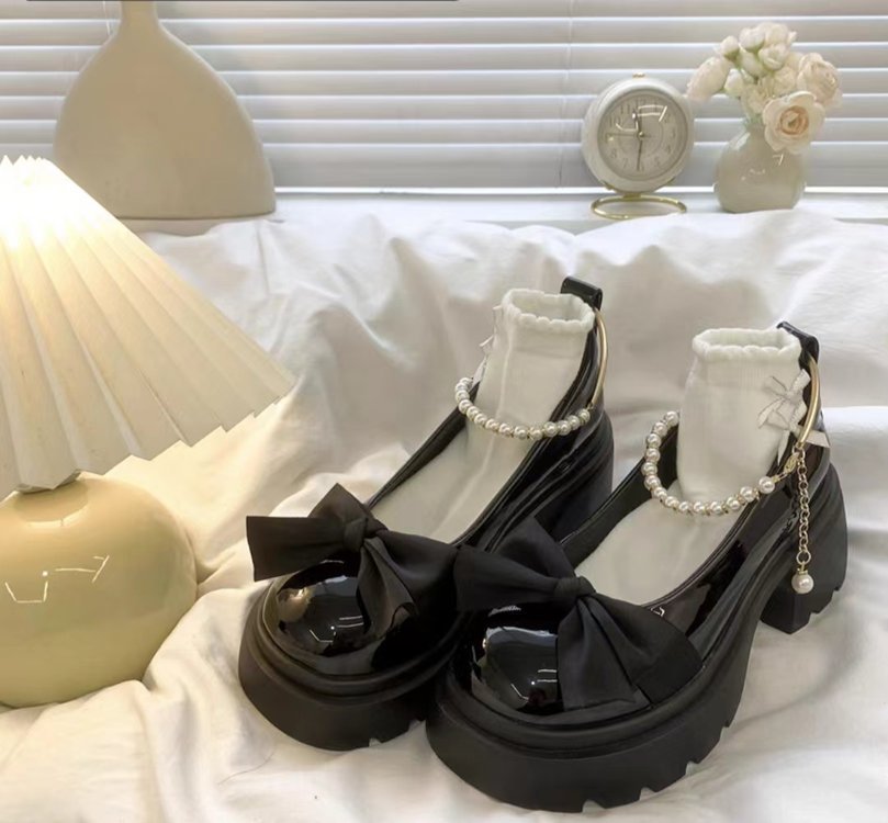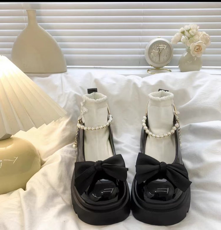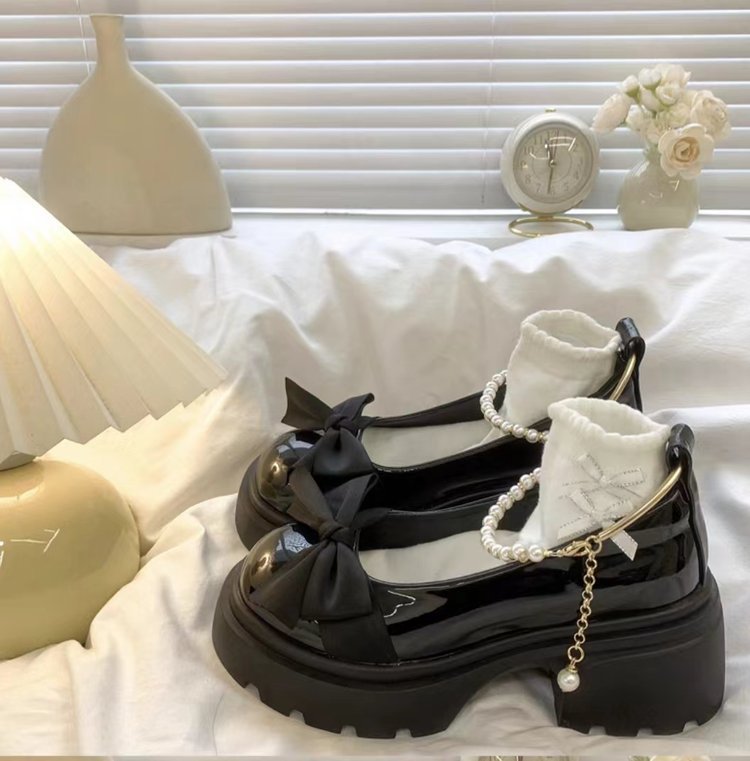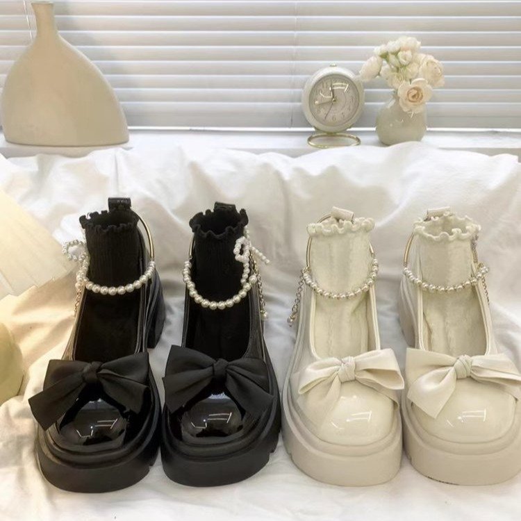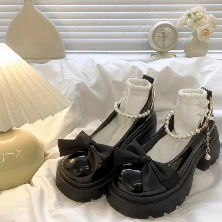 厚底黑色法式蝴蝶结小皮鞋女夏季新款圆头日系配裙粗跟玛丽珍单鞋
