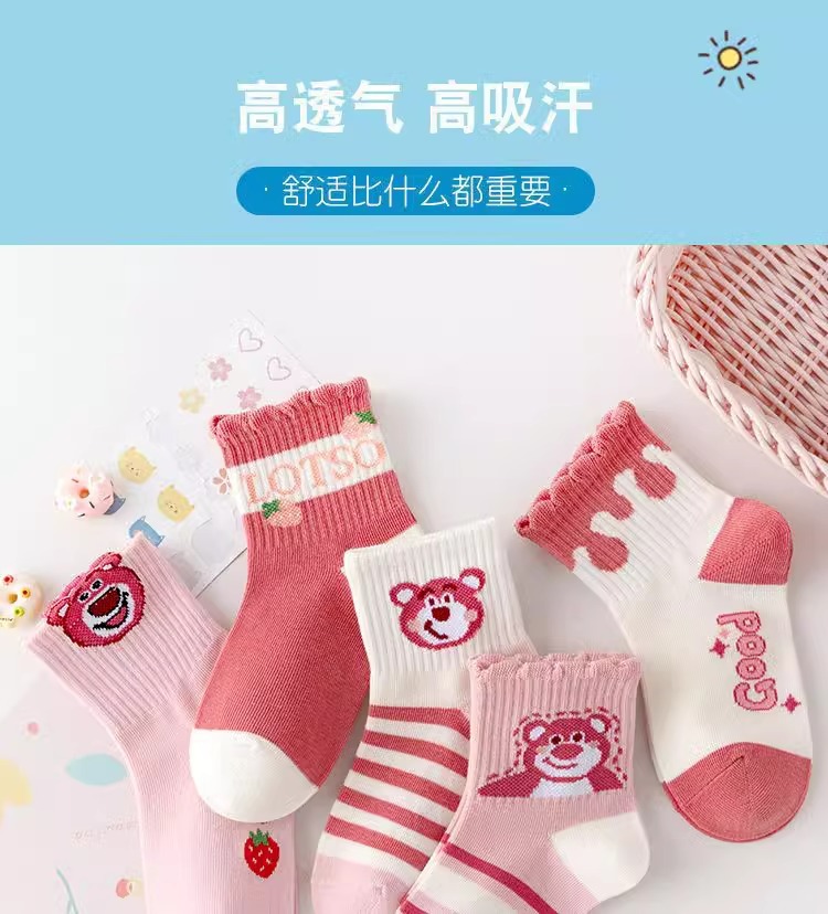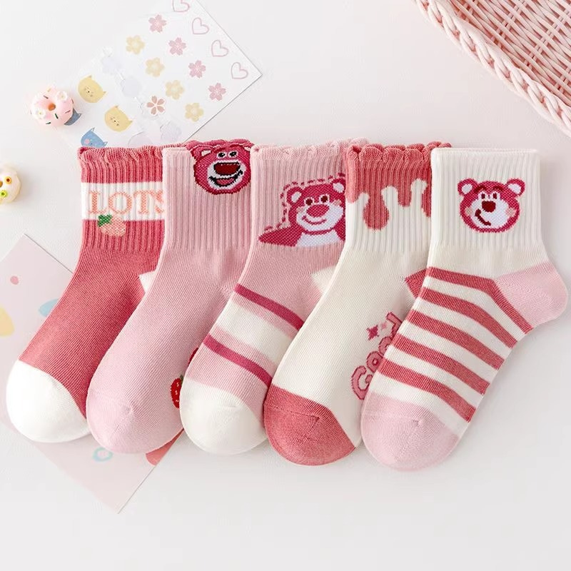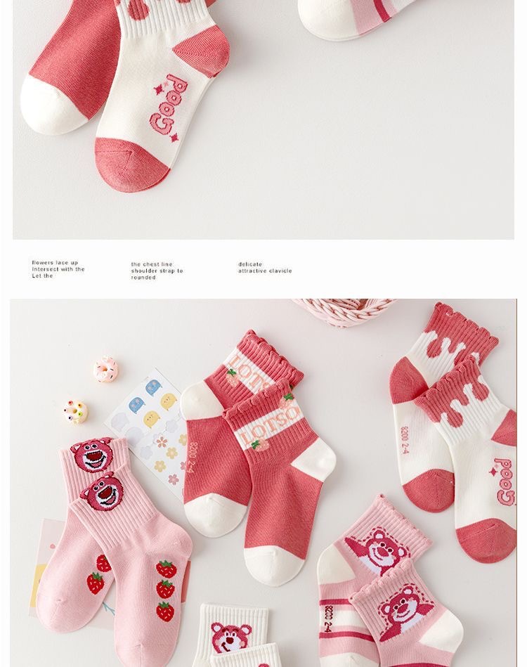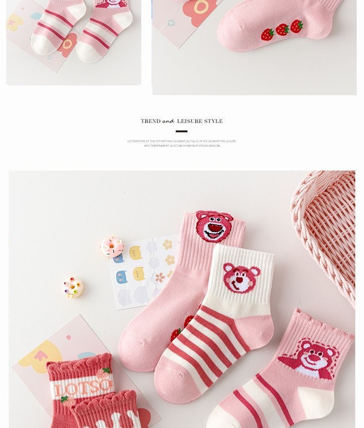 어린이 양말 봄과 가을 소녀 튜브 양말 소녀 아기 소녀 귀여운 만화 핑크 딸기 곰 스타킹 도매